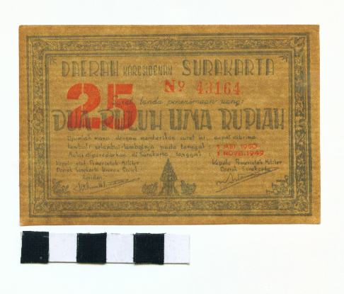 Benda ini terbuat dari bahan logam berbentu bulat. Pada sisi muka, bagian tepi bertuliskan "TINGKATKAN PRODUKSI SANDANG PANGAN" melingkar. Bagian tengahnya bertuliskan Rp10 dan sebatang padi melingkar. Pada bagian sisi lainnya di bagian tepi bertuliskan "BANK INDONESIA" dan angka tahun 1971. Bagian tengahnya bertuliskan angka Rp10. Mata uang ini berjumlah tiga keping, Mata uang ini berfungsi sebagai alat tukar atau alat pembayaran yang sah di negara Indonesia pada tahun 1971.