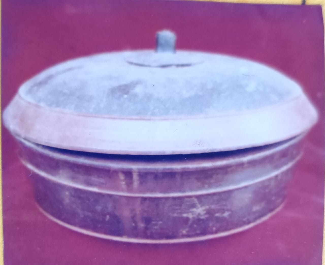 Bahan terbuat dari kayu dengan warna merah dan hitam. Benda ini berbentuk bundar dan terbagi atas dua bagian: Bagian atas merupakan tutup dan cekungan bagian paling atas terdapat tombol/yang berfungsi sebagai pegangan untuk membuka dan menutup. Bagian bawah merupakan wadah dan bagian tengahnya kosong, dinding luar terdapat satu buah dan melingkar. Benda ini berasal dari Sampit (Kotawaringin Timur) digunakan sebagai wadah untuk menyimpan barang berharga.