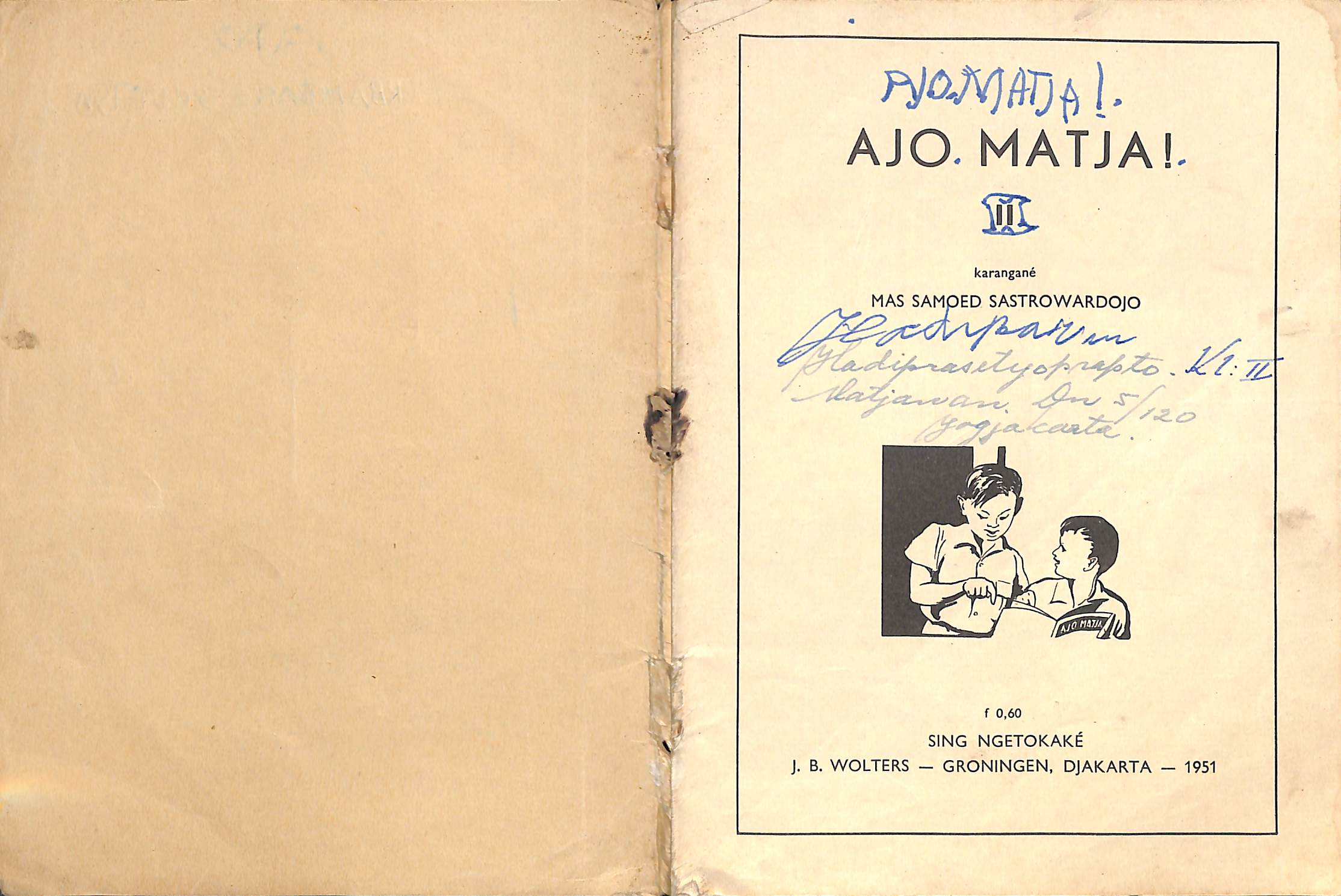 Ajo Matja Djilid II buku bacaan Bahasa Indonesia. Karangan Mas Samoed Sastrowardojo. Penerbit J.B. Wolters, Groningen Djakarta.