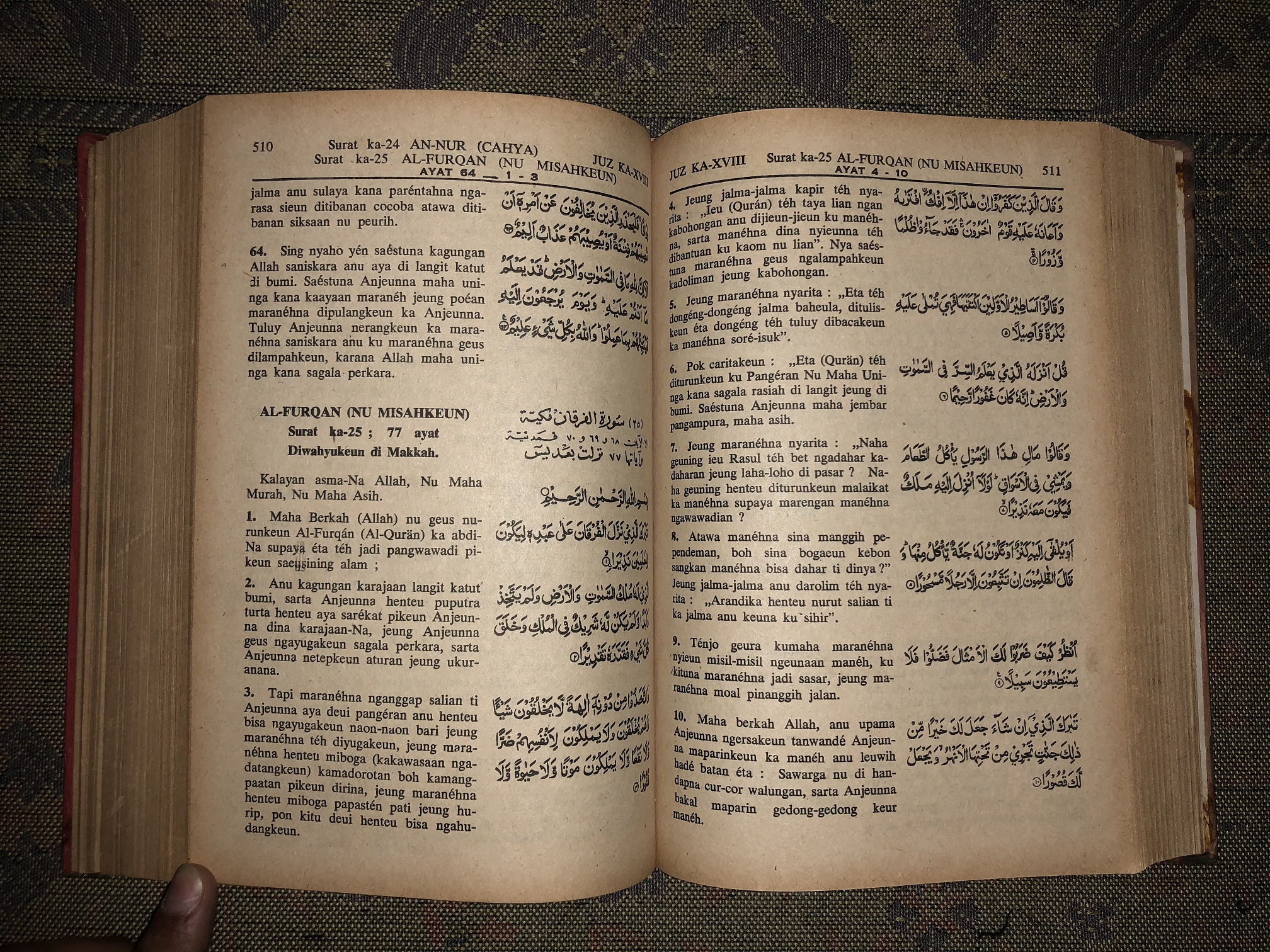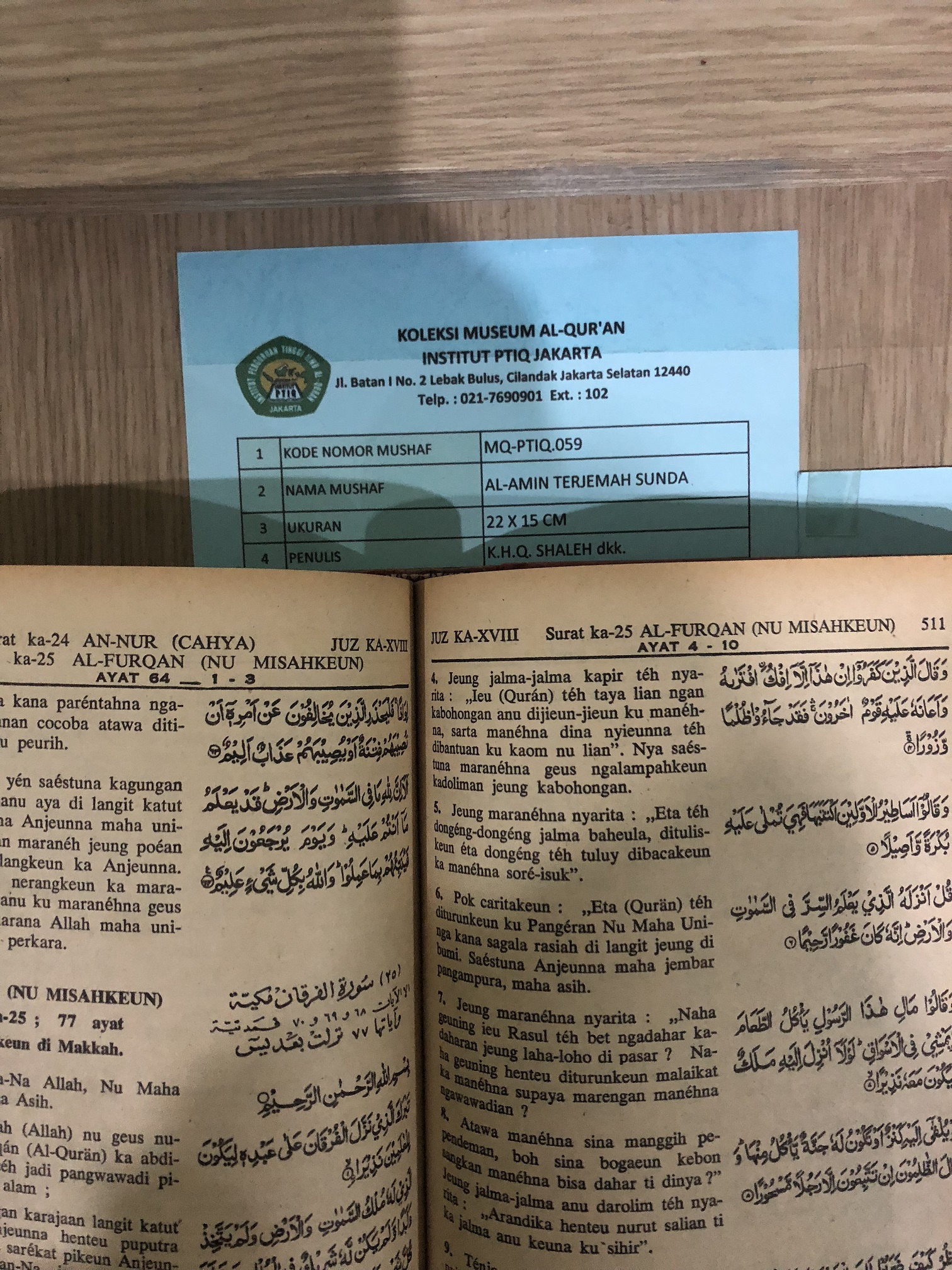 Mushaf ini merupakan mushaf modern, penulisan teksnya telah menggunakan teknologi modern. Mushaf ini ditulis oleh KH.Q. Shaleh dkk, diterbitkan pada tahun 1980, namun tidak diketahui penerbitnya. Mushaf ini tidak memiliki ornamen, dan covernya berwarna Merah. Teks tulisan menggunakan bahasa Arab dan terjemah bahasa Sunda, berjumlah 900 halaman.