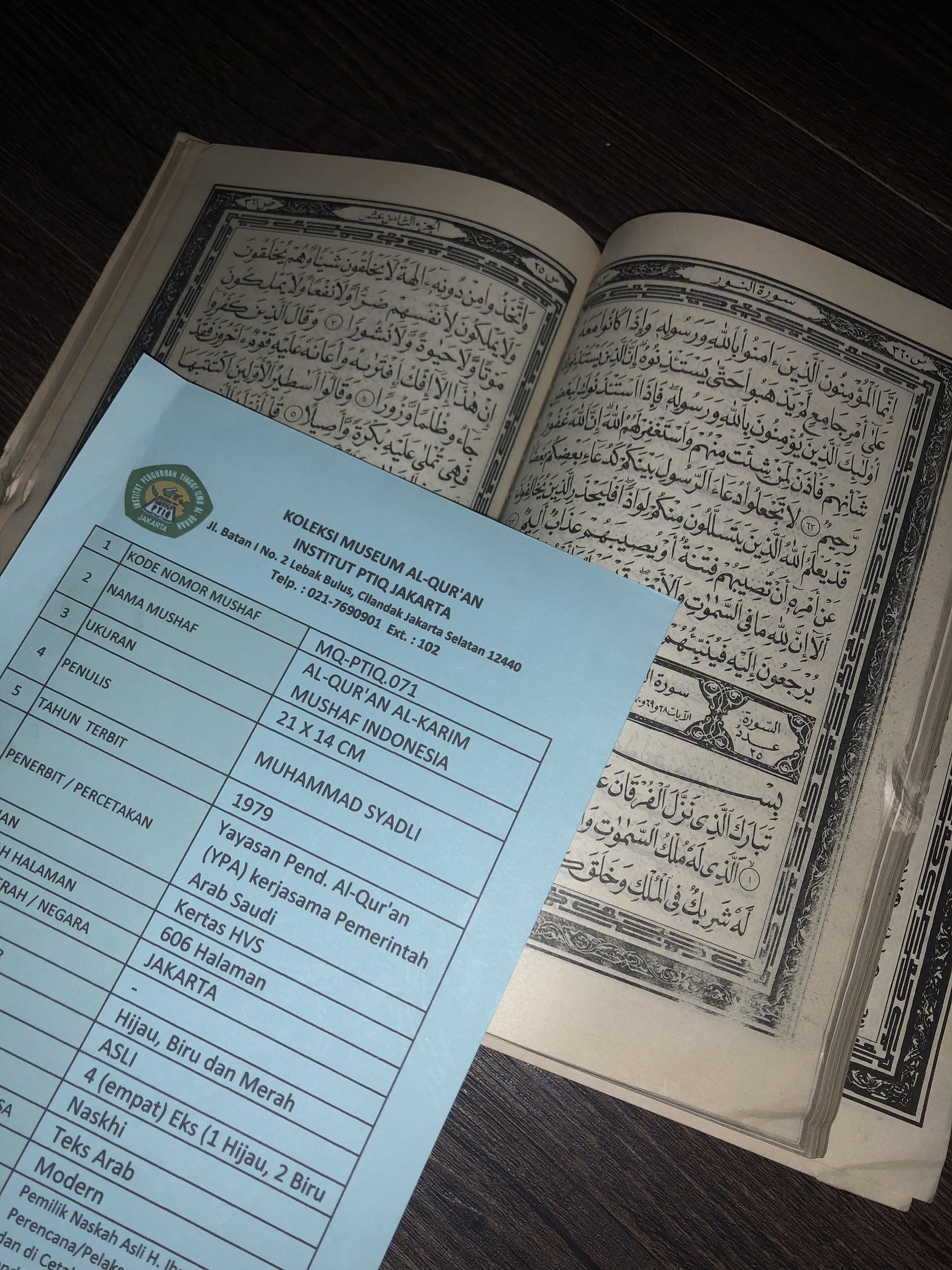 Mushaf ini merupakan mushaf modern, penulisan teksnya telah menggunakan teknologi modern. Mushaf ini ditulis oleh Muhammad Syadli, diterbitkan oleh Yayasan Pendidikan Al-Qur'an kerjasama dengan pemerintah Arab Saudi pada tahun 1979. Mushaf ini tidak memiliki ornamen, dan covernya berwarna Hijau, Biru dan Merah. Teks tulisan menggunakan bahasa Arab berjumlah 606 halaman. Pemilik Naskah Asli adalah H. Ibnu Sutowo, Perencana/Pelaksana HM. Umar Murad dan di cetak oleh PT. Al-Ma'arif Bandung.