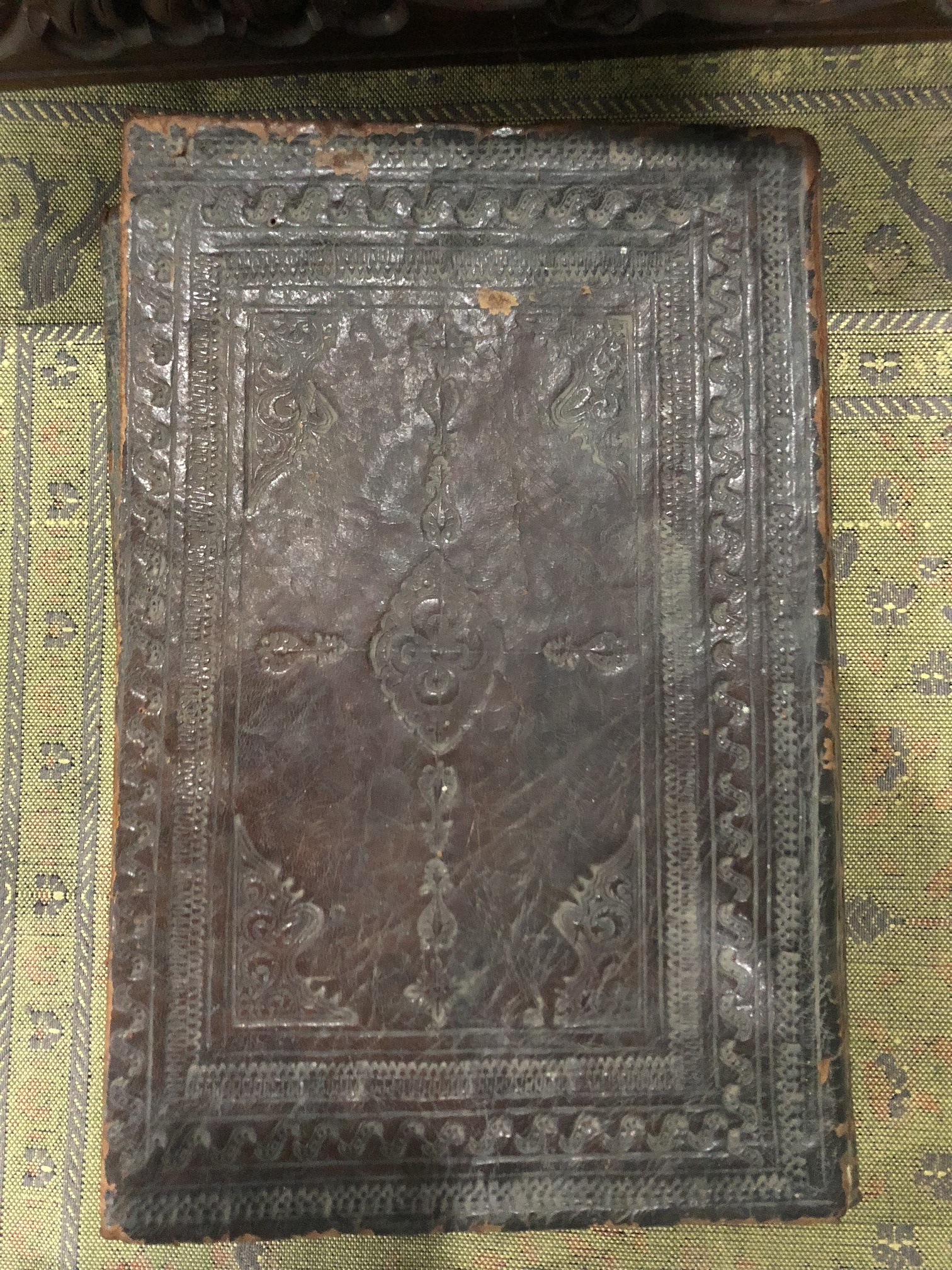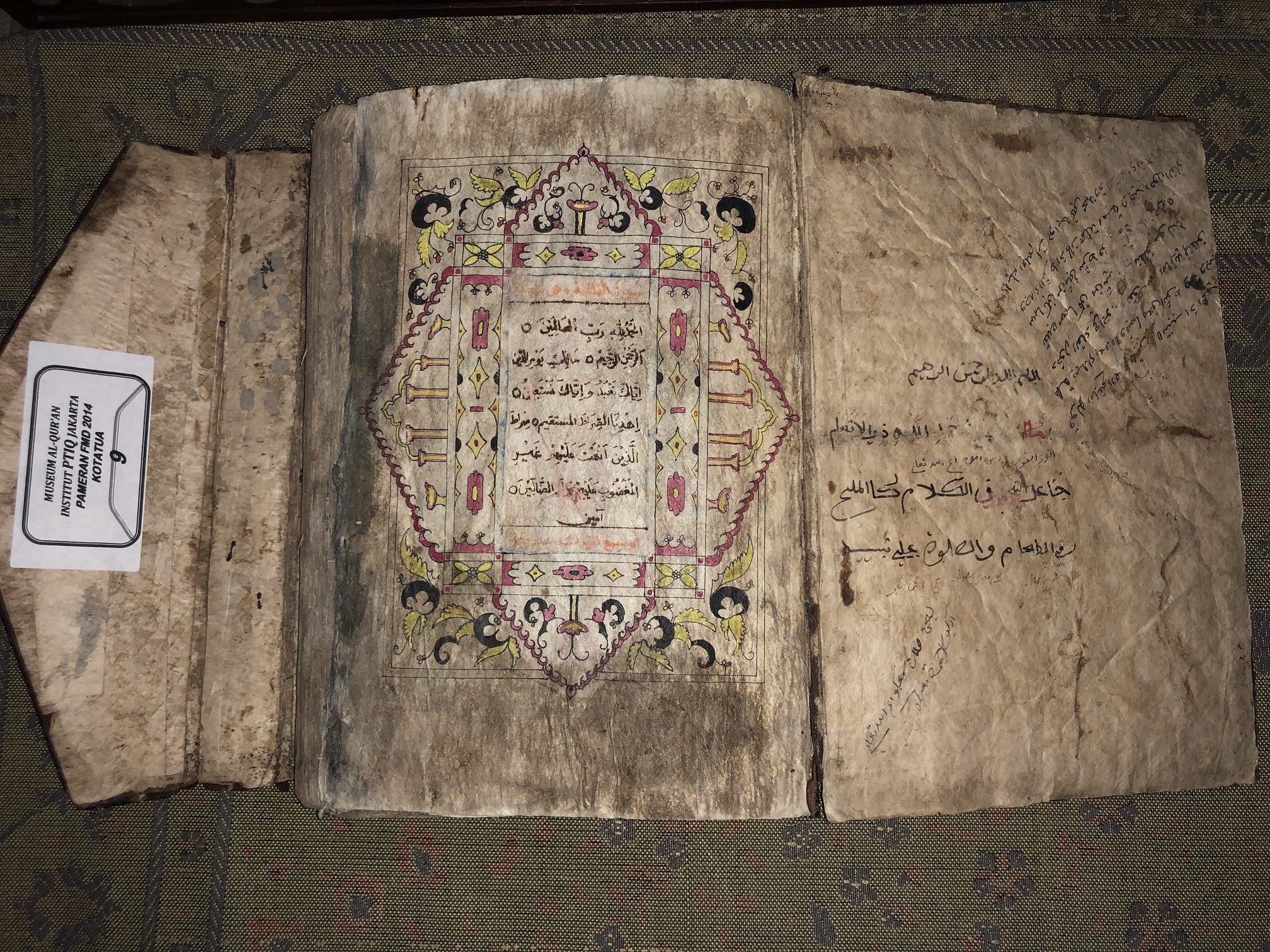 Mushaf ini berasal dari daerah Karang Ampel, termasuk Mushaf Kuno karena tulisan teks Al-Qur'annya menggunakan bahan kulit kayu (daluang). Adapun mushaf ini menggunakan khat naskh dan memiliki ornamen Lukisan merah kuning dengan cover warna coklat tua terdiri dari 462 halaman. menurut catatan yang ada mushaf selesai ditulis sekitar tahun 1771.