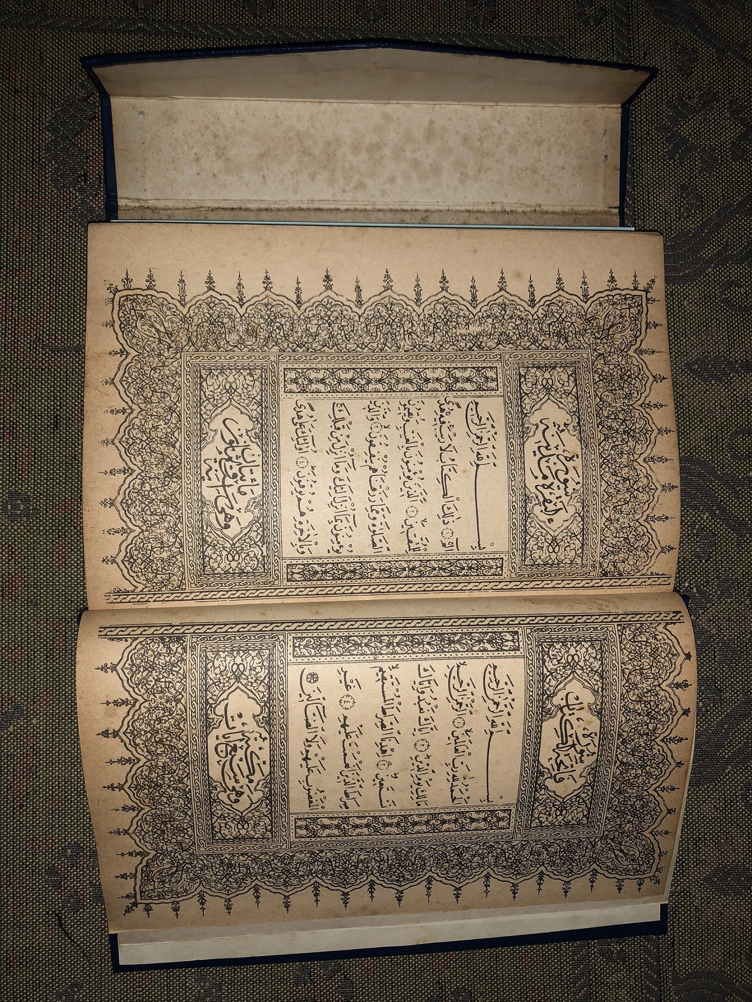 Mushaf ini merupakan mushaf modern, penulisan teksnya telah menggunakan teknologi modern. Mushaf ini diterbitkan pada tahun 1982. Teks ini ditulis oleh Abdul Fattah Al-Qadhi. Mushaf ini memiliki ornamen Iluminasi Warna-warni, dengan covernya berwarna Biru Ornamen Warna Emas. Teks tulisan menggunakan bahasa Arab dan dan ditulis/dicetak menggunakan Kertas Druslag, berjumlah 864 halaman.