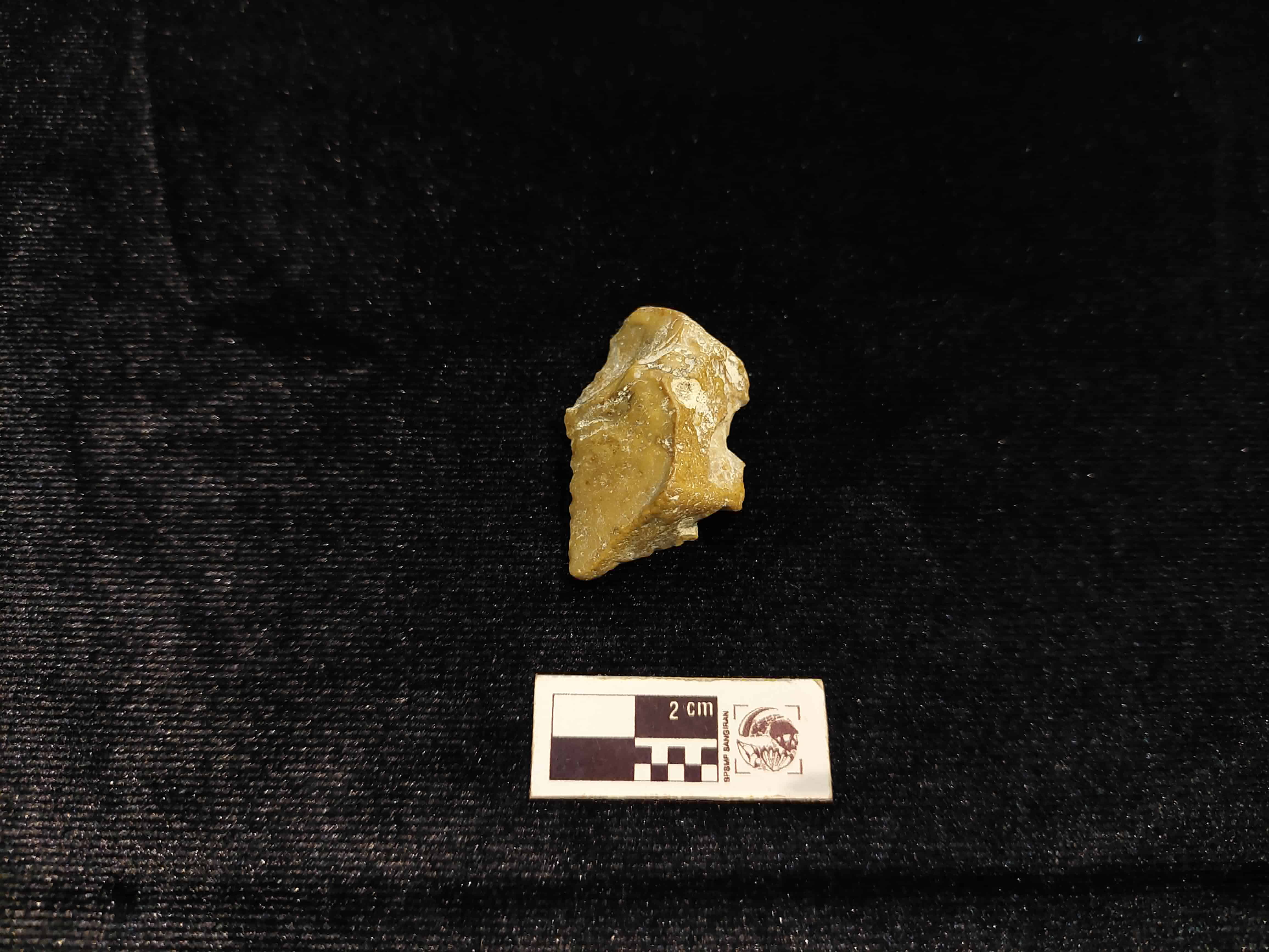 Koleksi ini merupakan alat batu yang termasuk dalam kategori serpih. Alat serpih merupakan alat batu sederhana yang berukuran kecil dan memiliki tajaman/lancipan. Alat serpih ini terbuat dari batu gamping kersikan yang berwarna kuning pucat.