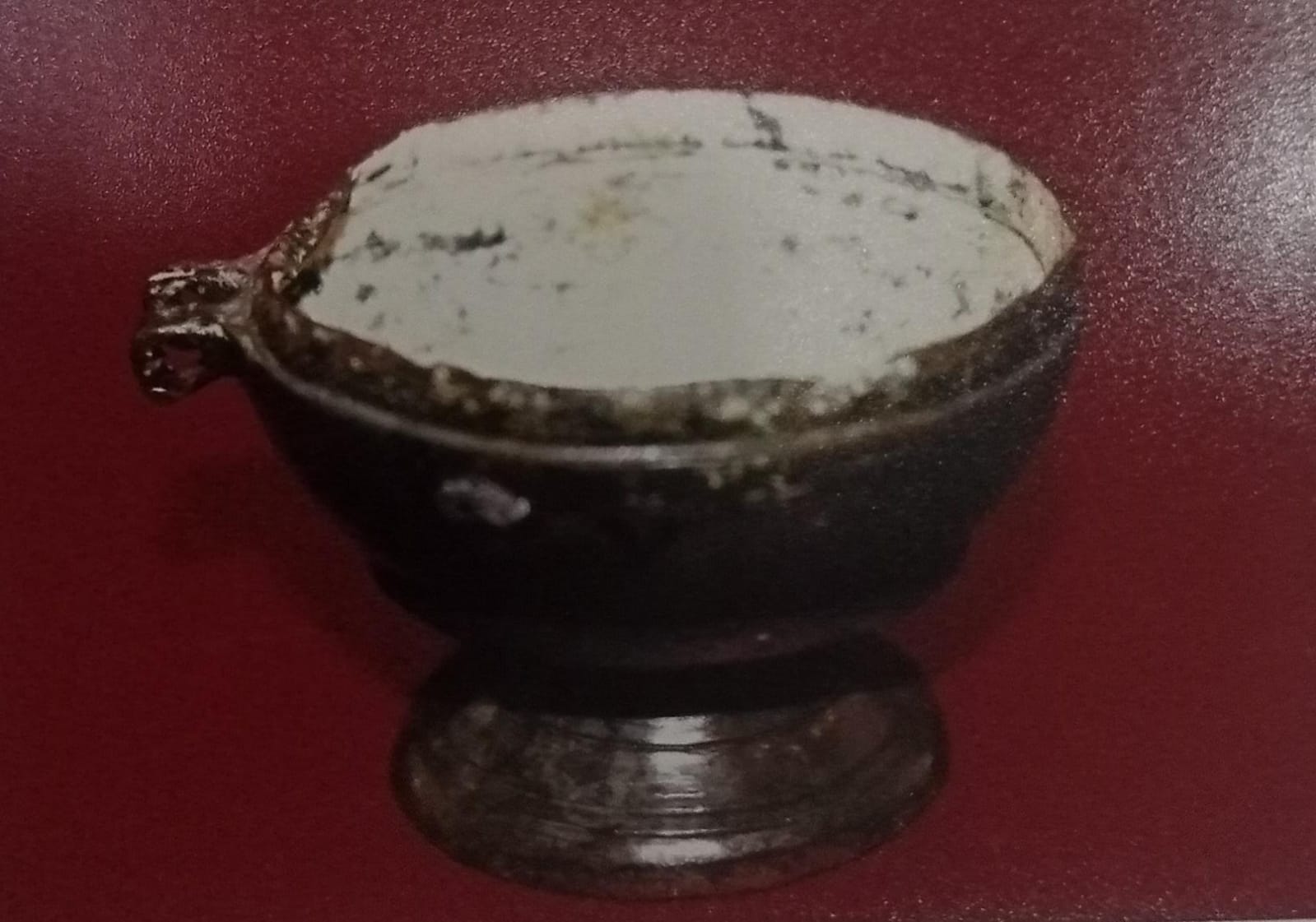 Terbuat dari bahan kuningan, berwarna kuning, berbentuk seperti bokor, berfungsi sebagai tempat kapur sirih