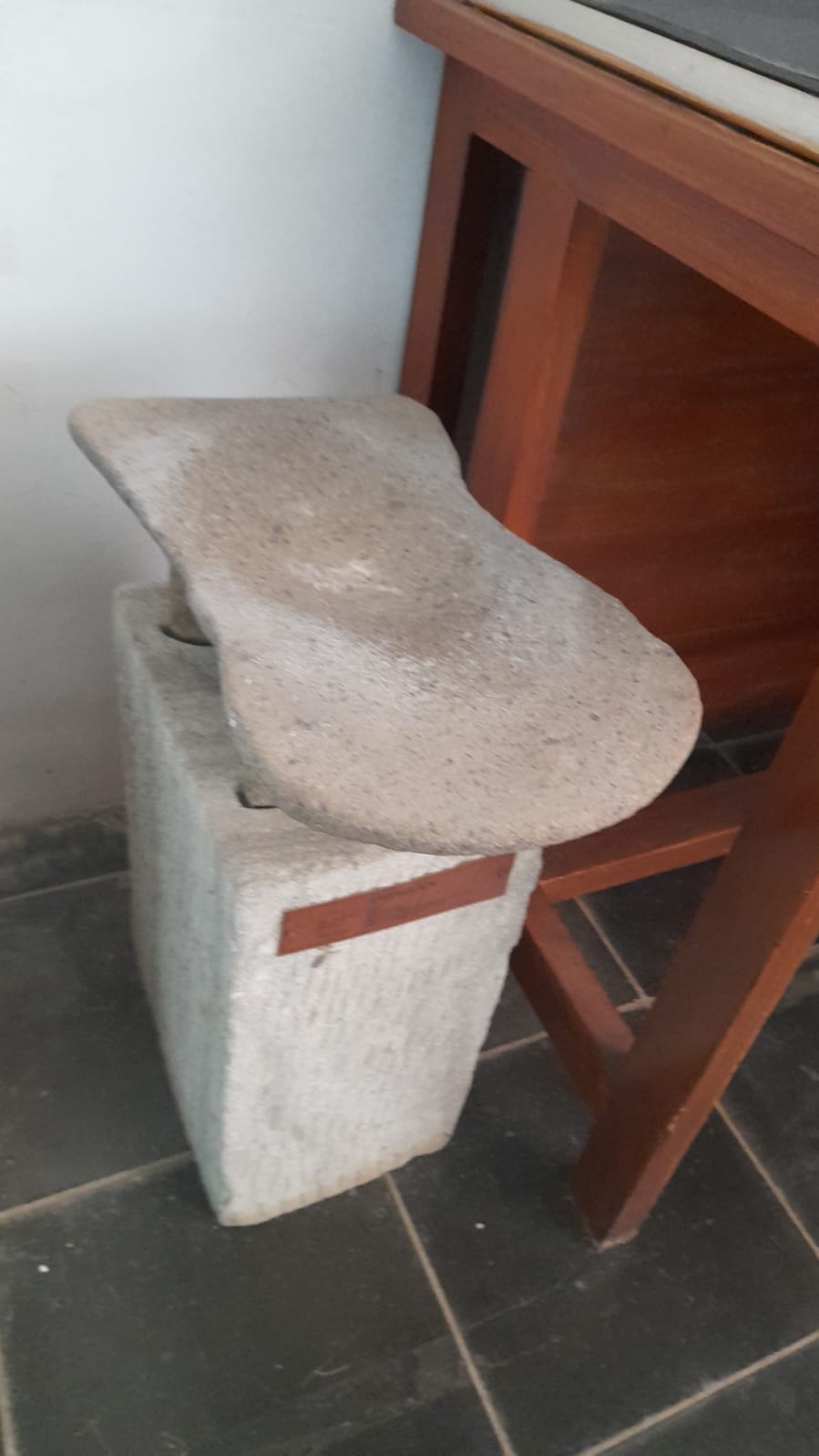TERBUAT DARI BATU, BERBENTUK GAJAH, BERWARNA HITAM. ARCA BATU ADALAH PAHATAN BERBENTUK MANUSIA ATAU BINATANG BERUKURAN KECIL DISIMPAN DALAM RUMAH YANG DIPERCAYA SEBAGAI WUJUD DARI NENEK MOYANG DENGAN TUJUAN UTAMA SEBAGAI SARANA DALAM MEMUJA ARWAH-ARWAH, KEPERCAYAAN PADA KEKUATAN GAIB, MENGANGGAP BAHWA ROH SESEORANG TIDAK LENYAP PADA SAAT ORANG MENINGGAL, MASIH SELALU BERHUBUNGAN DENGAN ORANG YANG MASIH HIDUP MELALUI MEDIA ARCA BATU. MENURUT F.A. WAGNER DALAM INDONESIA THE ART OF AN ISLAND GROUP MENYATAKAN MEGALITIK TIDAK HANYA BATU BESAR TETAPI BATU KECIL DAN BAHKAN TANPA MONUMEN DIKATAKAN BERCIRI MEGALITIK APABILA BENDA TERSEBUT UNTUK PEMUJAAN ARWAH NENEK MOYANG. DIGUNAKAN SEBAGAI BEKAL KUBUR, BENDA PUSAKA TURUN TEMURUN, MEDIA PEMUJAAN. BERFUNGSI SEBAGAI PERWUJUDAN KEHIDUPAN PARA LELUHUR YANG AKAN MENJAGA MEREKA YANG MASIH HIDUP DAN SEBAGAI ARCA PEMUJAAN BAGI ROH NENEK MOYANG DAN PERSEMBAHAN