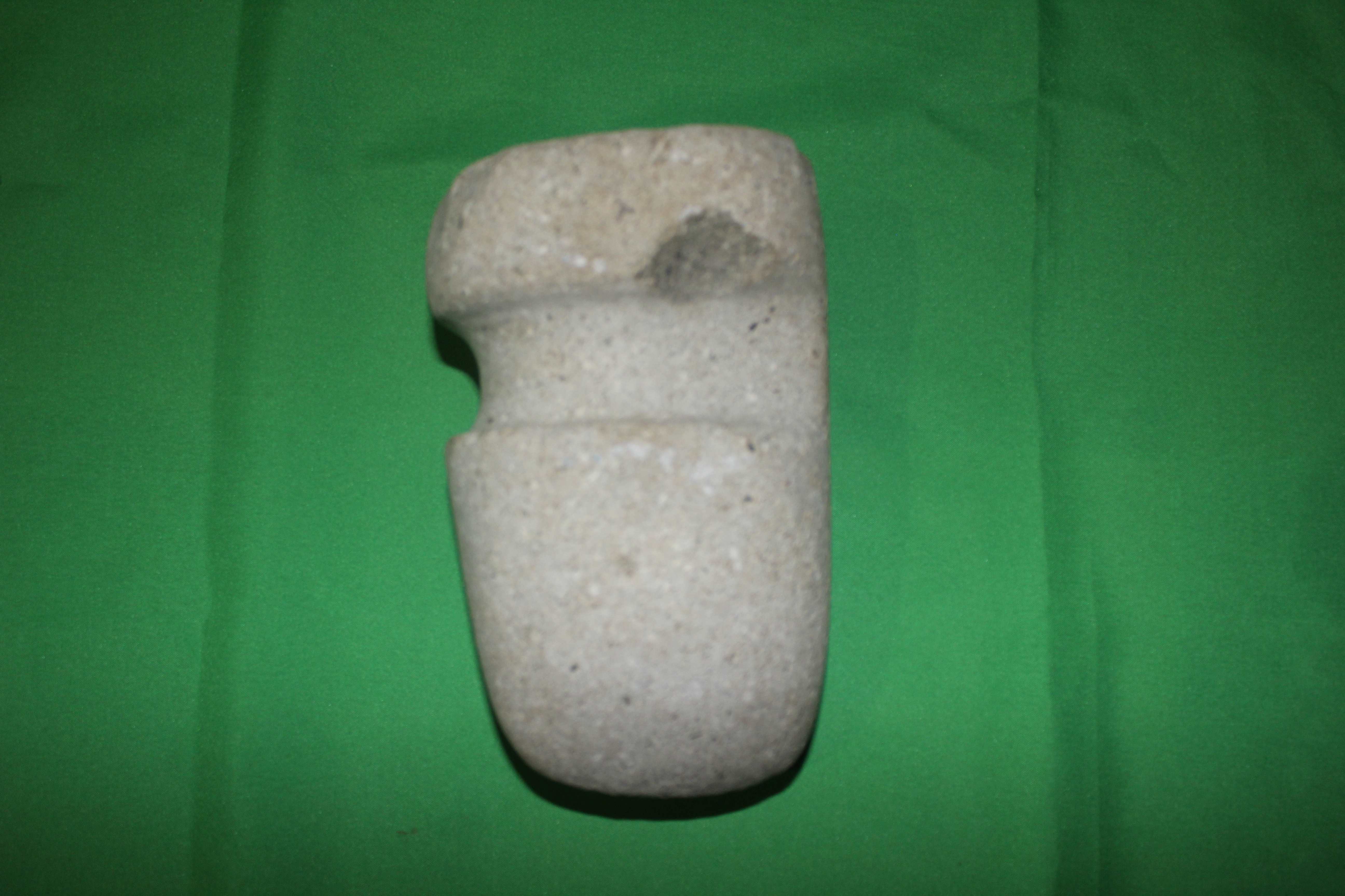 Arca digambarkan duduk di atas bantalan arca yang berbentuk setengah lingkaran pada bantalan arca dihiasi kelopak bunga (padma) arca bertangan 4, tangan kanan depan membawa sesuatu (aus) dan diletakkan di atas paha, tangan kanan belakang dijulurkan ke atas (patah). Tangan kiri depan membawa sesuatu (mangkok). Arca digambarkan berpertu gendut, pada perut memakai ikat tali urubandha pada bahunya terdapat tali kasta (upawita)