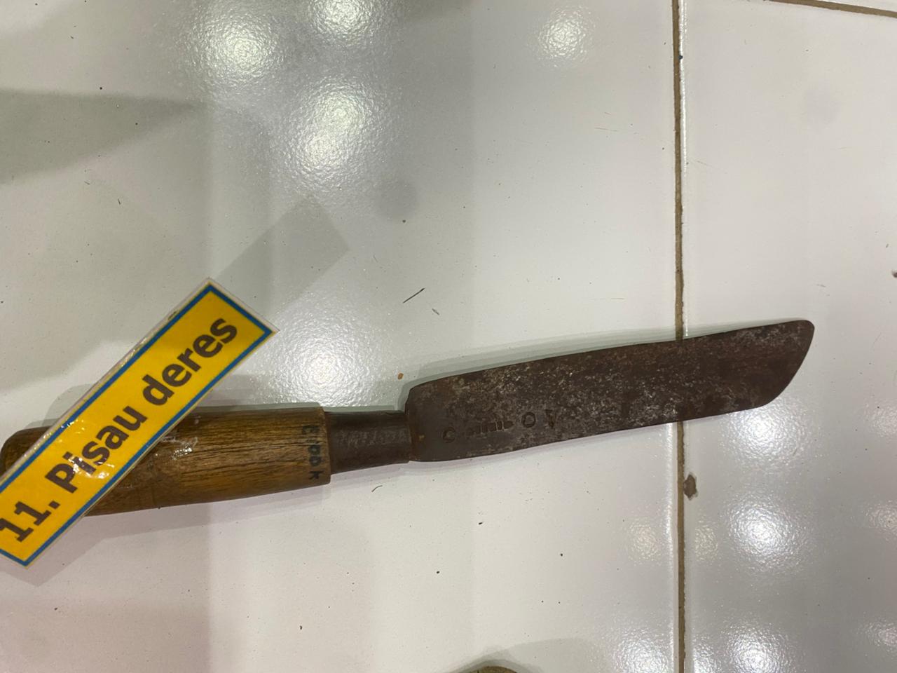 Terbuat dari benang katun warna biru, disongket dengan benang emas. Baju ini berlengan panjang, leher bulat dan diberi letsleting pada bagian belakang. Pada bagian tengah baju dihiasi motif bunga mawar dan suluran, bagian pinggirnya terdapat motif rangakain tumpal membentuk pinggir awan, sebanyak empat bidang vertikal. Bidang baju yang luas dihiasi motif tabur bunga tanjung yang disongket jarang-jarang. Digunakan sebagai barang hantaran perkawinan dari mempelai pria kepada mempelai wanita.