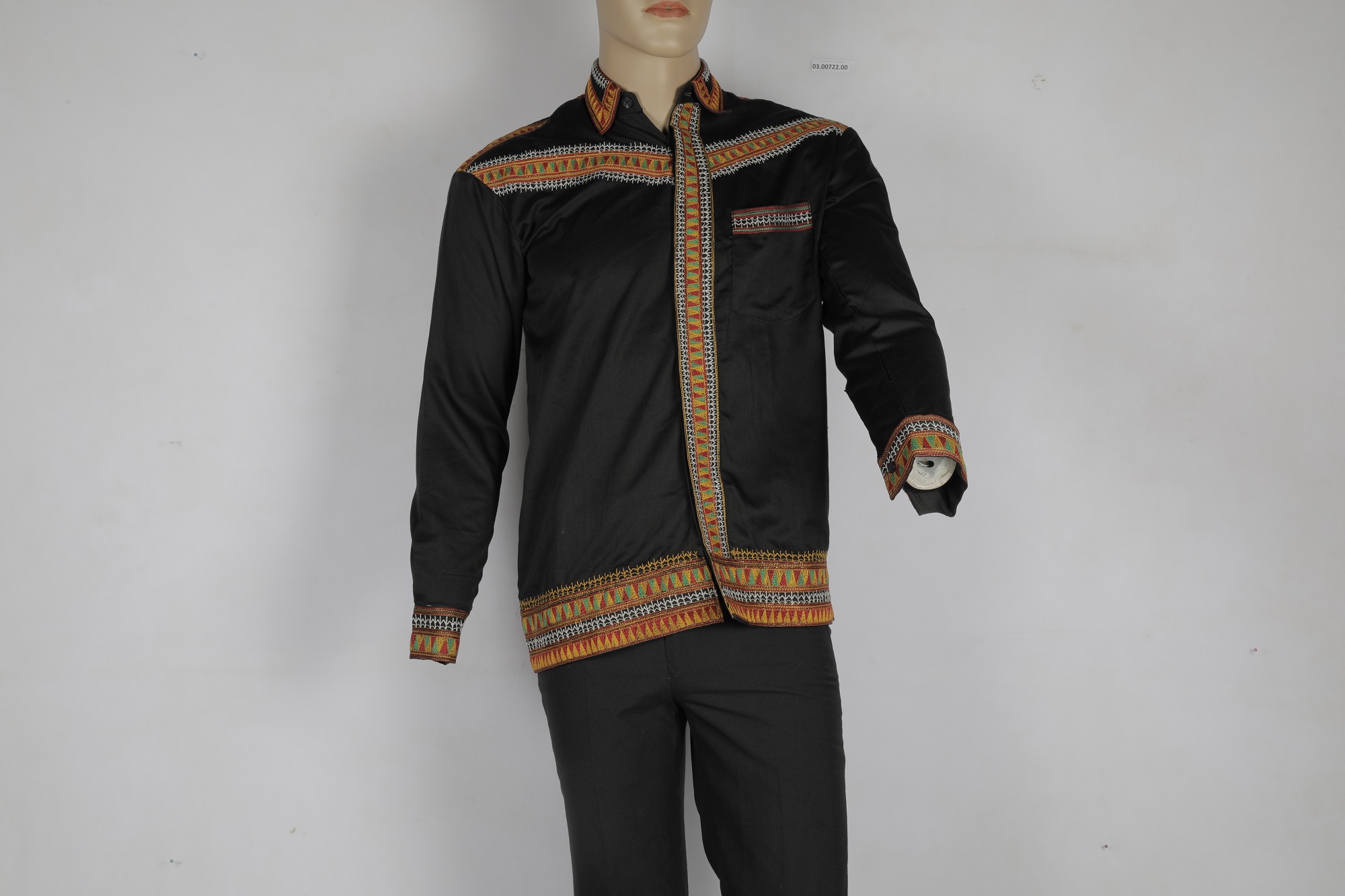 sehelai baju pria terbuat dari sutra hitam berlengan panjang, berkerah dan bersaku satu buah dibagian kiri. pada bagian dada,pundak, lengan dan kaki baju dihiasi dengan sulaman motif pucuk rebung dan pagar. baju sperti ini biasanya dipakai untuk upacara adat di masyarakat gayo.