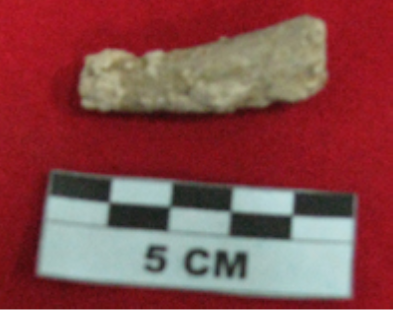 Objek ini merupakan batu bata dengan motif melengkung. Terdapat bekas pembakaran berwarna hitam dan beberapa lubang pada permukaannya