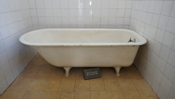 Koleksi bak mandi merupakan bagian dari rumah tempat tinggal milik R.M. Djodjoadiningrat dan R.A.Kartini yang saat ini menjadi lokasi Museum R.A. Kartini Rembang. Koleksi bak mandi berada di ruang kamar mandi sesuai dengan kondisi saat bangunan tersebut masih berfungsi sebagai rumah tinggal. Keberadaan bak mandi berbahan porselen menunjukkan strata sosial tinggi yang tidak banyak dimiliki oleh masyarakat pada masa itu.
