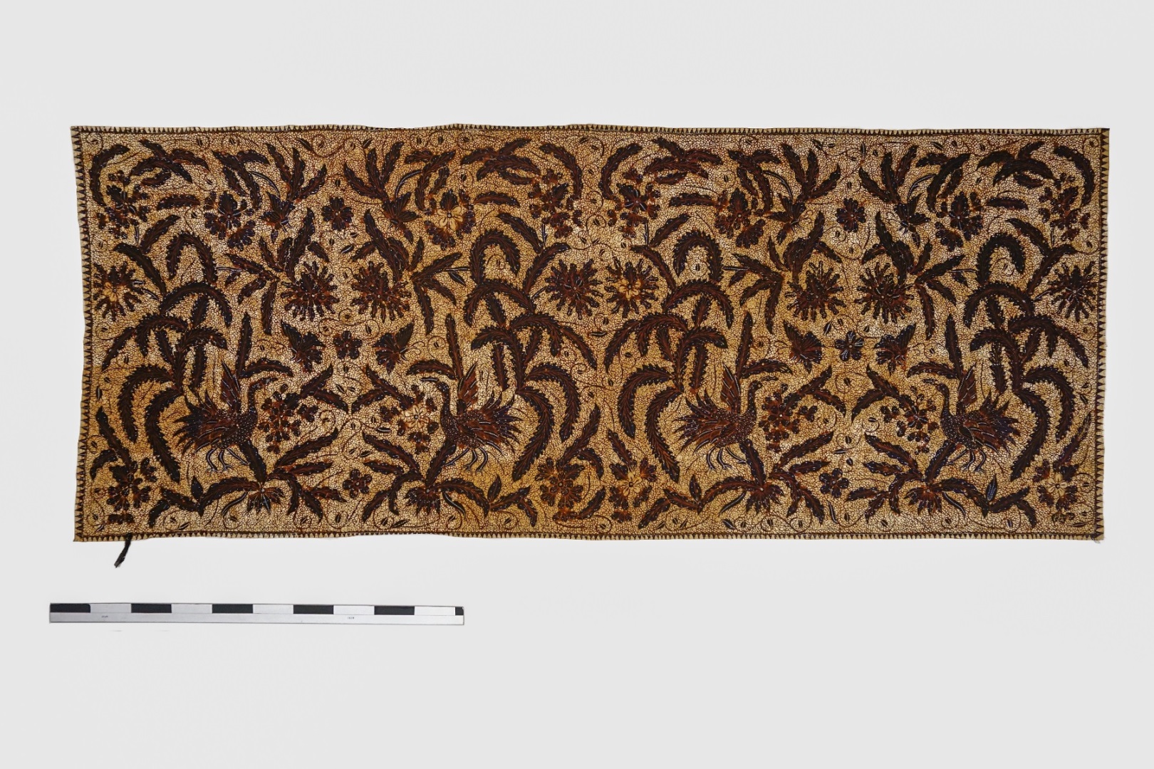 Kain tapih atau jarit batik latar putih dengan pola berwarna sogan yang berasal dari Desa Dagan, Kecamatan Bobotsari. Seperti halnya batik Banyumasan, pembatik Dagan banyak memproduksi batik jonasan, sidomukti maupun merak buketan. Batik memiliki motif berupa empat ekor burung merak pada bagian bawah kain, ekor merak yang juga menyerupai kumpulan daun menjulang ke atas dilengkapi dengan motif bunga dan kupu-kupu. Batik memiliki isen-isen berupa ukel dan tepian segitiga tumpal. Terdapat penanda pada kain kecil yang menempel pada batik bertuliskan DC 19.
