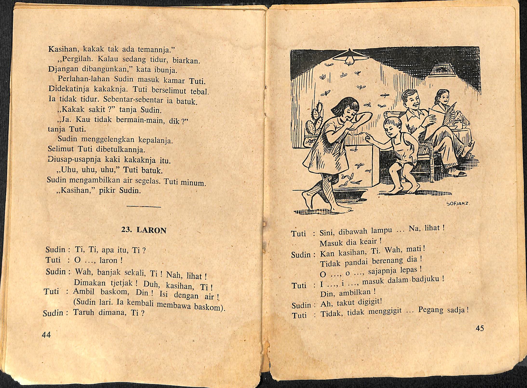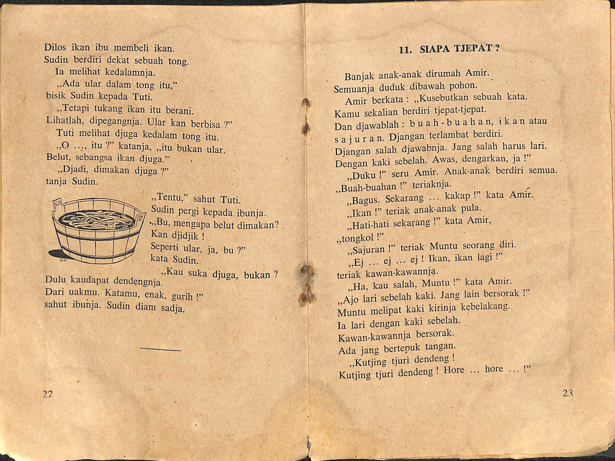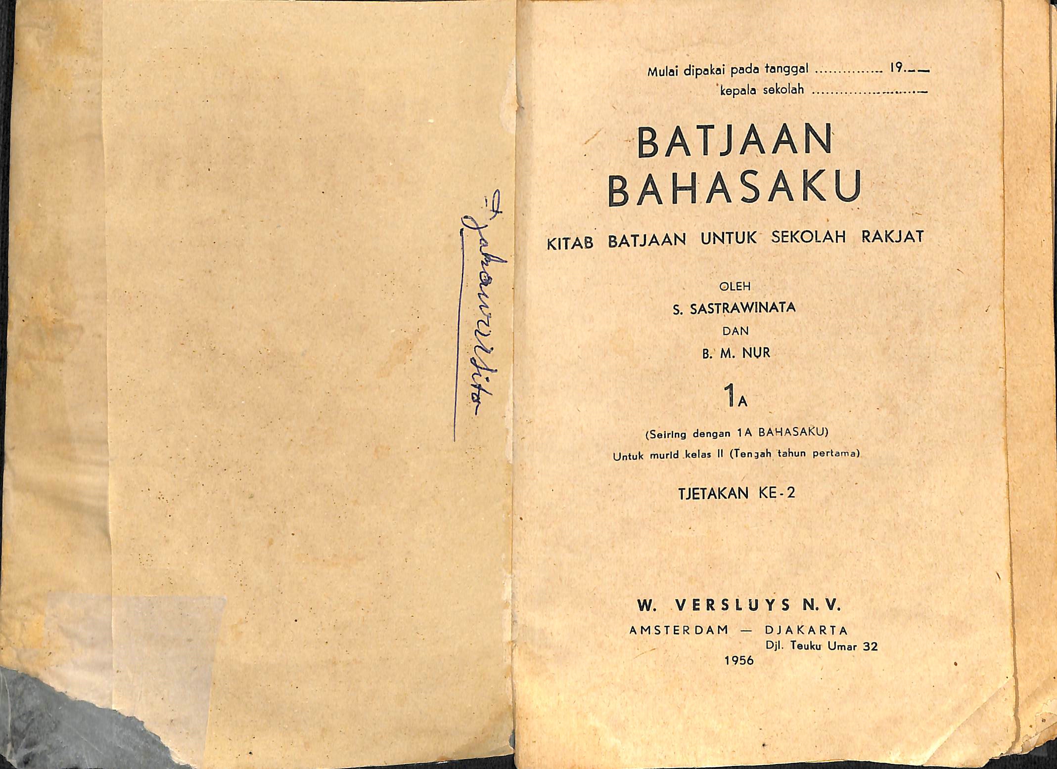 Judul Buku Batjaan Bahasaku 1A disusun oleh S. Sastraawinata dan B.M. Nur tjetakan ke dua. Penerbit W. Versluys N.V. Amsterdam - Djakarta, 1956.