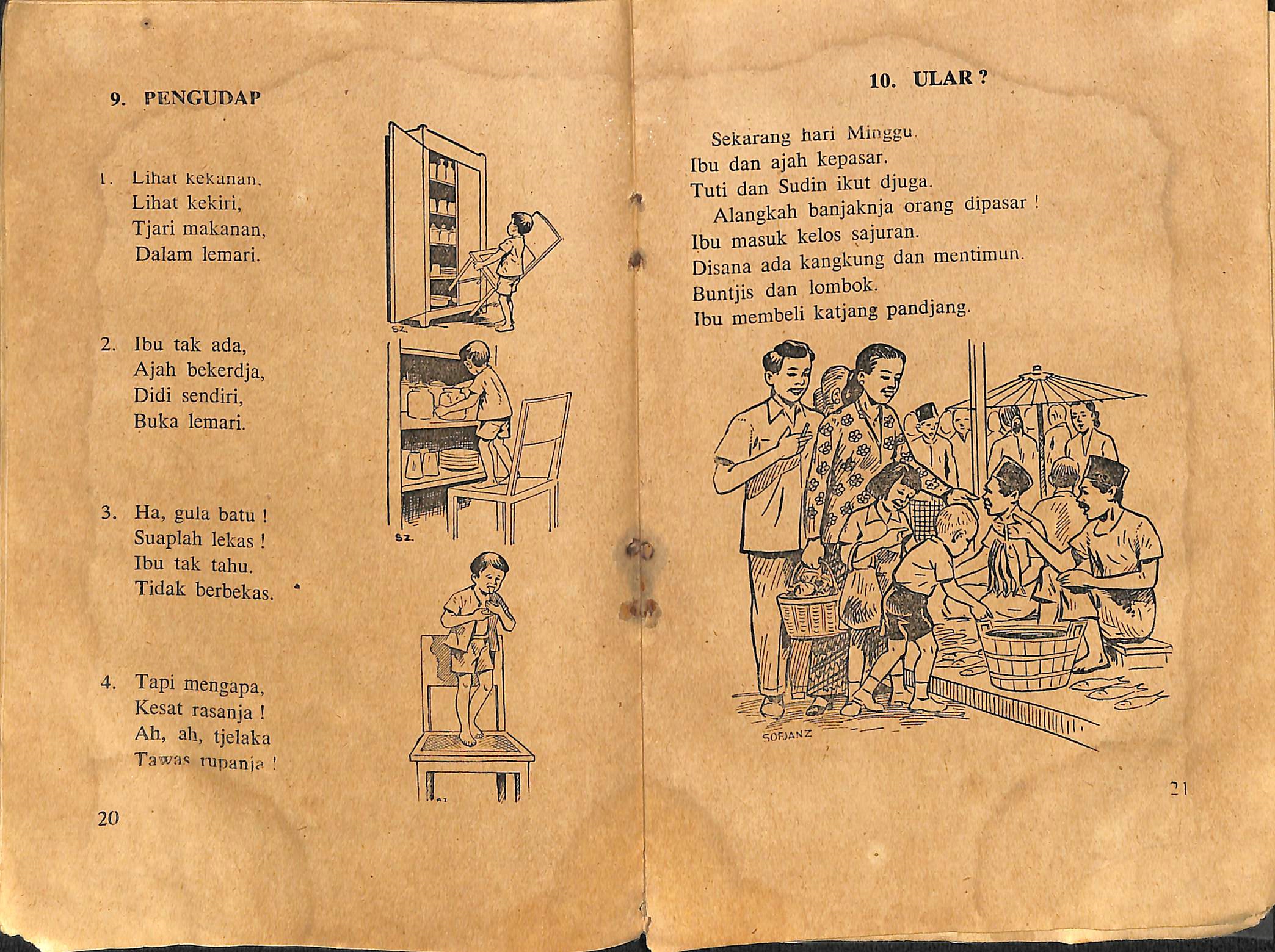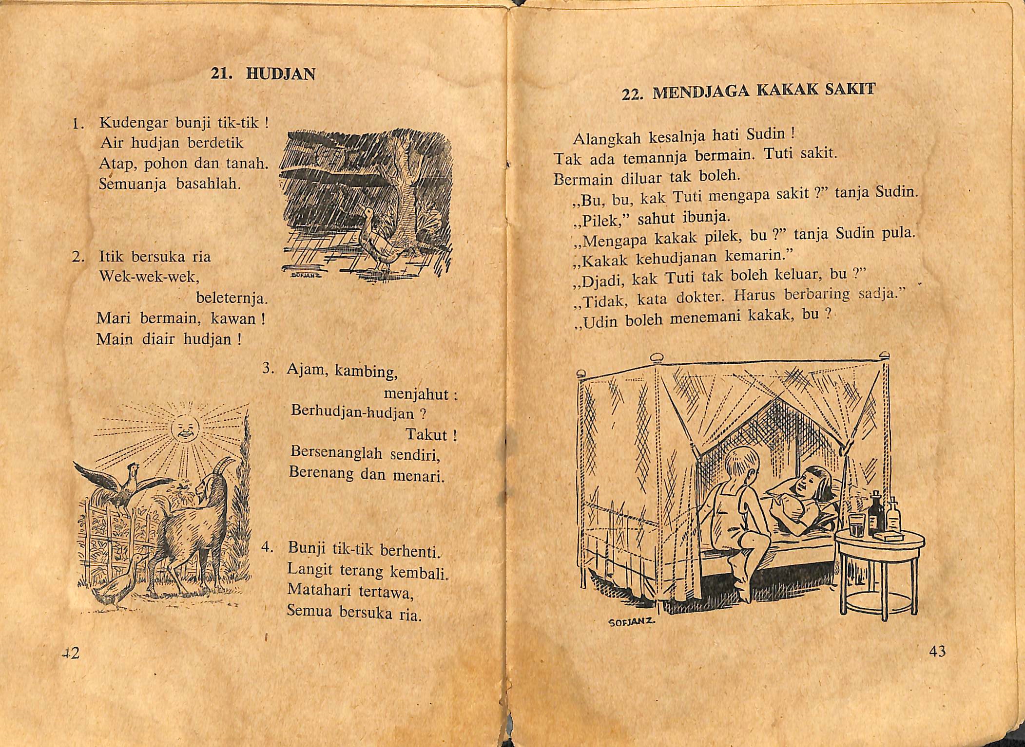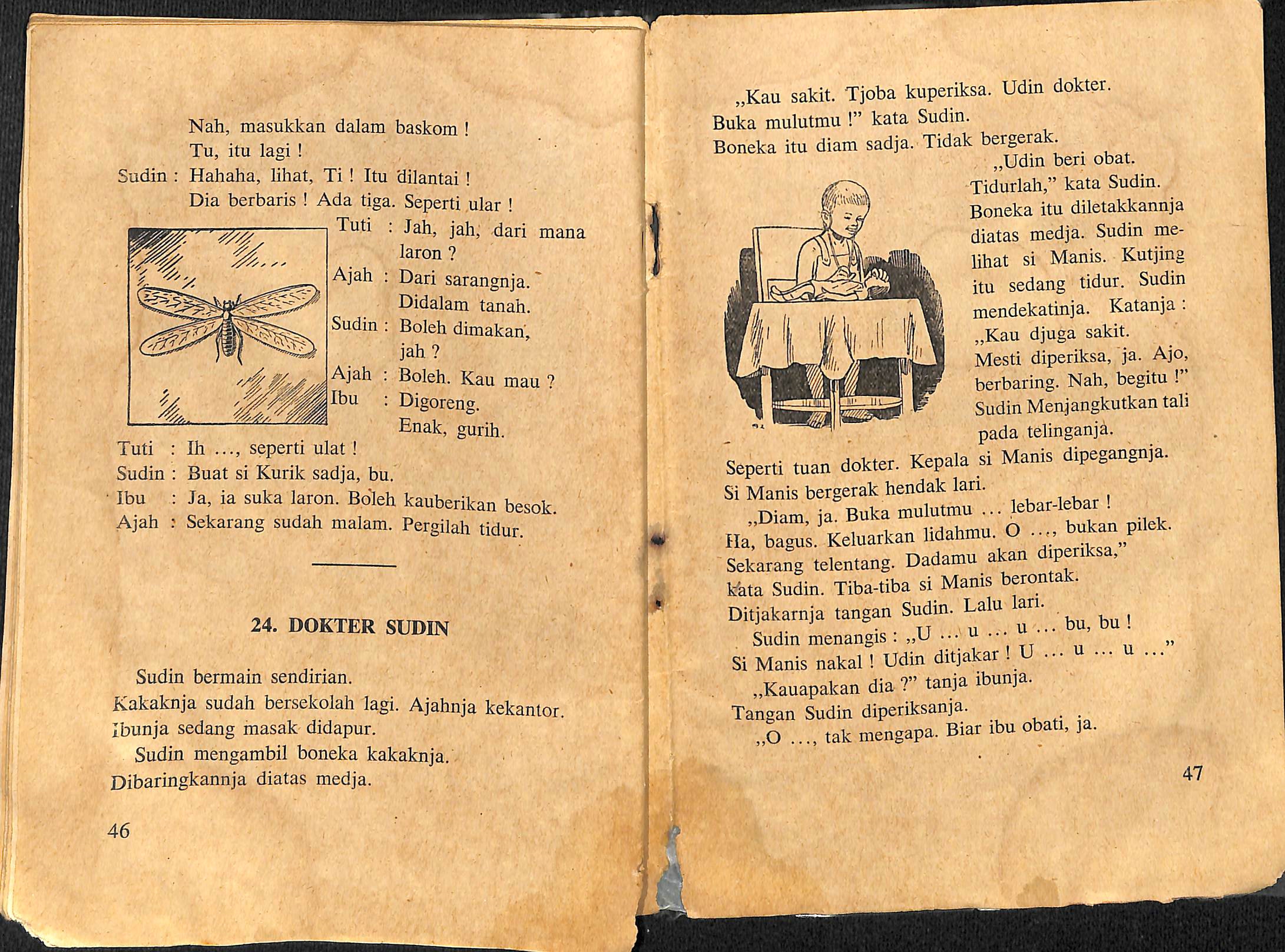 Judul Buku Batjaan Bahasaku 1A disusun oleh S. Sastraawinata dan B.M. Nur tjetakan ke dua. Penerbit W. Versluys N.V. Amsterdam - Djakarta, 1956.