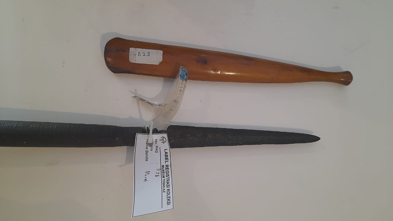 Benda ini terbuat dari batu. Bagian tengah terbelah dua dan bagian atas sampai bawah ada tiga belahan. (refrensi: Atmodjo, Junus Satrio. 2001. Vamedekum Benda Cagar Budaya. Jakarta: Kementrian Kebudayaan dan Pariwisata)