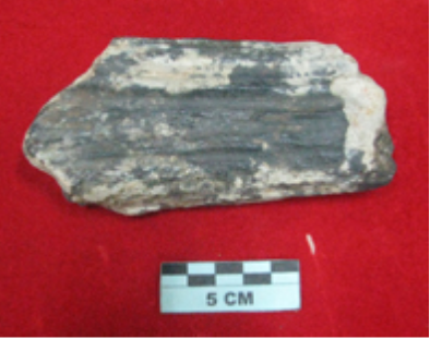 Koleksi ini merupakan beliung persegi tipe atap dengan kondisi koleksi bagian depan terdapat nomor temuan warna putih. Bagian belakang terdapat beberapa bercak pelapukan, teknik pemangkasan koleksi ini monofasial (pemangkasan pada salah satu permukaan batu) dan dalam pengerjaannya sedikit dihaluskan. Lalu bagian proximal (atas) cenderung lancip dan distal (bawah) terdapat retusan yang menandakan alat ini pernah dipakai.