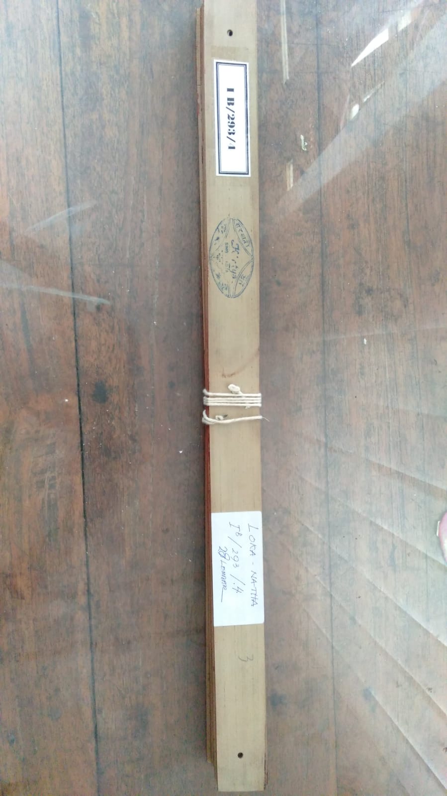 Beliung persegi ini memiliki bentuk utuh dan dalam kondisi fisik yang baik dengan warna dominannya coklat. Pada koleksi ini terdapat kerak berwarna putih yang menempel sekitar 50%. Pada bidang punggung berbentuk datar dan pangkal gagang yang datar pula. Pada sisi kiri kanan lurus ke bawah namun bergerigi. Memiliki teknologi penajaman secara bifasial namun belum mengalami proses pengupaman serta tidak terlihat jejak pakai karena tertutup kerak berwarna putih.