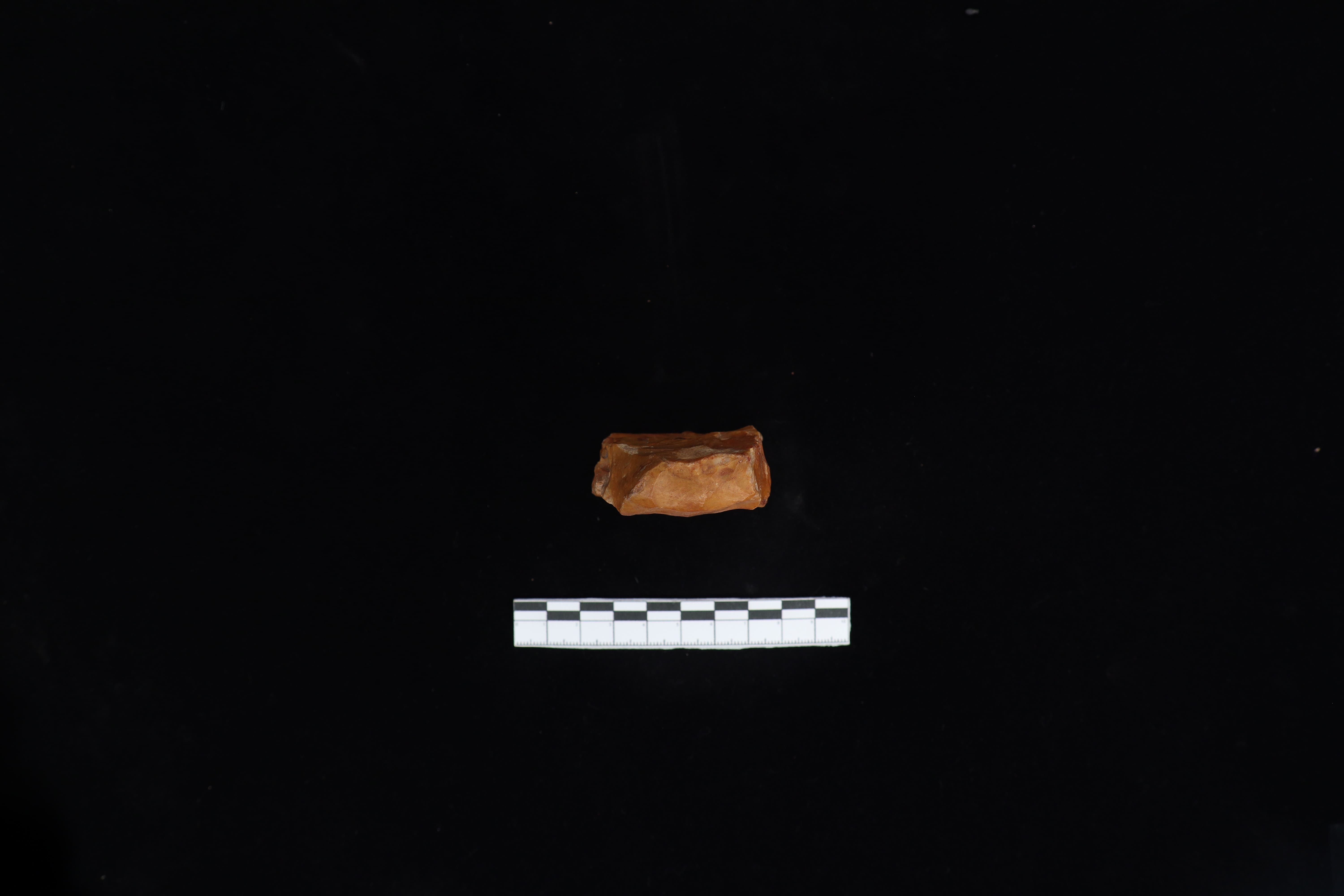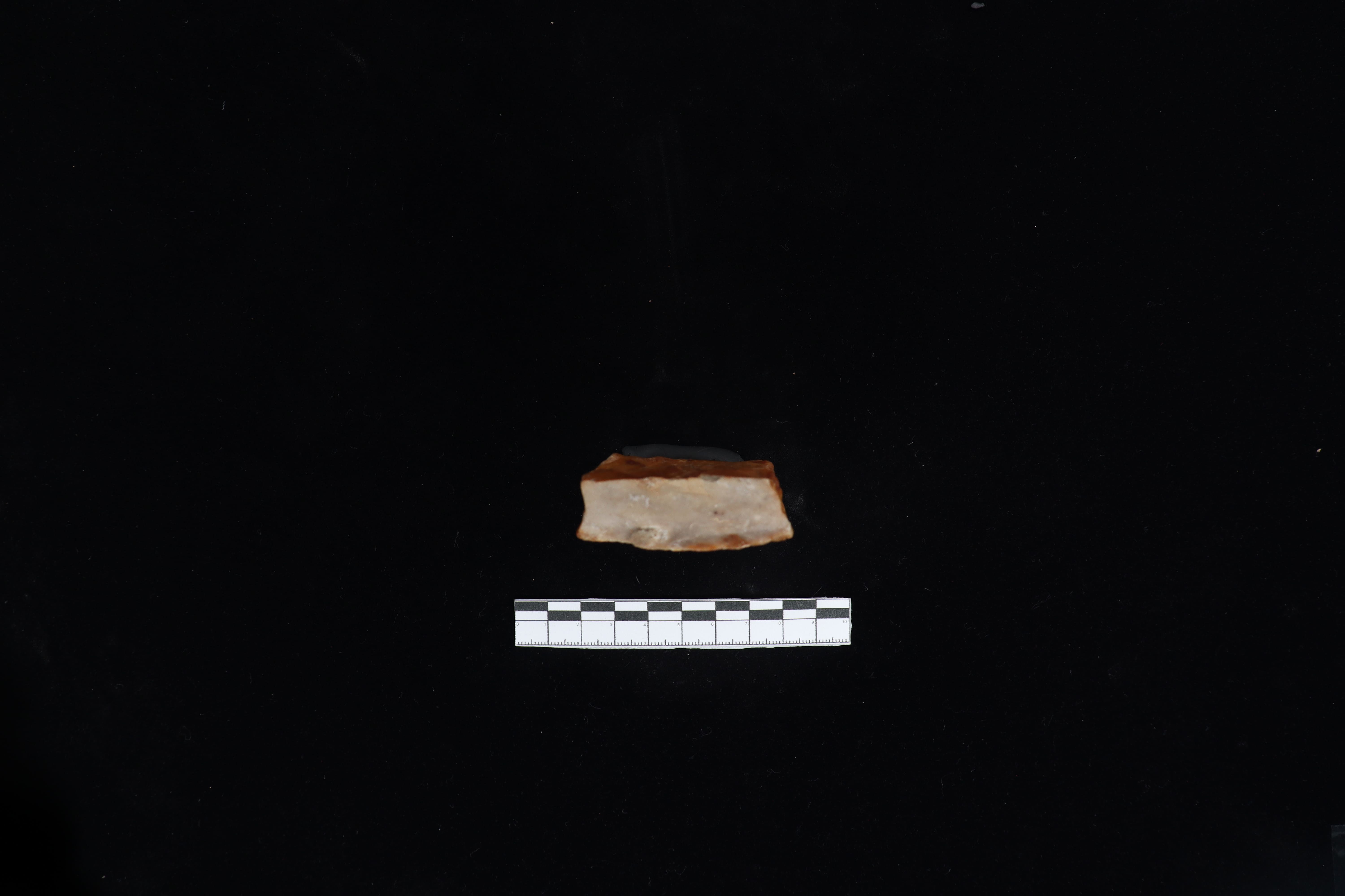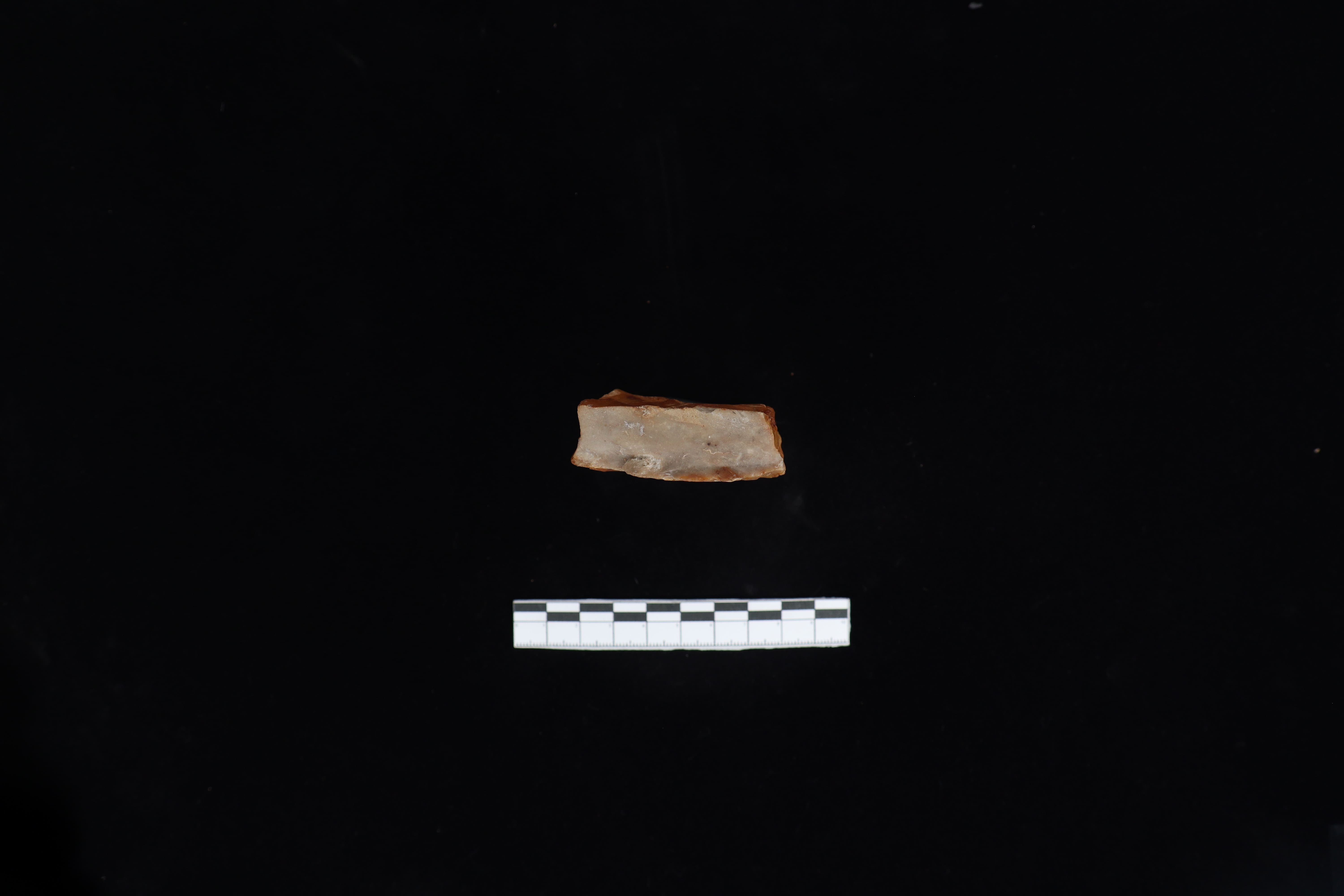 Koleksi ini merupakan beliung persegi dengan kondisi koleksi bagian depan terdapat nomor temuan warna putih, bagian belakang terdapat beberapa bulatan coklat tua, teknik pemangkasan koleksi ini monofasial (pemangkasan pada salah satu permukaan batu) dan dalam pengerjaannya sedikit dihaluskan, di salah satu lateral terdapat lekukan mendalam. Lalu bagian proximal (atas) cenderung rata serta berwarna abu dan distal (bawah) cenderung rata dan tidak ditemukan jejak pakai.