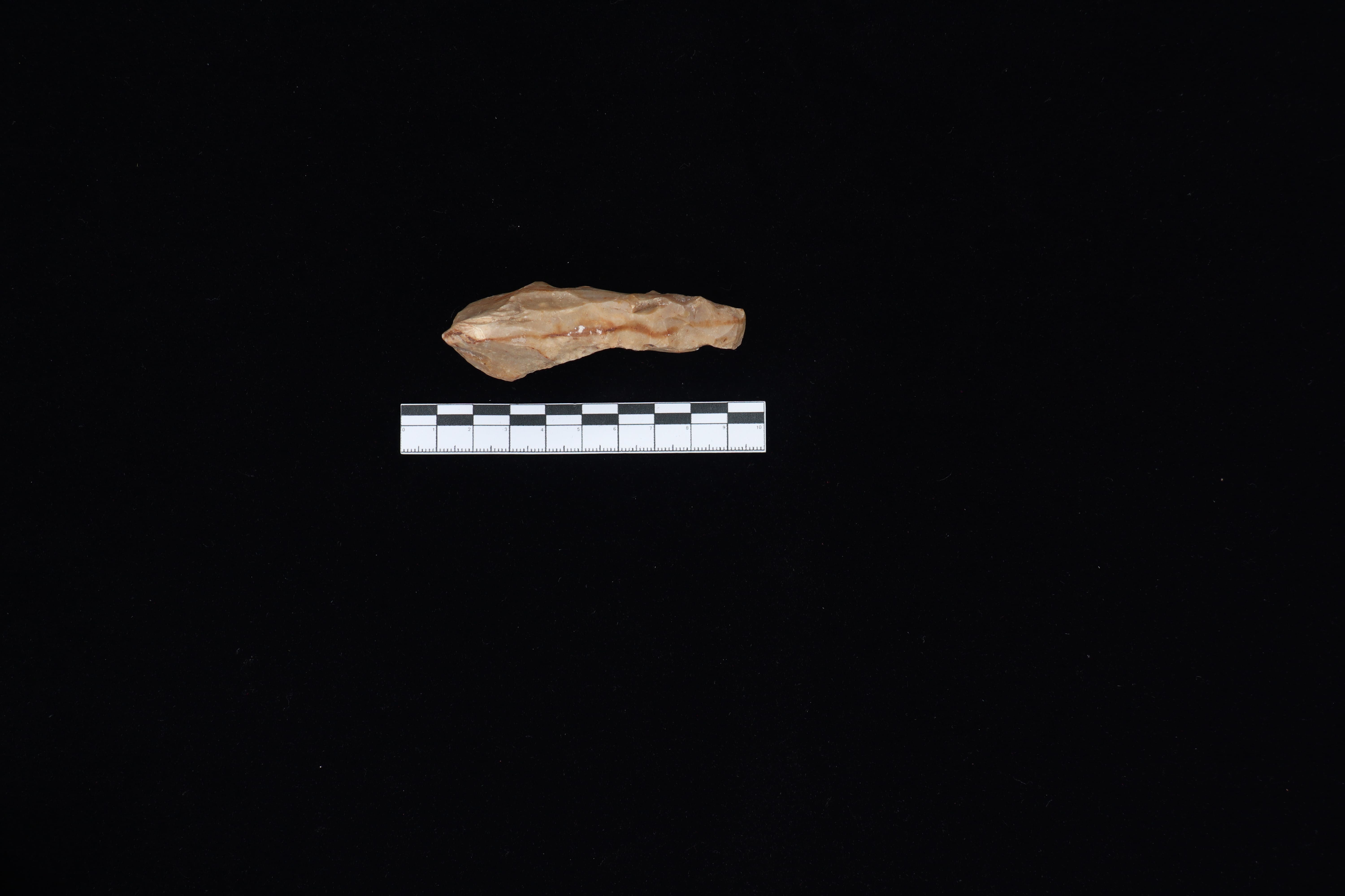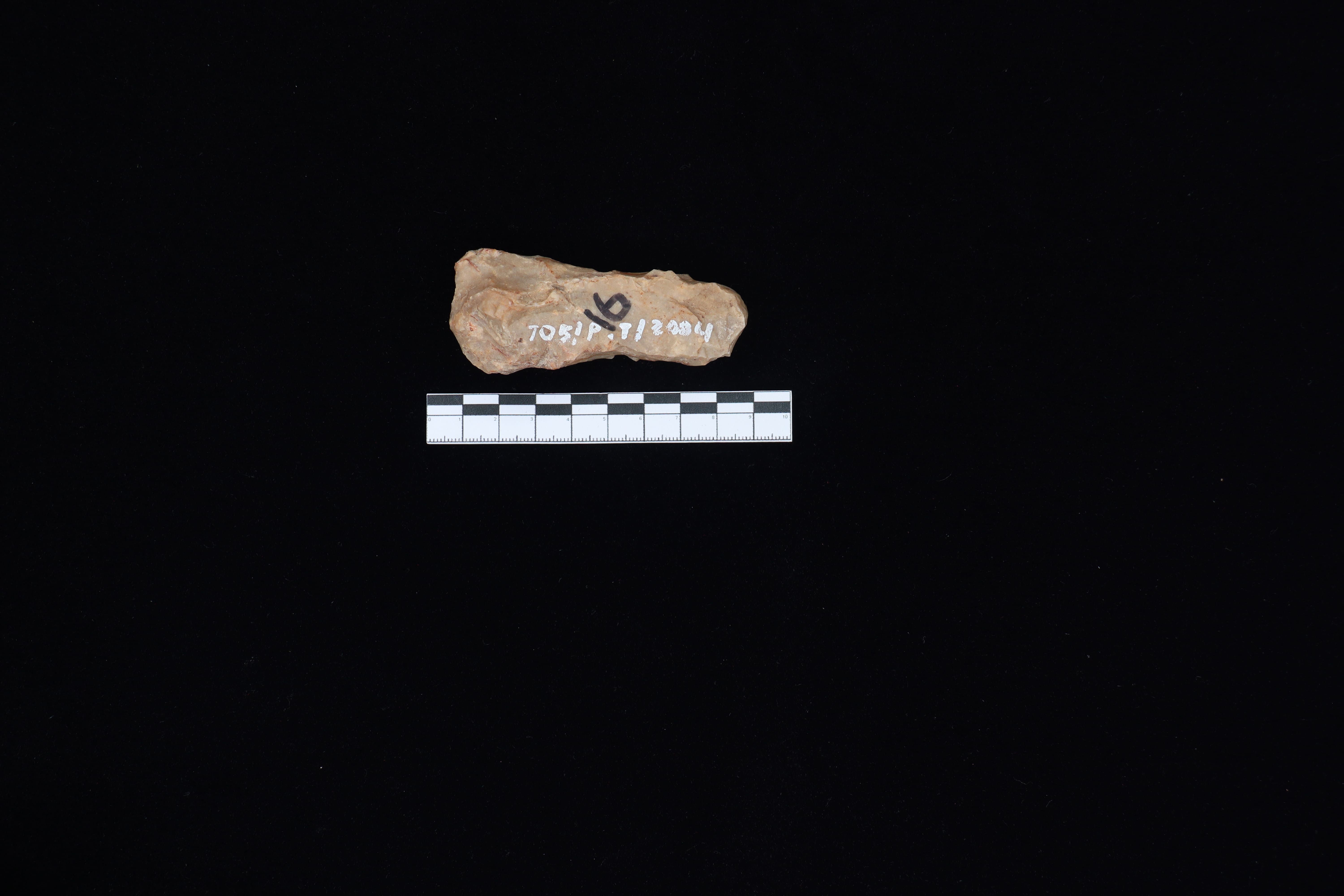 Beliung persegi berwarna coklat abu-abu kehitaman berbentuk persegi panjang. Bagian tajaman yang berbentuk cembung bagian pangkal berbentuk datar, bagian sisi kiri berbentuk cembung dan sisi kana cekung, bidang atas berbentuk datar. Memiliki teknologi penajaman secara bilateral dan dalam pengerjaan yang tidak dihaluskan. Terdapat jejak pakai pada bidang tajaman. Secara umum kondisi beliung persegi ini baik namun terdapat sedikit sisa-sisa tanah yang menempel pada koleksi.