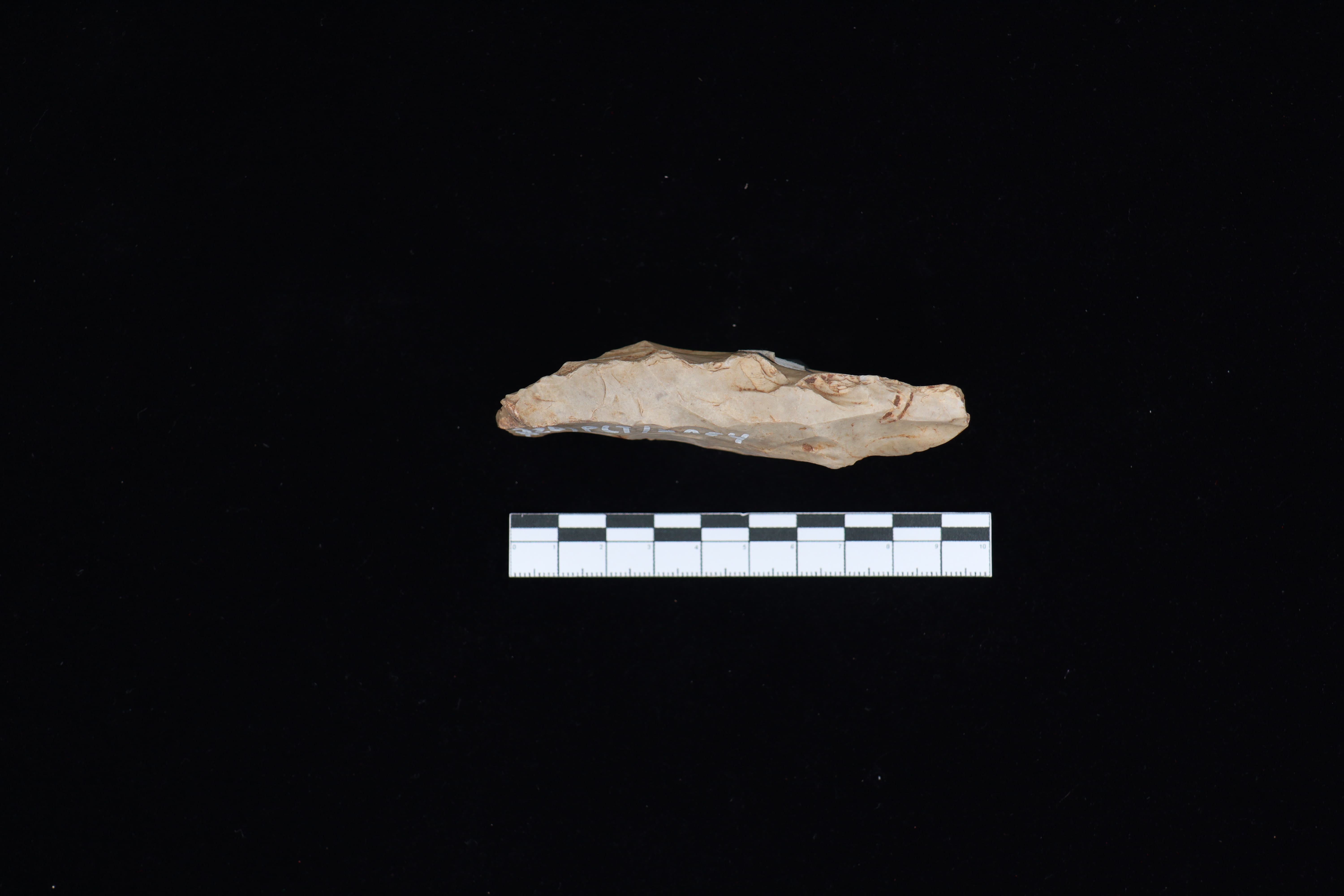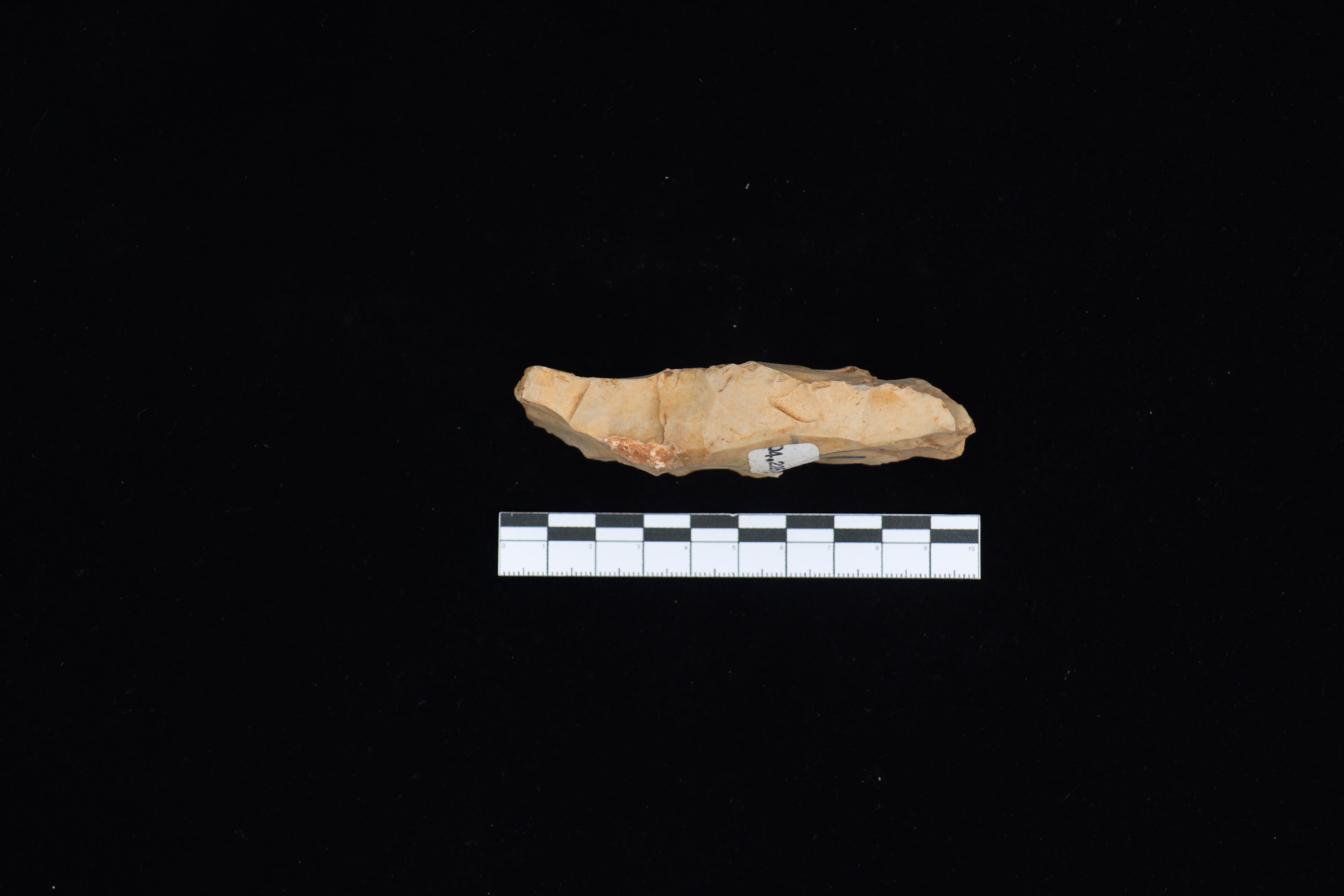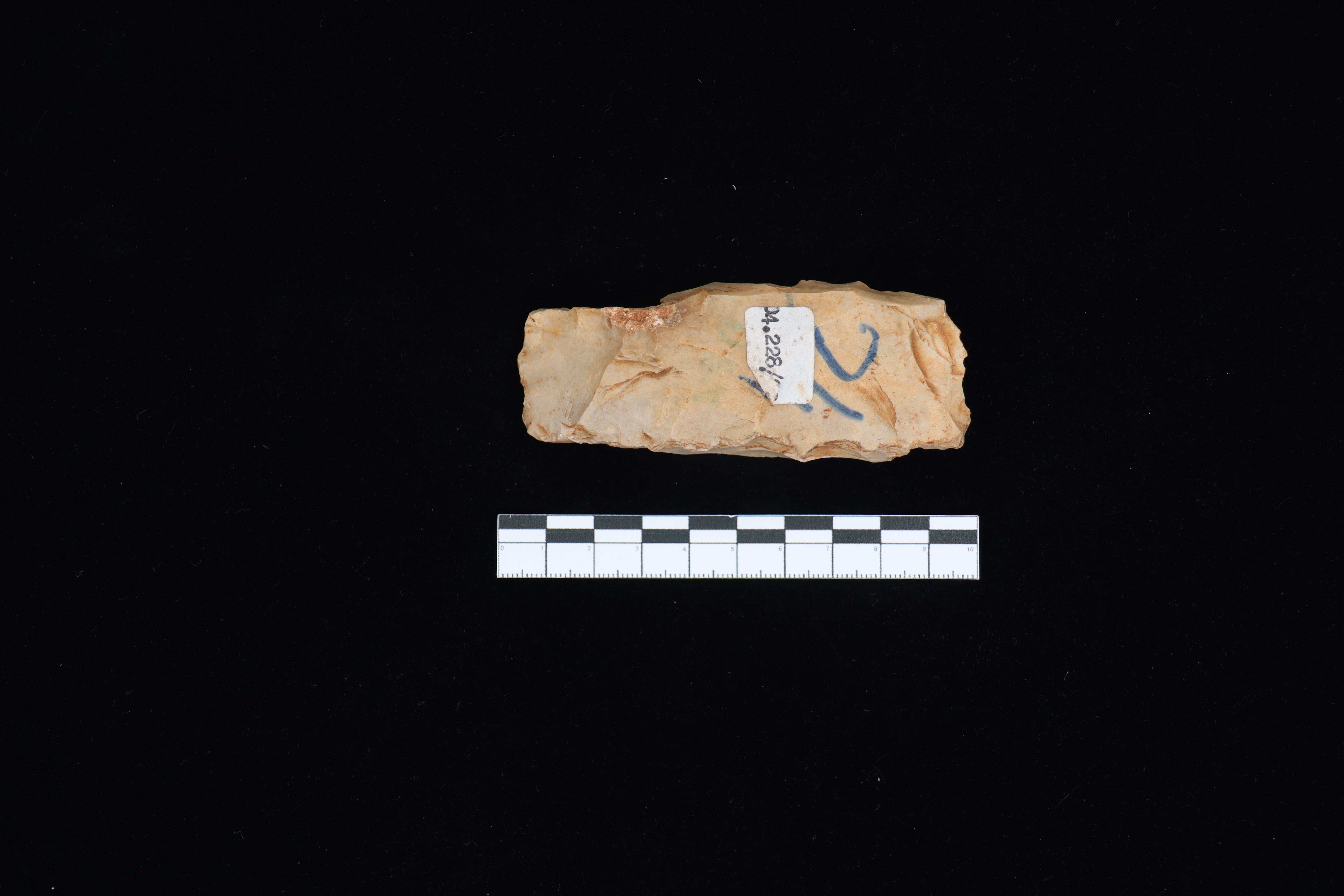 Koleksi ini merupakan Beliung persegi dengan kondisi koleksi bagian depan terdapat nomor inventaris lama kertas yang lama dan sedikit korteks serta adanya garis warna hitam, bagian belakang terdapat label nomor warna putih serta koleksi ini menggunakan teknik pemangkasan Monofasial dan dalam pengerjaannya tidak dihaluskan. Bagian Proxinal/atas dekat dengan garis hitam, bagian Distal/bawah terdapat sedikit retusan dan korteks, bagian Lateral kanan cenderung lebih tebal dibanding bagian Lateral kiri yang lebih ramping.