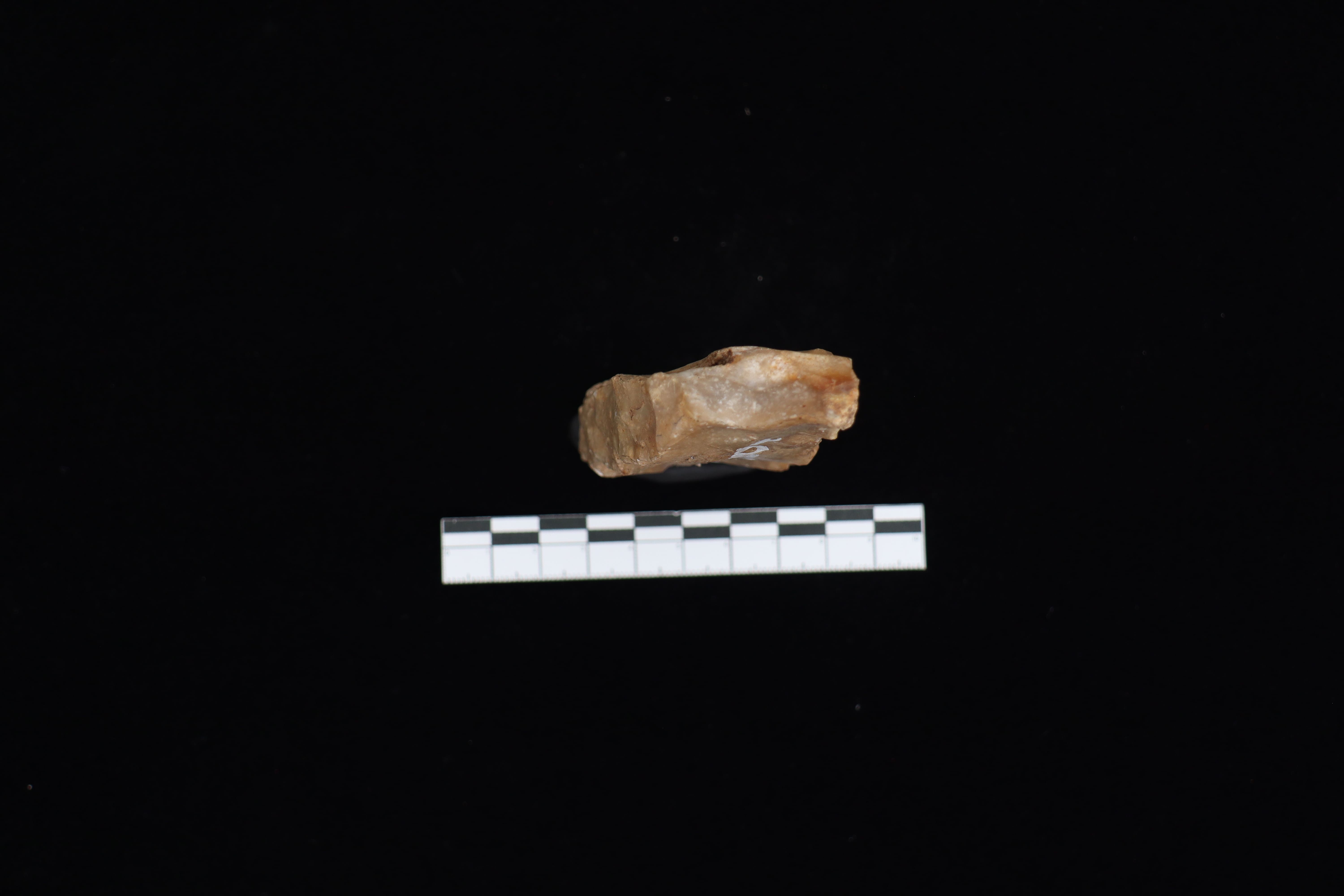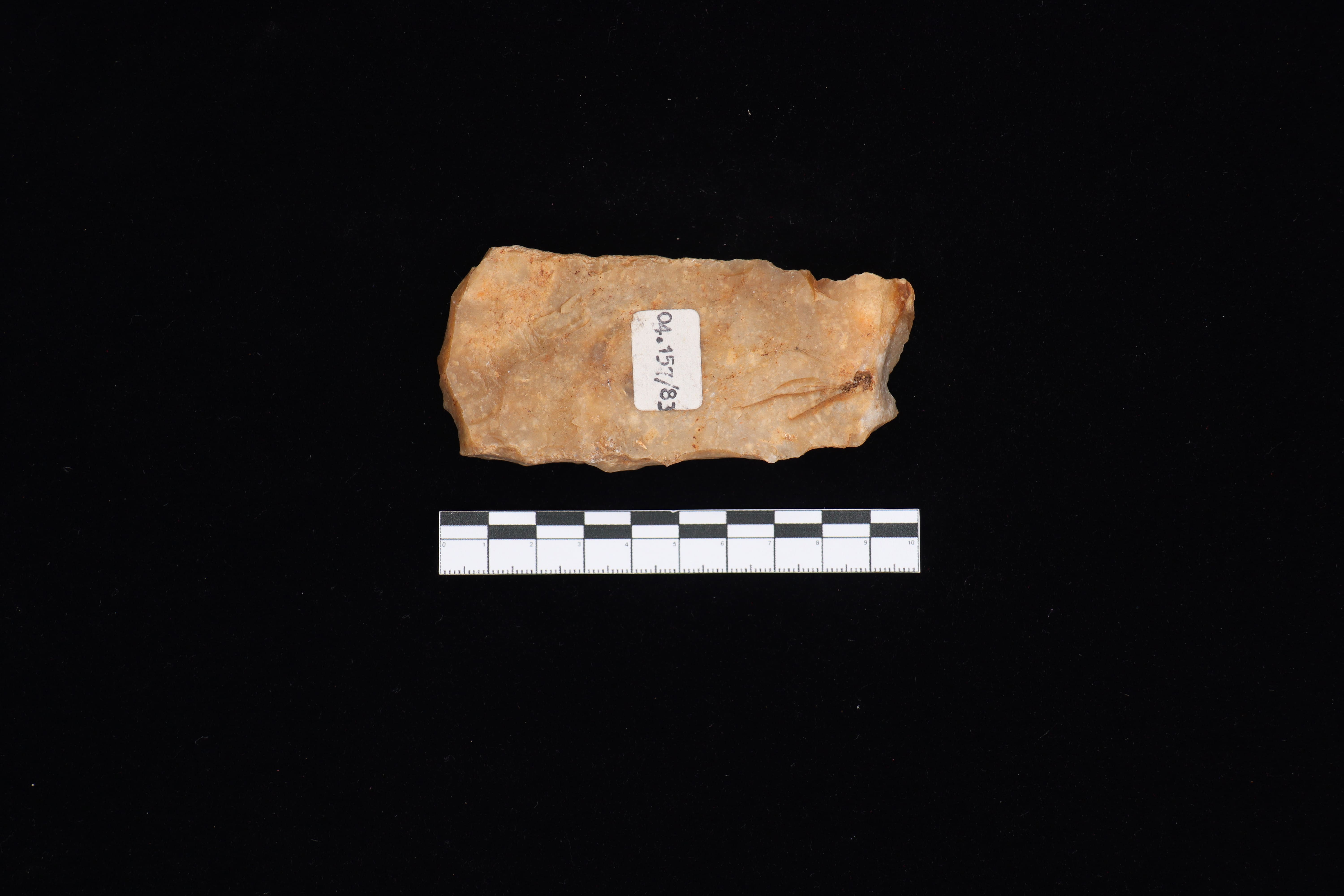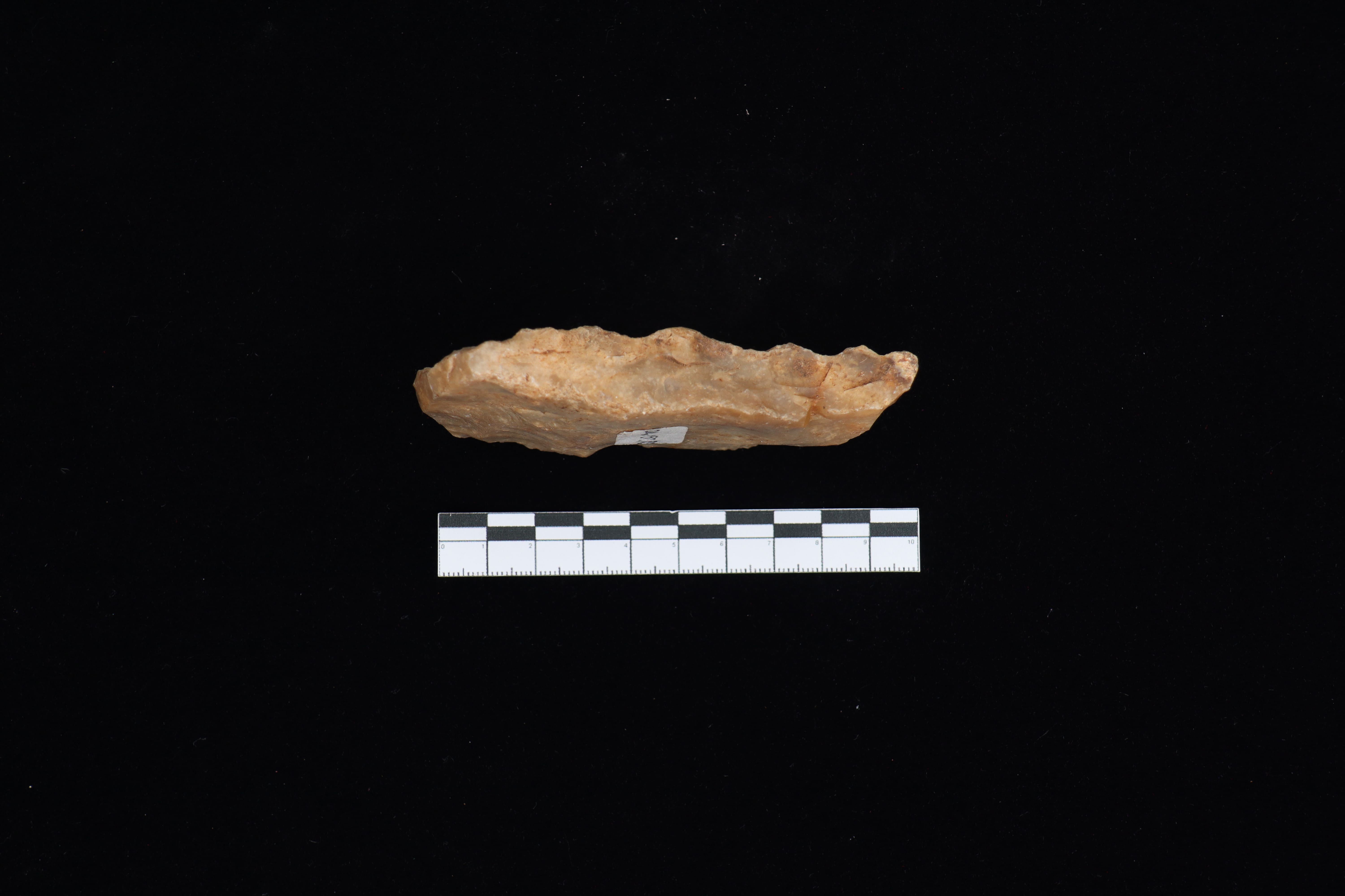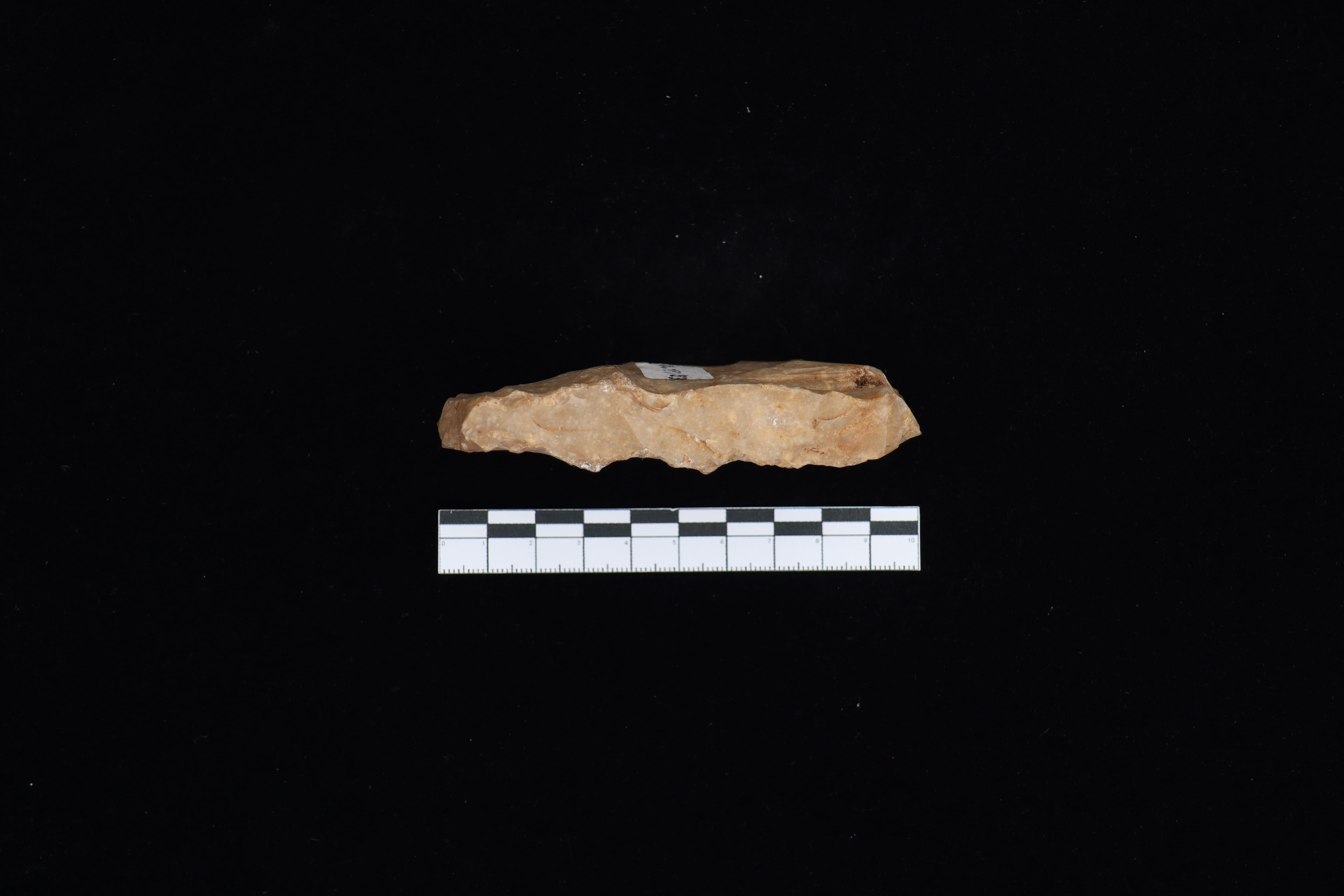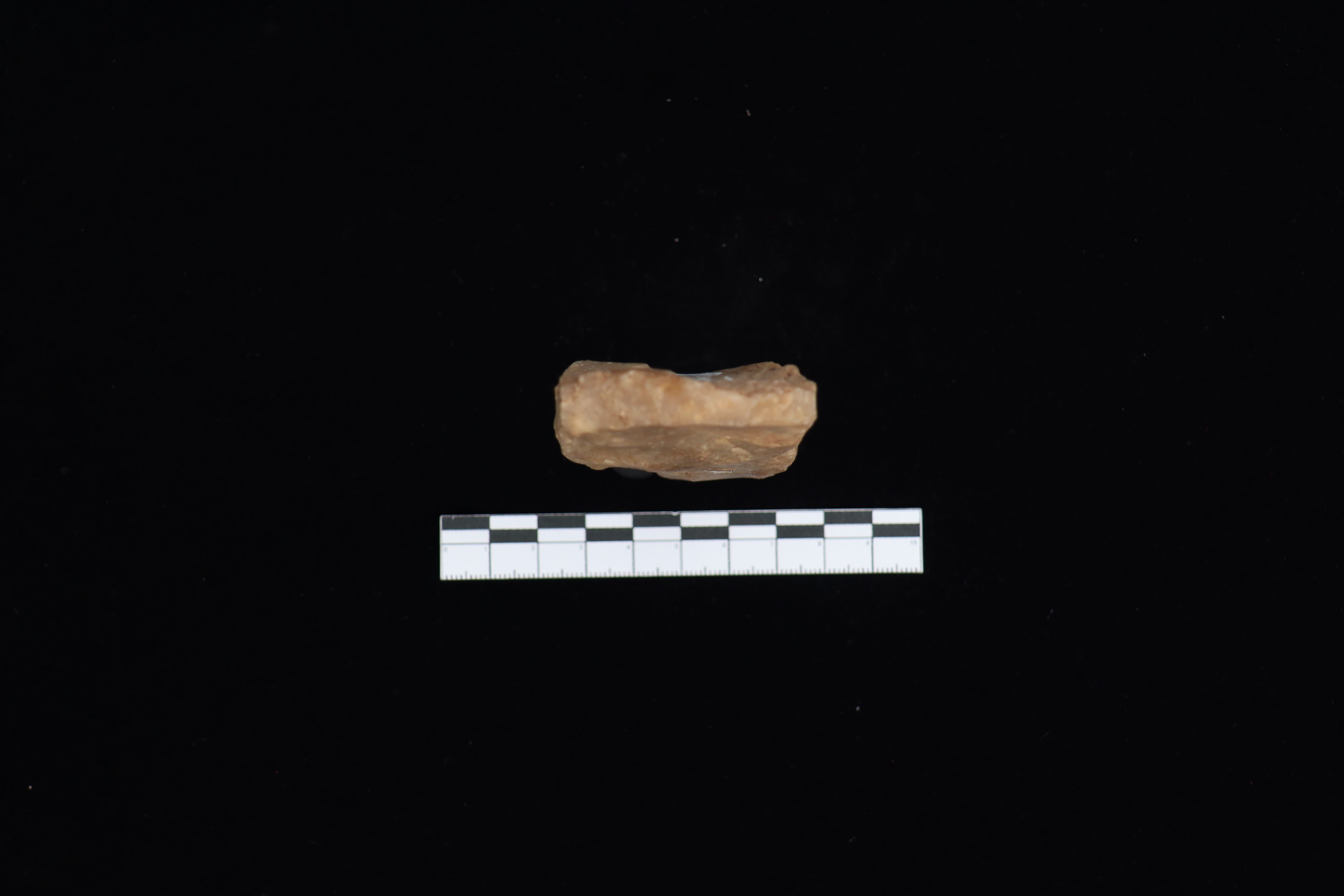 Koleksi ini merupakan Beliung persegi dengan kondisi koleksi bagian depan terdapat label kertas nomorinventaris lama serta adanya sedikit bulatan korteks yang mendekati bagian atas, bagian belakang terdapat nomor berwarna putih serta koleksi ini menggunakan teknik pemangkasan Monofasial dan dalam pengerjaannya tidak dihaluskan. Lalu bagian Proxinal/atas cenderung keabuan , bagian Distal/bawah tidak terdapa retusan dan cenderung tidak runcing.