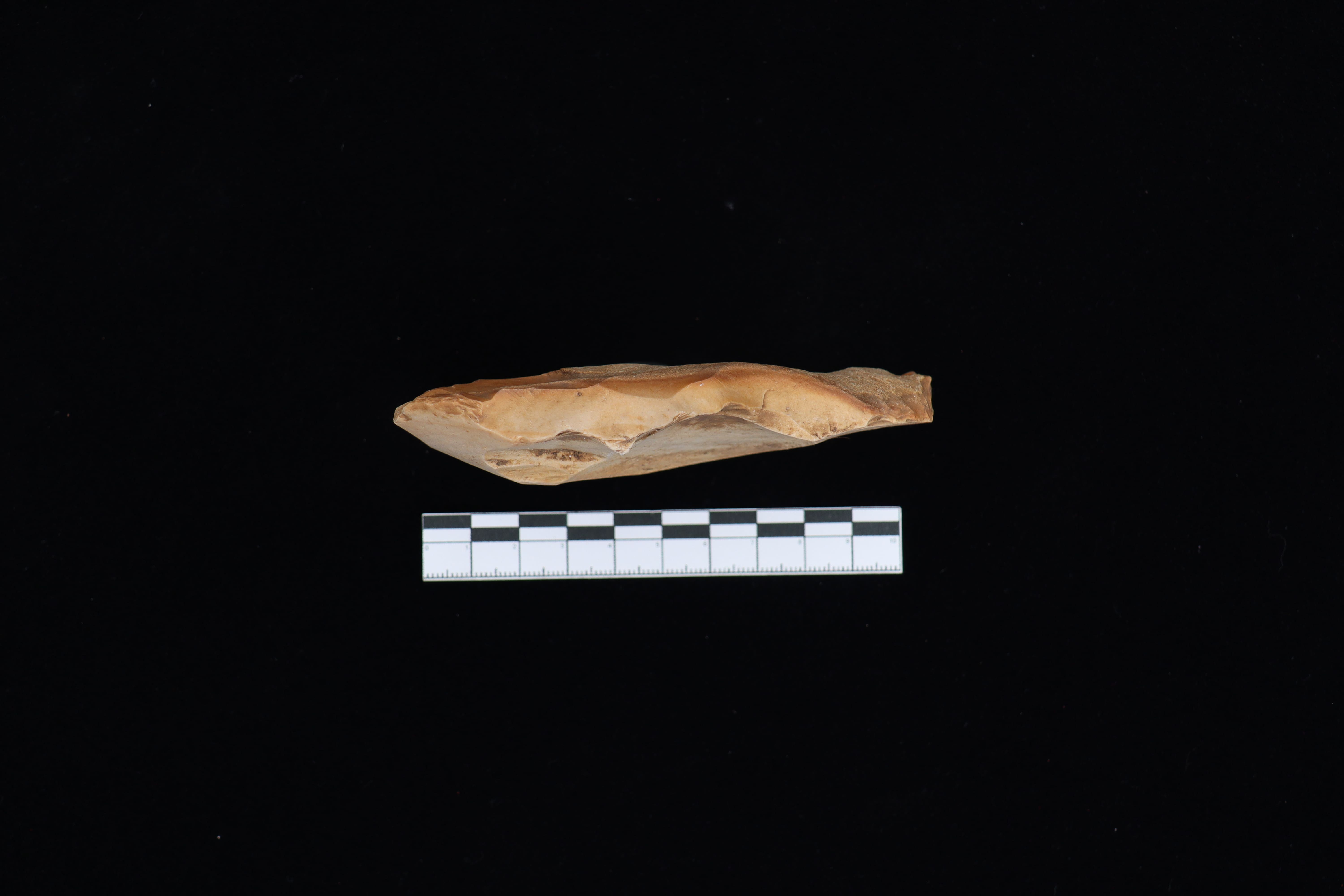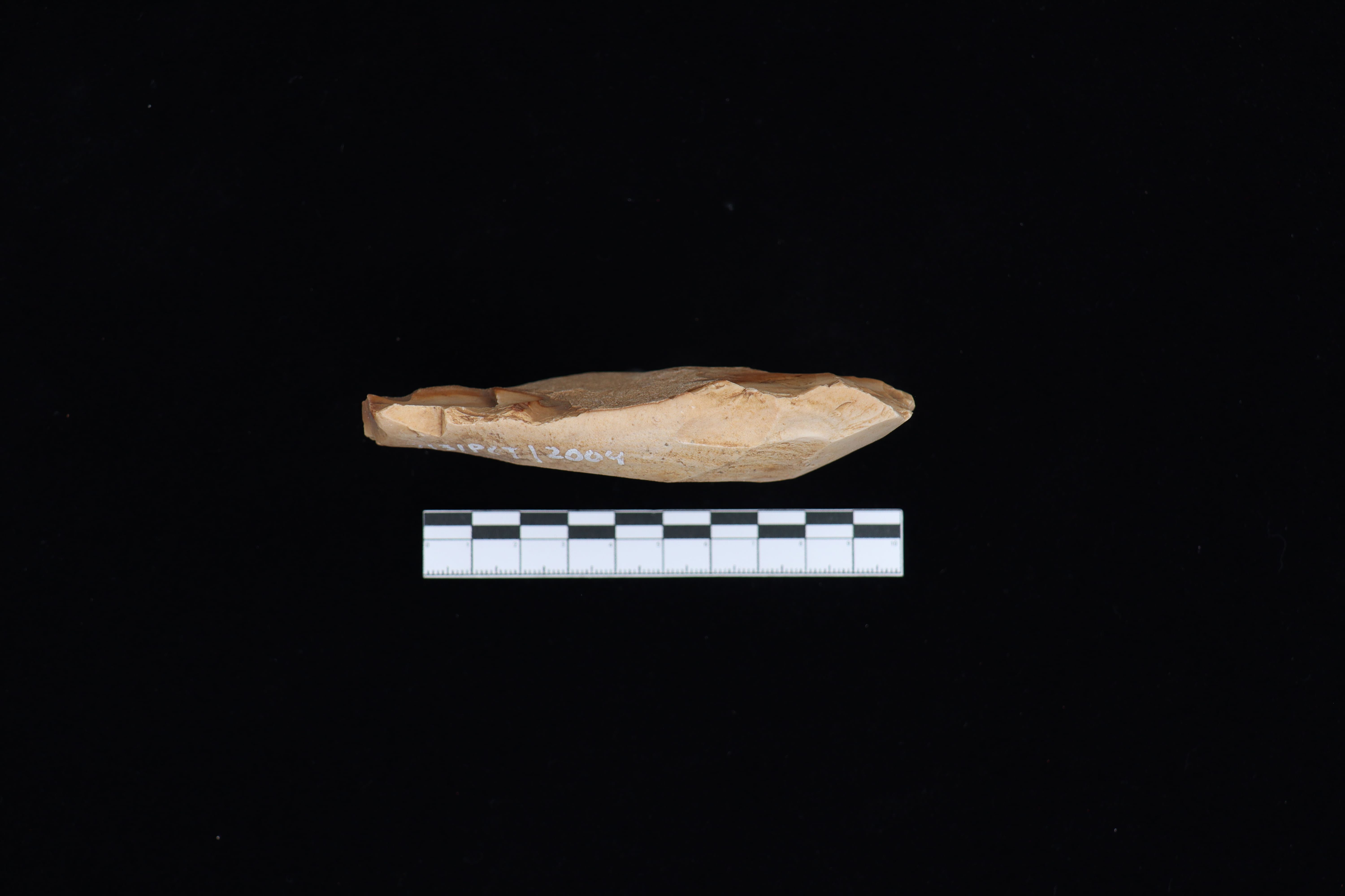 Koleksi ini merupakan Beliung Persegi dengan kondisi koleksi bagian depan terdapat nomor inventaris lama warna putih serta adanya cekungan, bagian belakang terdapat korteks dengan indikasi keberadaan 30% dengan warna coklat tua serta koleksi ini menggunakan teknik pemangkasan Monofasial dan dalam pengerjaannya tidak dihaluskan. Lalu bagian Proximal/atas cenderung coklat tua, bagian Distal/bawah terdapat sedikit retusan yang menandakan alat ini pernah dipakai.