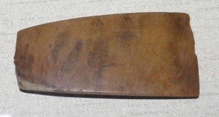 Beliung persegi ini dibuat dari batuan Kalsedon warna coklat kekuningan. Bentuk berpenampang lintang persegi, bagian atasnya melengkung cembung, sedangkan bagian bawahnya cekung. Sisi tajamnya lebih besar dari pangkalnya. Terdapat garis-garis bekas asahan yang memperlihatkan bahwa cara mengasahnya membujur. Pada bagian tajaman belum ada tanda-tanda rusak bekas dipakai. Hal ini menunjukan bahwa benda semacam ini memang tidak digunakan untuk keperluan pertanian atau kegiatan lainnya, tetapi hanya menjadi barang tukaran atau ajimat saja.