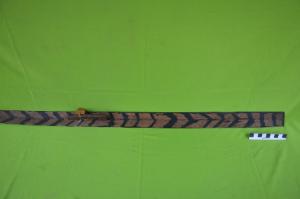 Beliung Persegi ini terbuat dari bahan batu Kalsedon, warna coklat susu. Bentuk bagian pangkal kecil dan melebar bagian ujung (bagian penajam), Bagian punggung melengkung dan pada bagian bawah cekung. Pada bagian penajam aus terdapat bekas pemakaian. Pengerjaannya sudah diupam halus dan mengkilat. Beliung Persegi ini pada masa Neolitik.