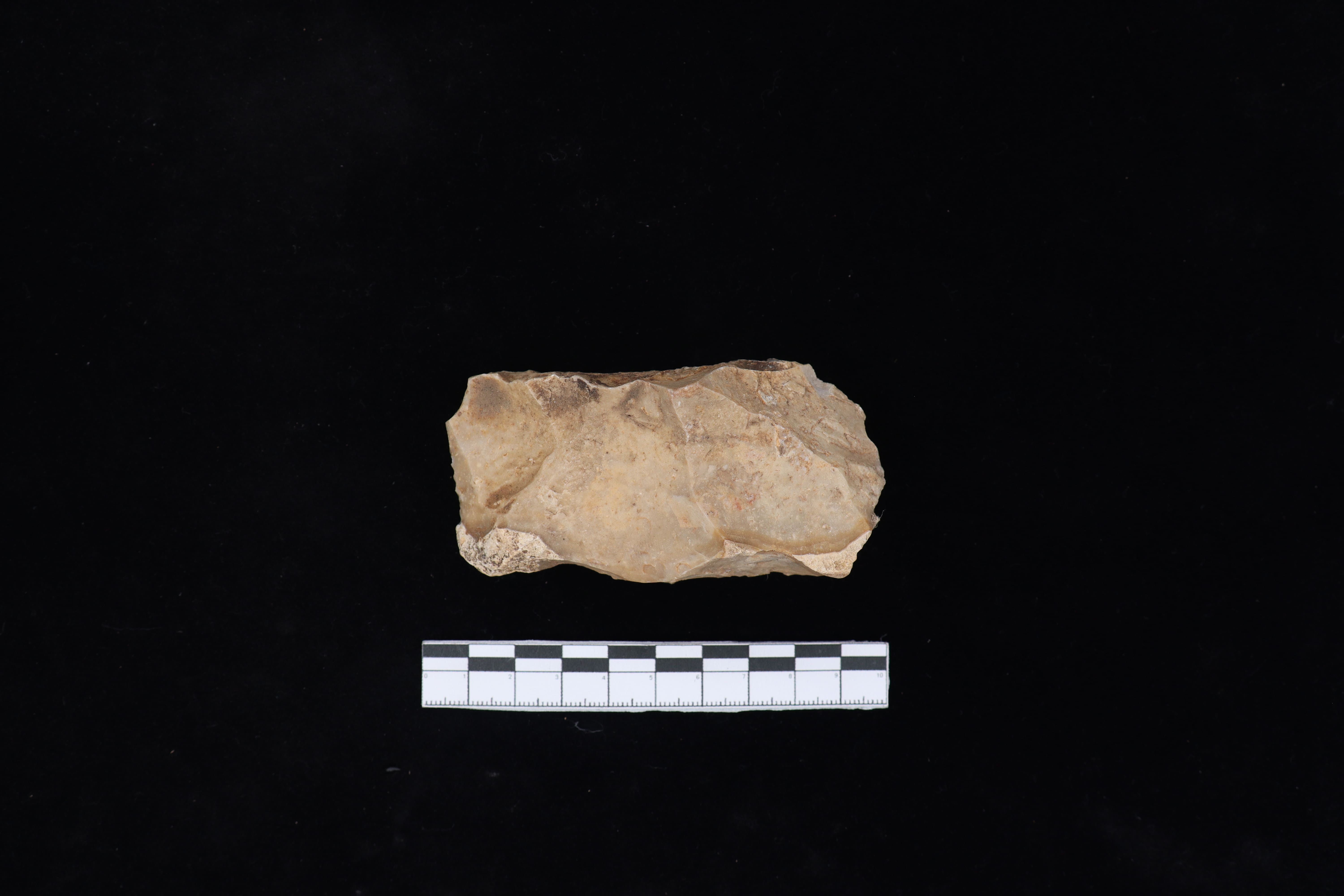 Beliung yang diperoleh dari hasil survey dengan kondisi fisik yang baik, memiliki warna coklat keabuan. Bagian sisi kanan dan sisi kiri cenderung tidak lurus dan terdapat cekungan. Bagian pangkal berbentuk lurus dan bagian tajaman berbentuk tumpul. Bidang proximal dan distal cenderung tidak beraturan, terdapat korteks dengan presentase 4%.