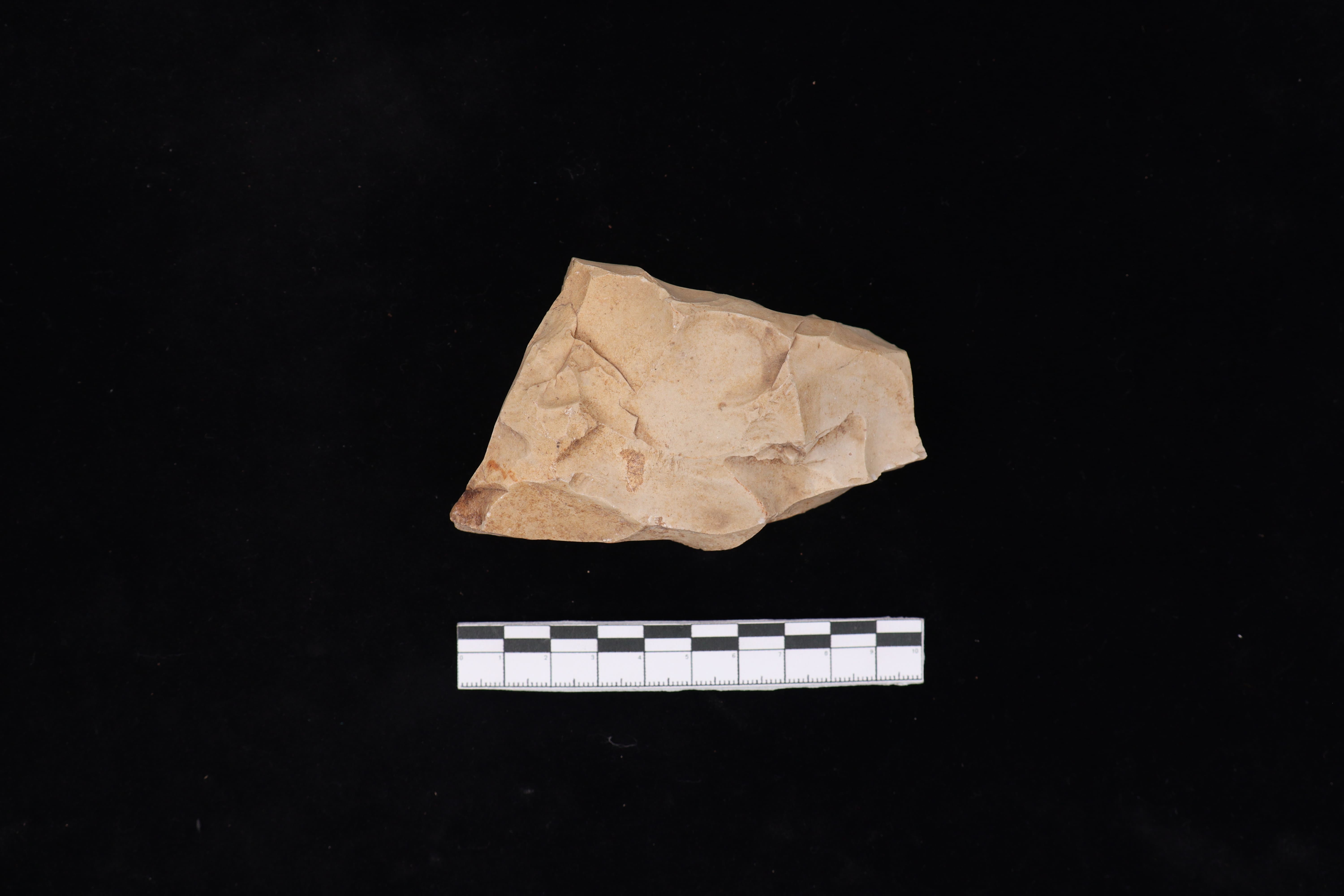 Beliung yang diperoleh dari hasil survey dengan kondisi fisik yang baik, memiliki warna coklat keabuan. Bagian sisi kanan berbentuk datar, bagian sisi kiri berbentuk tidak beraturan (agak cembung), bagian pangkal berbentuk datar dam bagian tajaman berbentuk rata. Bidang proximal dan distal berbentuk tidak beraturan terdapat cekungan dan lubang. Dalam pengerjaan tidak dihaluskan dan terdapat bekas patahan pada bidang tajaman.