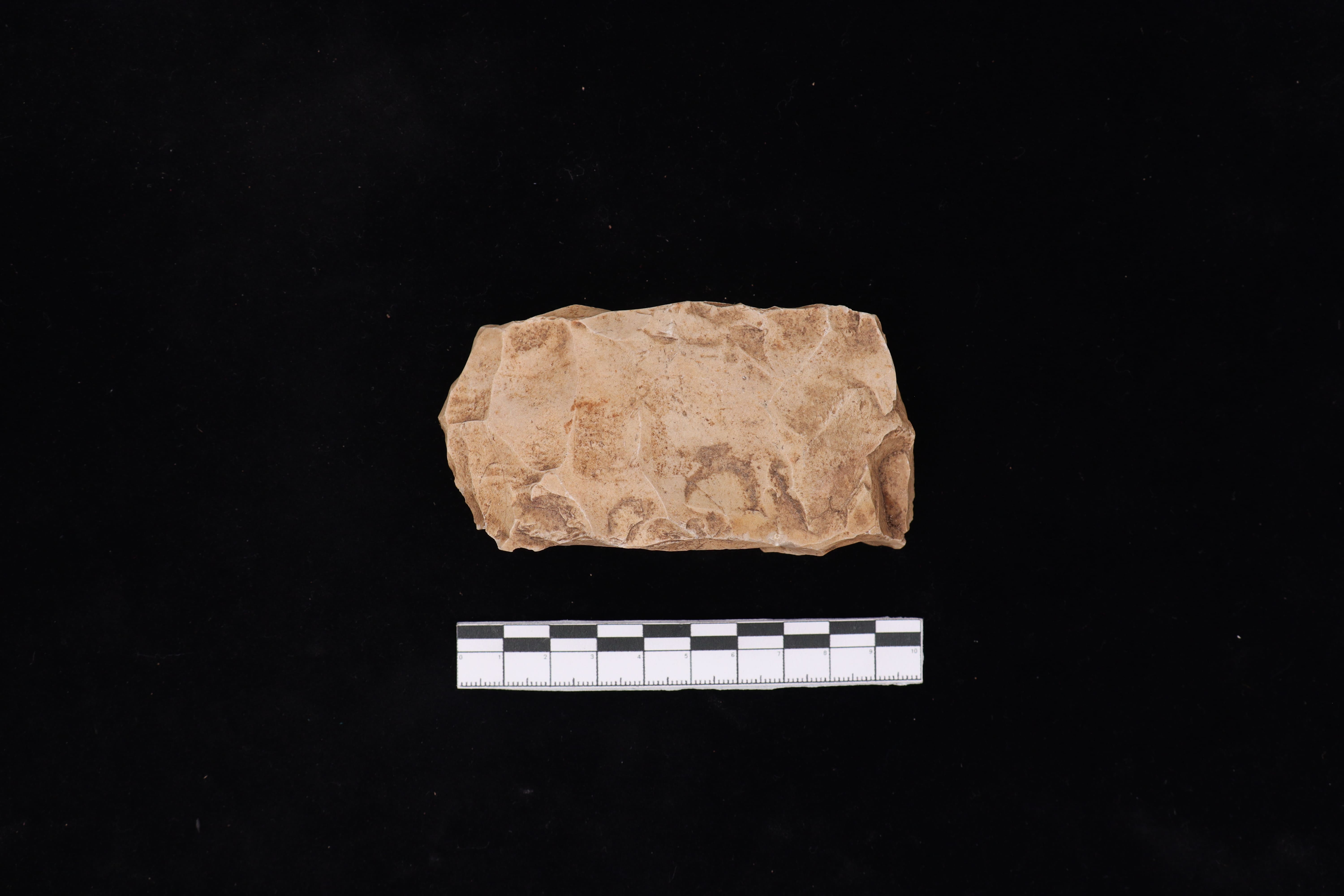 Beliung yang diperoleh dari hasil survey dengan kondisi fisik yang baik, memiliki warna coklat muda. Bagian sisi kanan dan sisi kiri berbentuk lurus, bagian pangkal dan tajaman berbentuk tumpul. Bidang proximal dan distal berbentuk datar dengan bagian tepi terdapat cekungan.