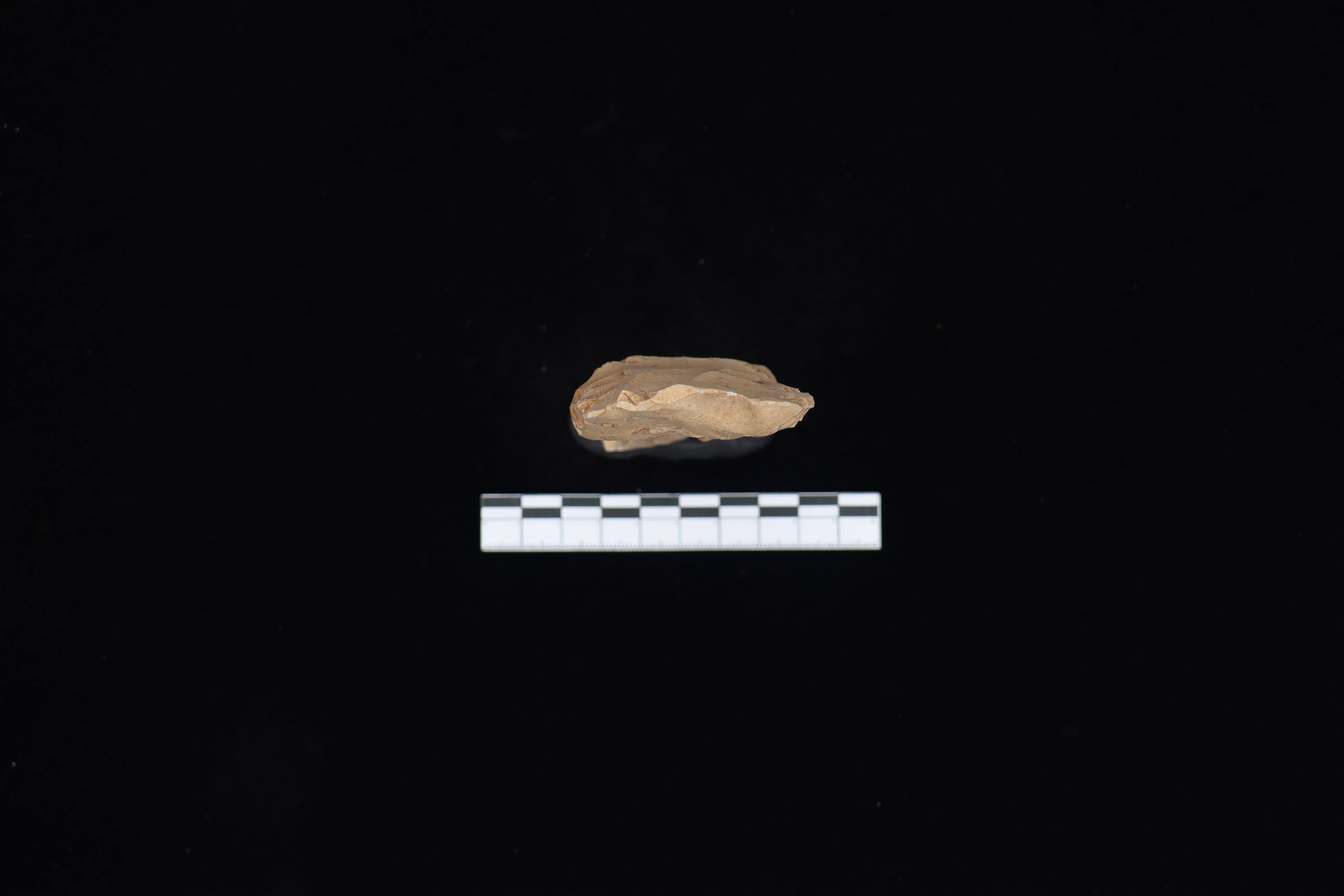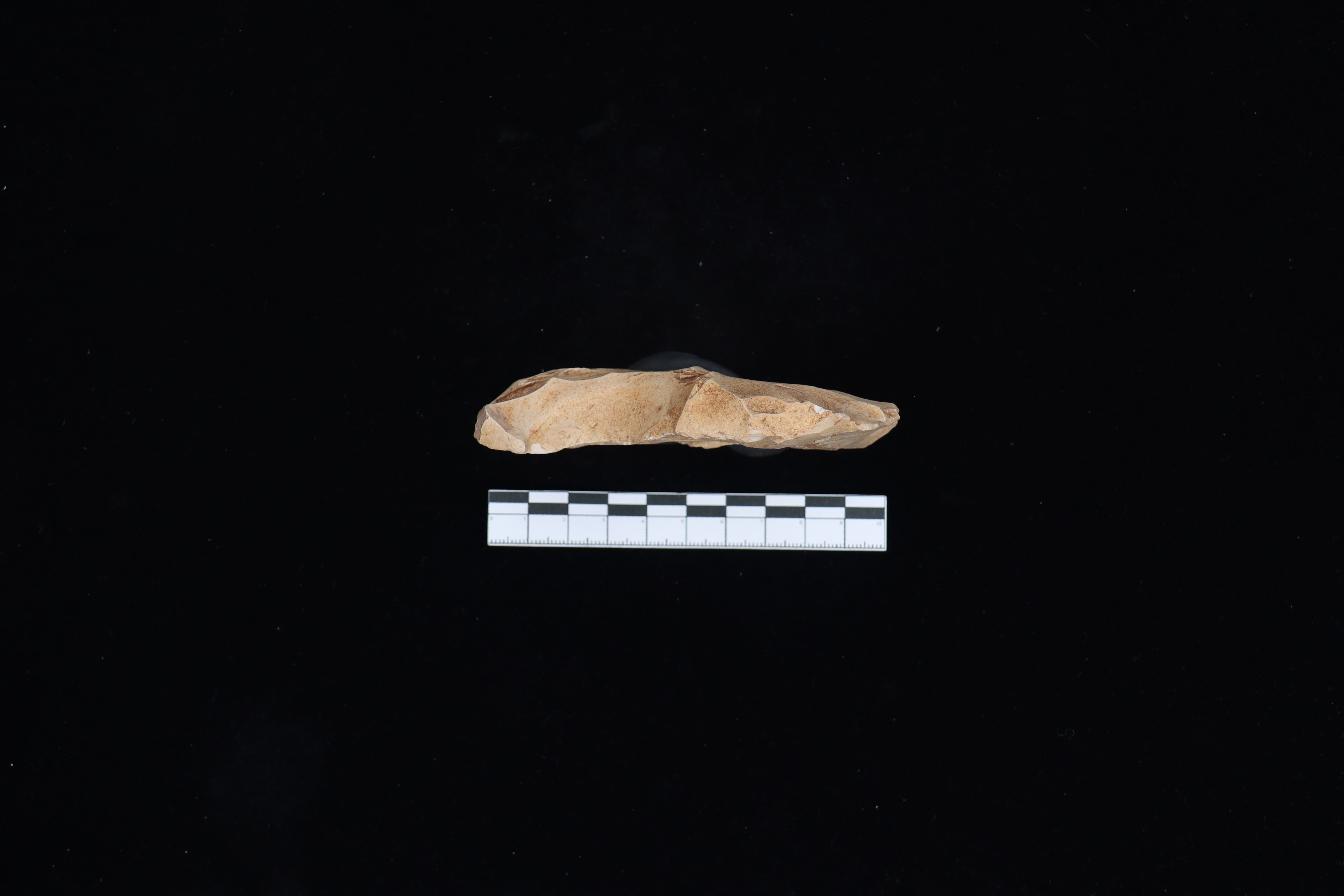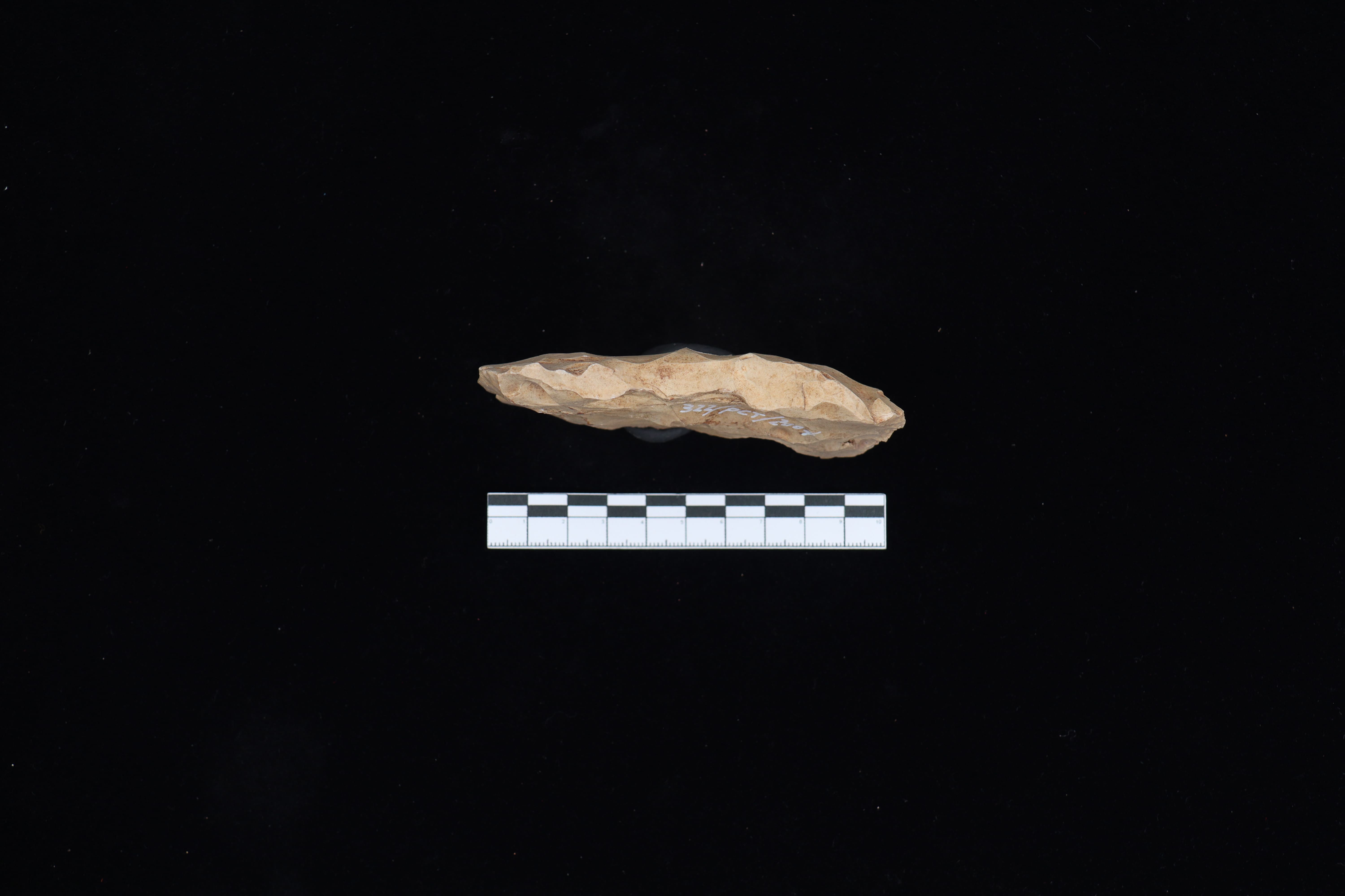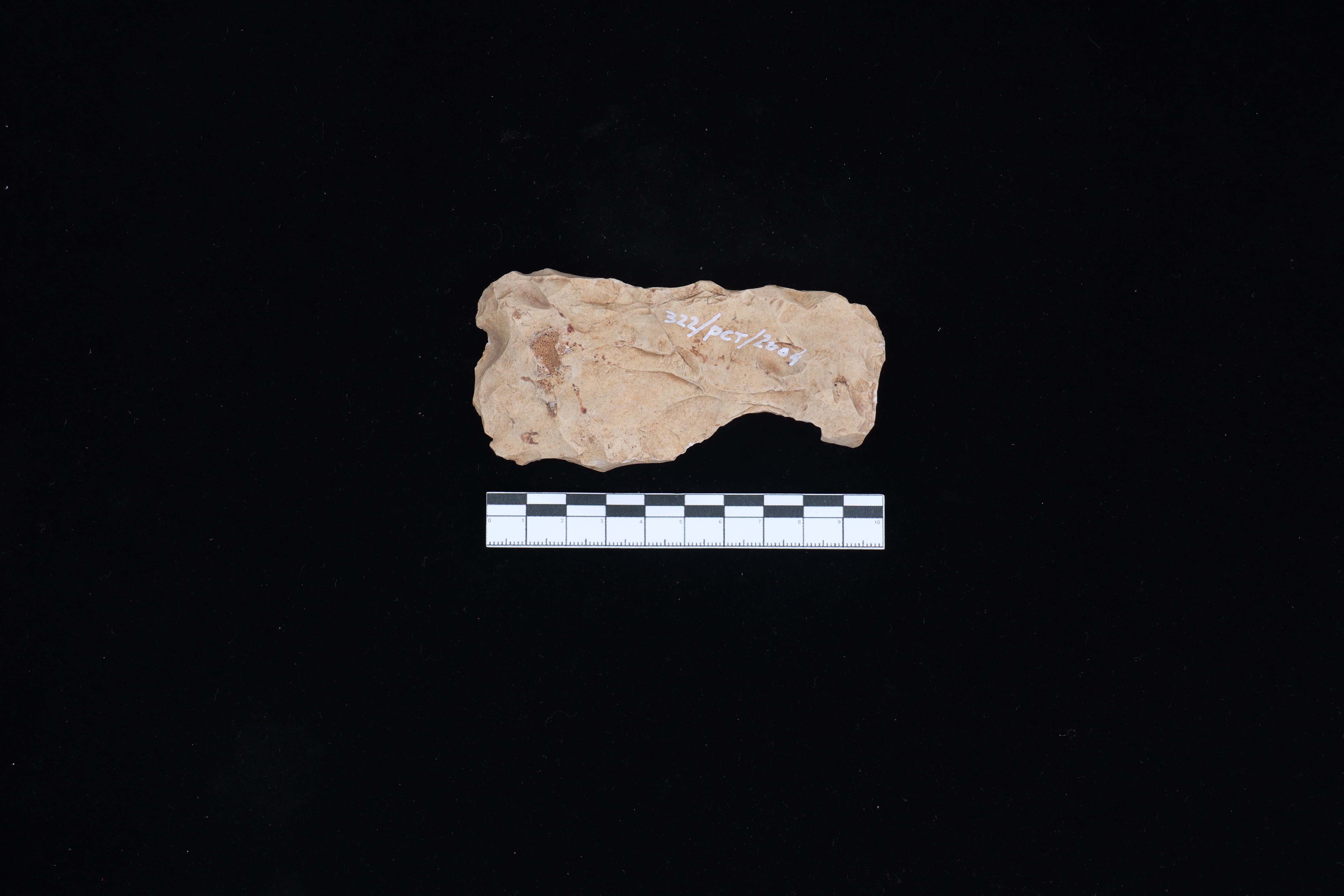 Beliung didapatkan melalui hibah dari BPK XI dengan kondisi tidak utuh dimana terdapat sisi yang patah melengkung didekat pangkalan. Beliung ini berwarna abu muda dengan sedikit bercak kecoklatan. Permukaan tajaman tidak rata terdapat sedikit lengkungan. Terdapat tekstur dan warna tanah yang berbeda sekitar 3% didekat sisi tajaman.