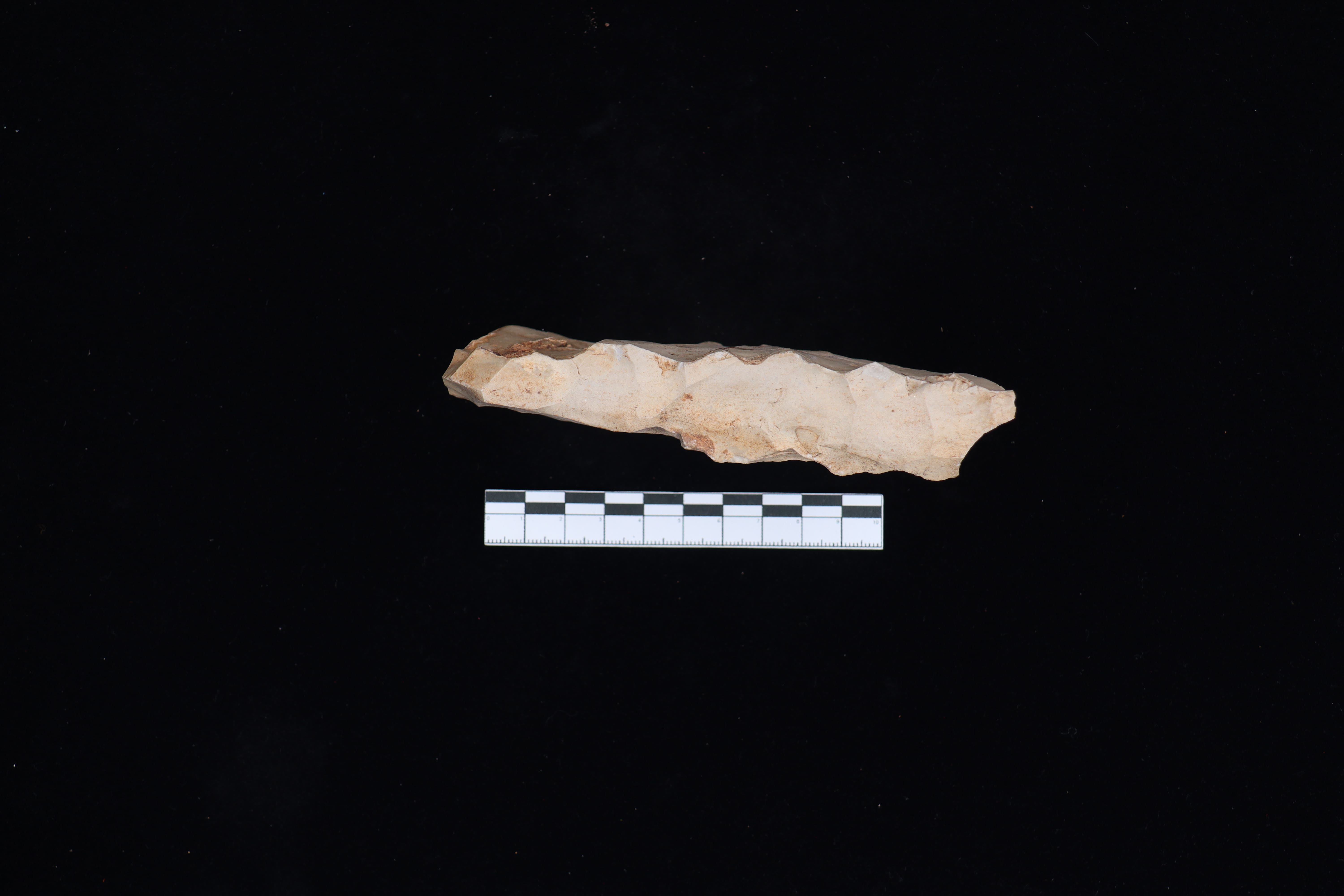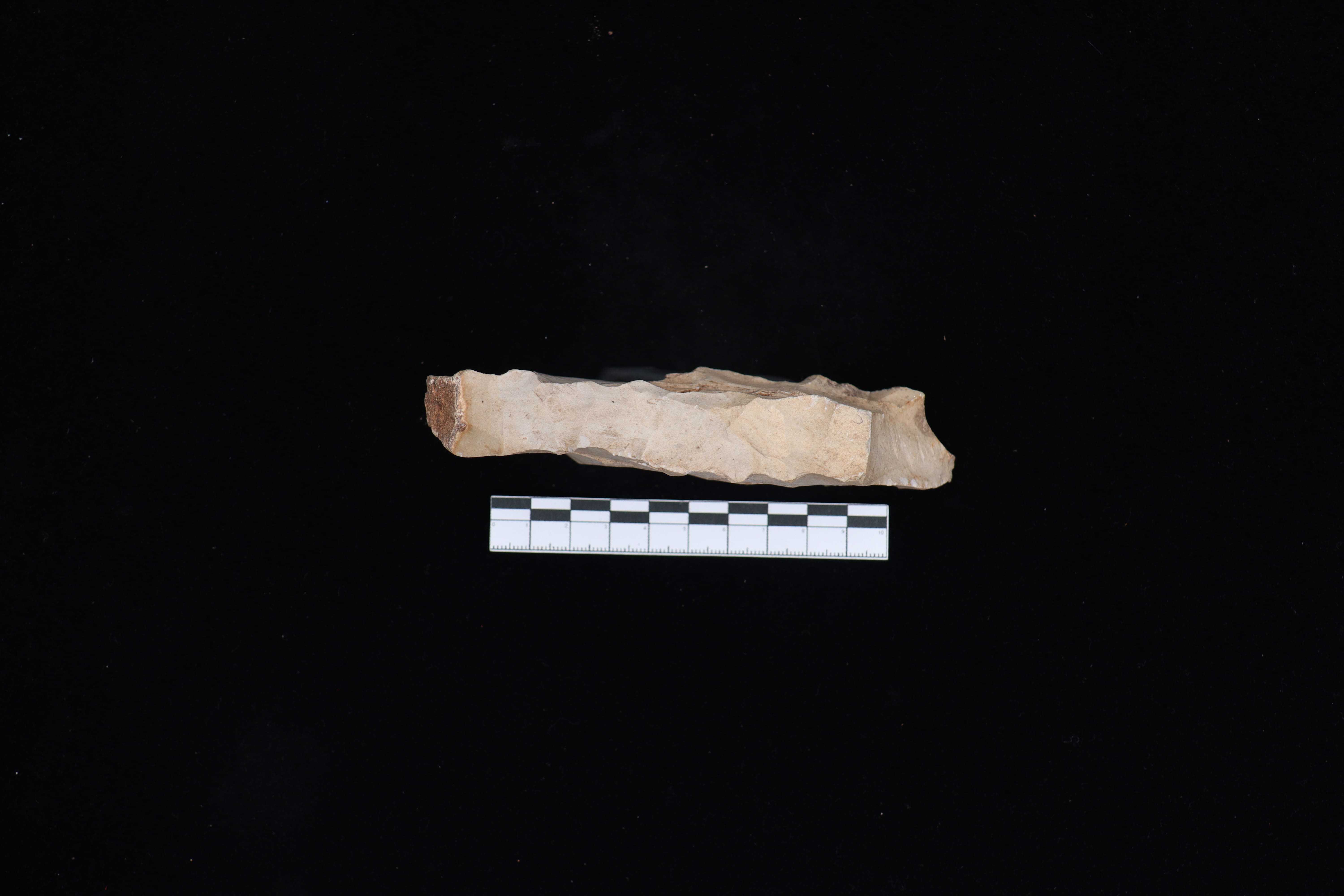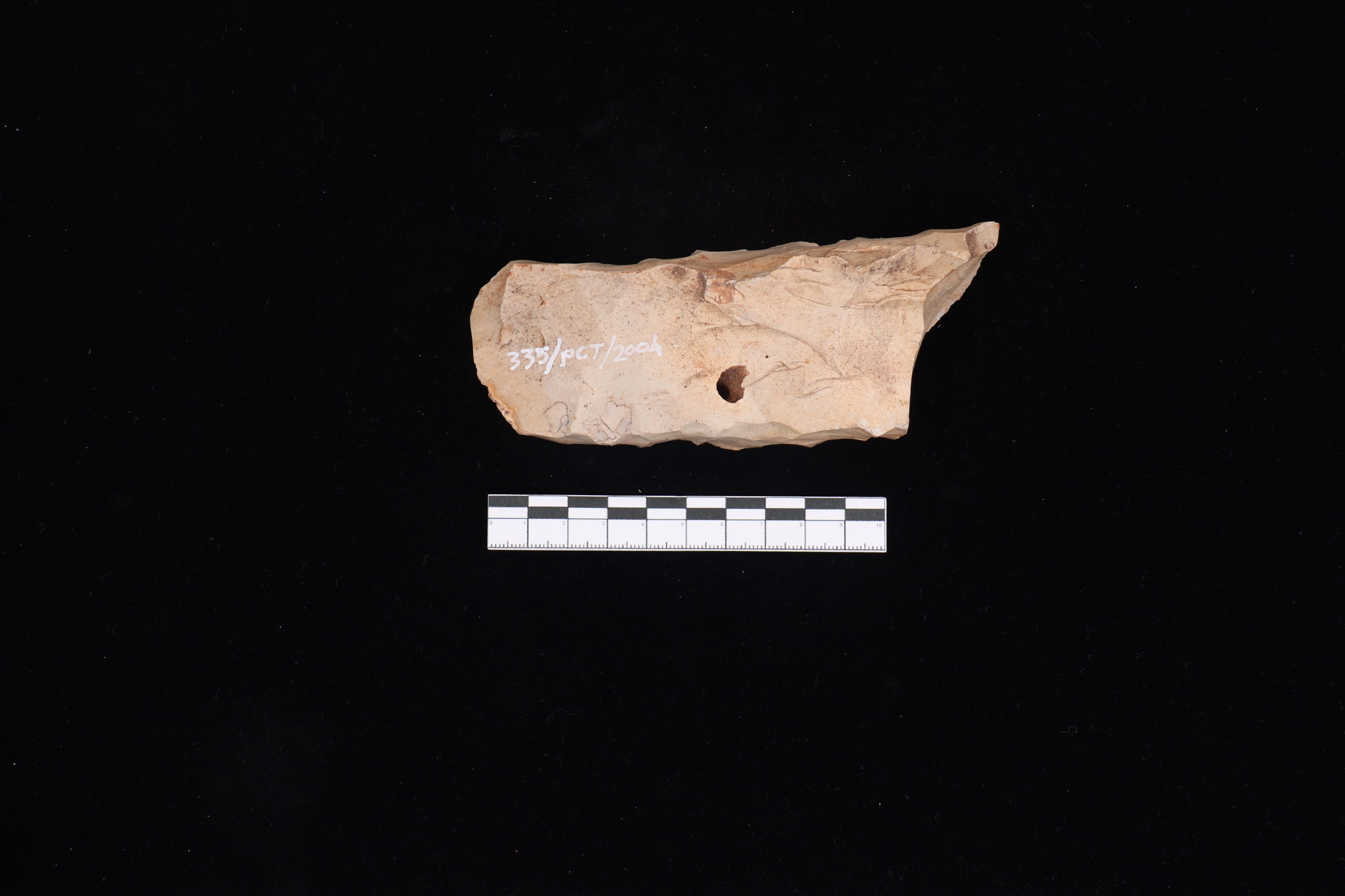 Beliung didapatkan melalui hibah dari BPK XI dengan kondisi tidak utuh dimana terdapat patah disalah satu sisi beliung. Beliung ini berwarna abu muda. Pada bagian sisi yang ada no. registrasi terdapat lubang sebesar biji kacang dengan kedalaman sekitar 1 cm. Terdapat korteks dibagian pangkal sebesar 10%. Belum adanya sisi tajaman dan tekstur beliung masih sedikit kasar.