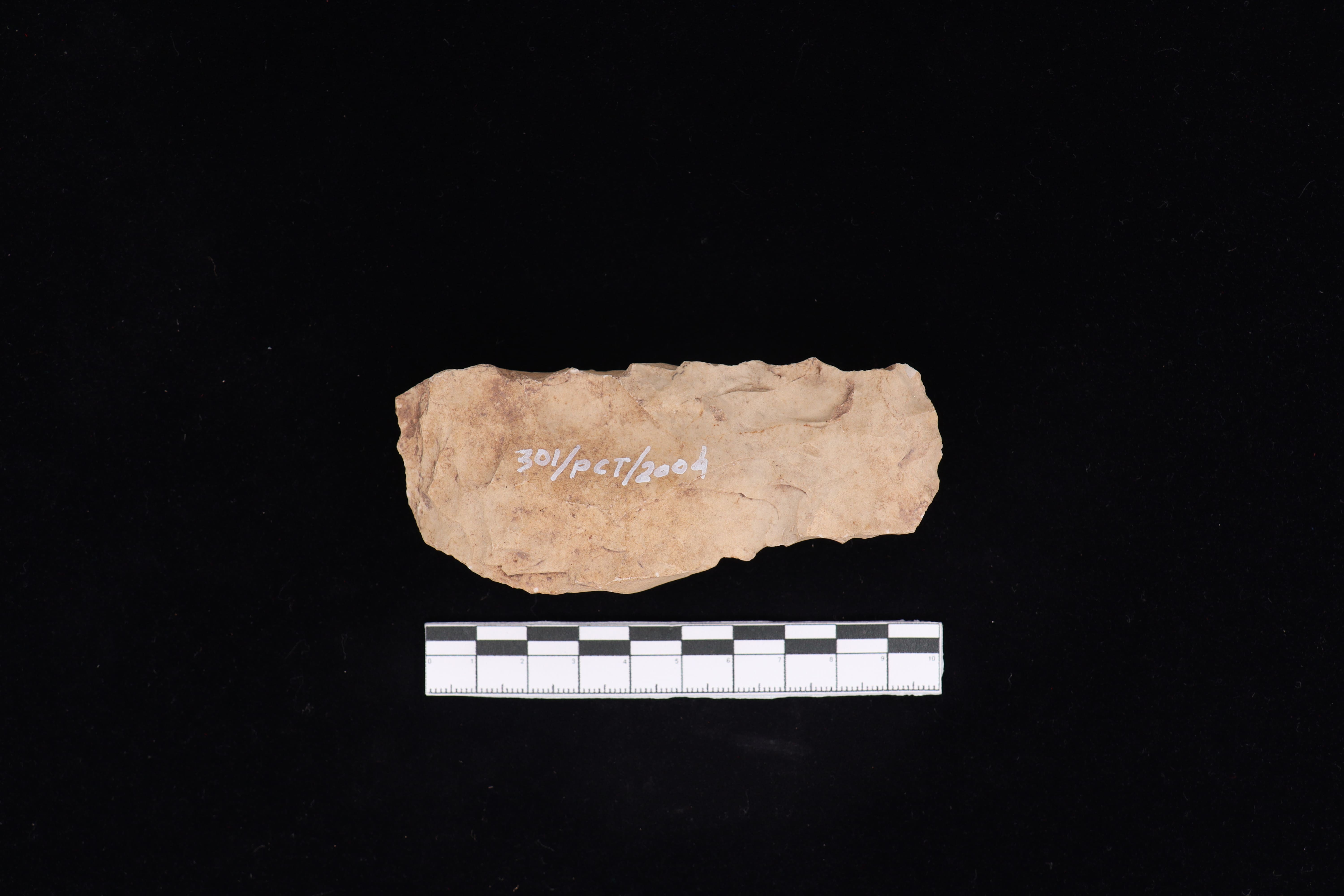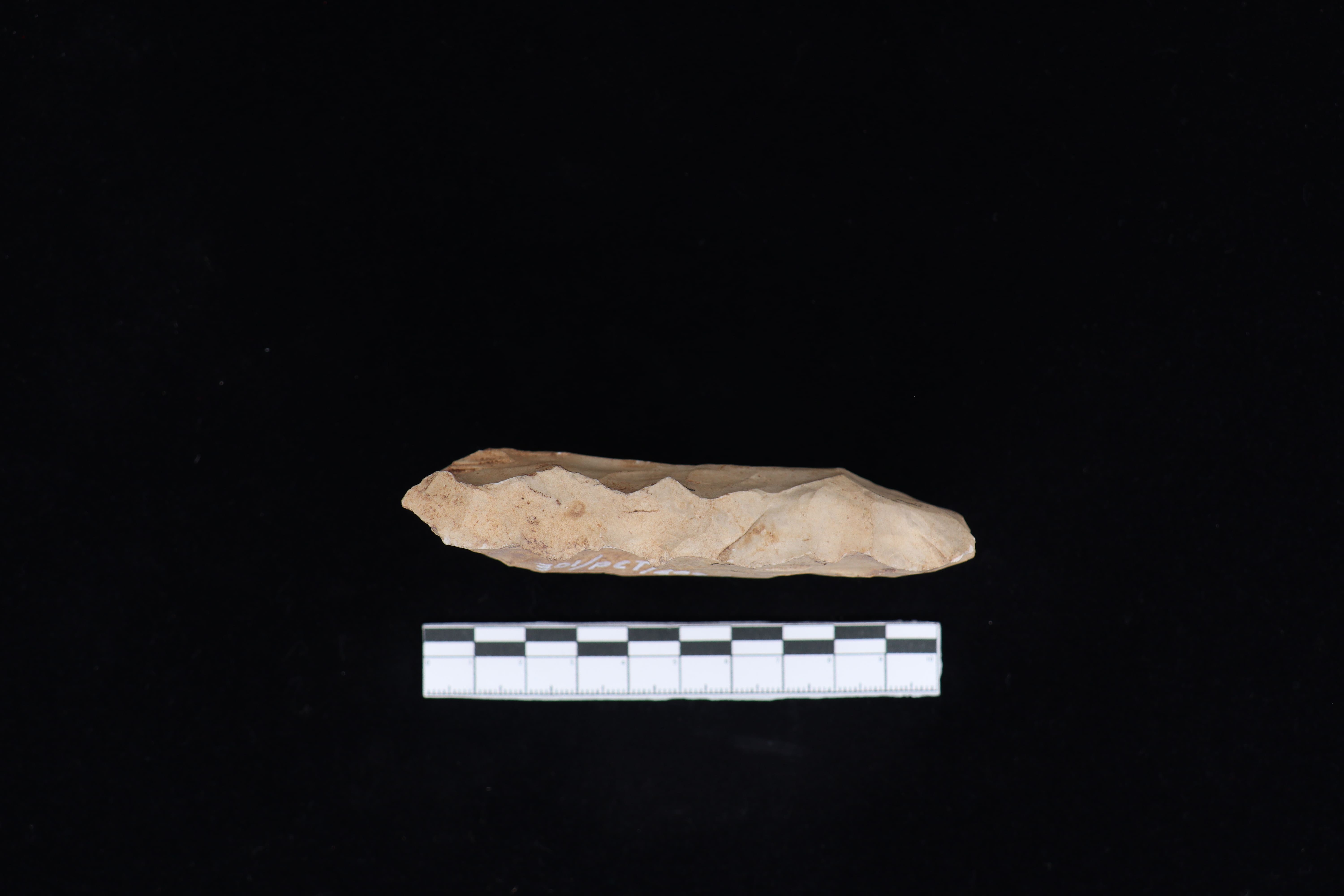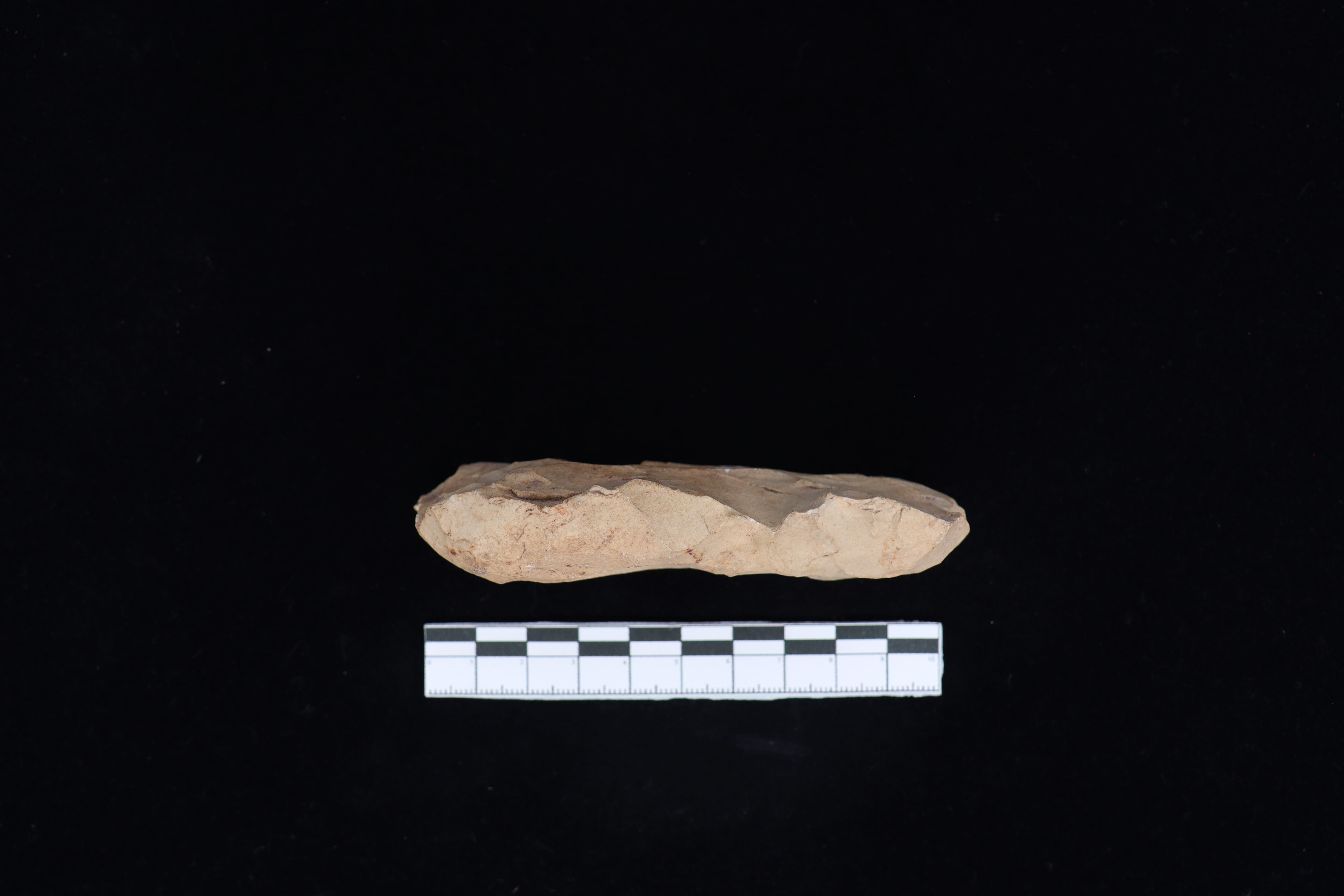Beliung didapatkan dari hibah BPK XI dengan kondisi utuh. Beliung memiliki warna dominan coklat muda dengan residu berupa tanah yang menempel di bagian depan dekat bagian tajaman. Beliung memiliki jejak pemakaian dengan adanya retus di bagian tajaman. Beliung belum terlihat adanya pengupaman.