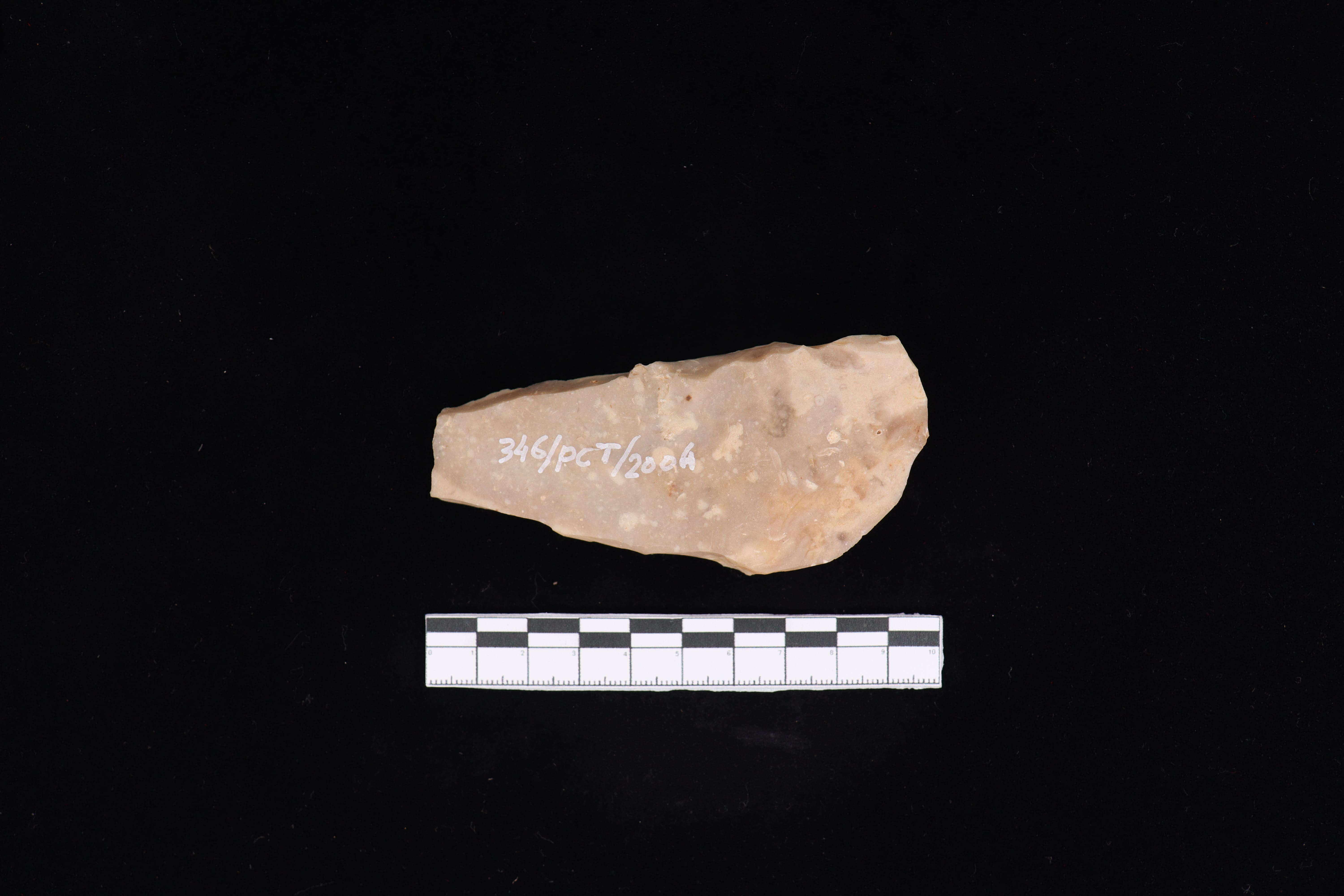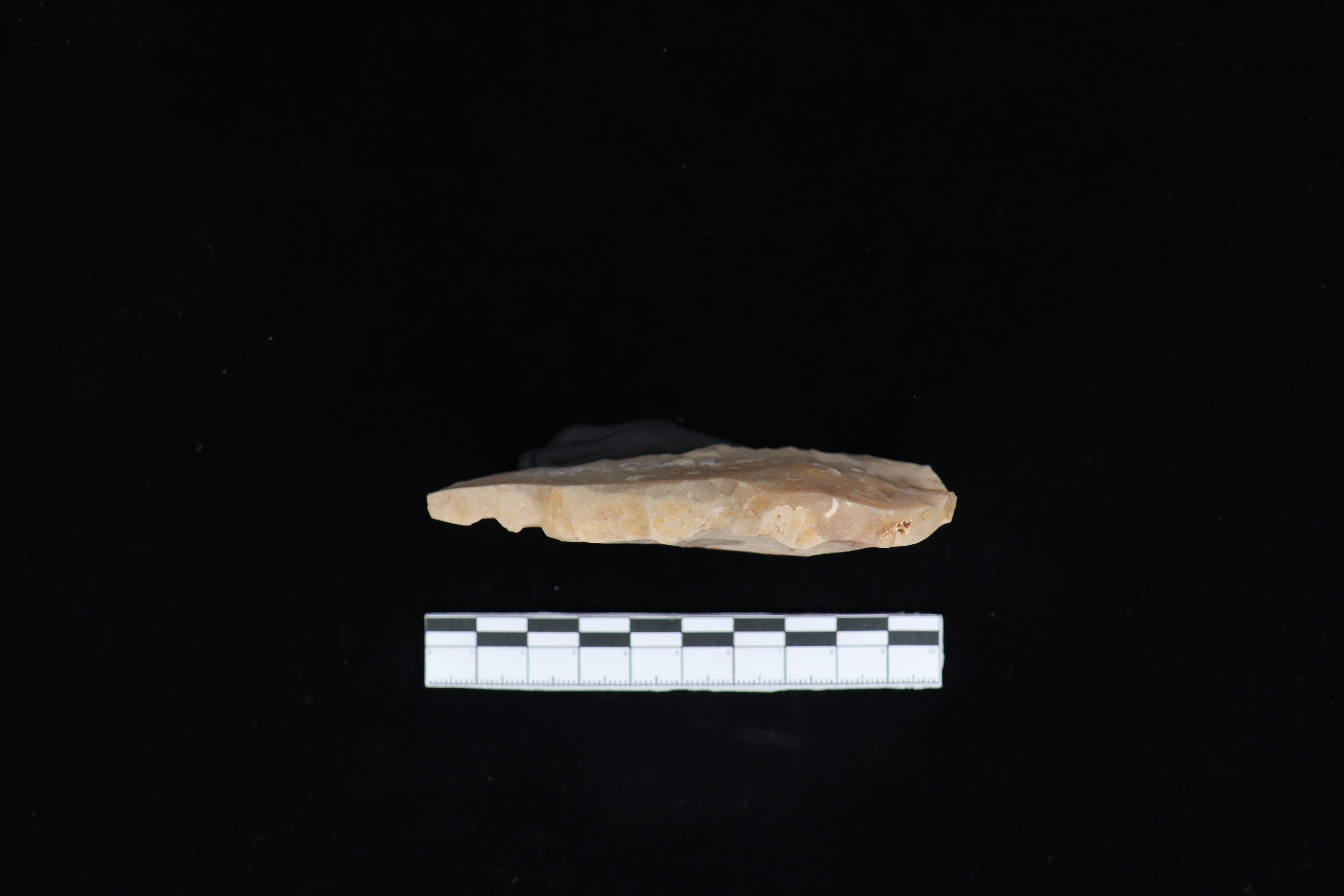 Beliung memiliki warna dominan coklat dengan bagian depan dan belakang terdapat warna abu-abu lebih tua. Pada bagian tajaman dan belakang terdapat semacam cekungan kecil. Pada beliung terdapat jejak pemakaian dengan adanya retus di bagian tajaman. Bagian gagang memiliki ukuran kurang lebih setengah dari bagian tajaman.