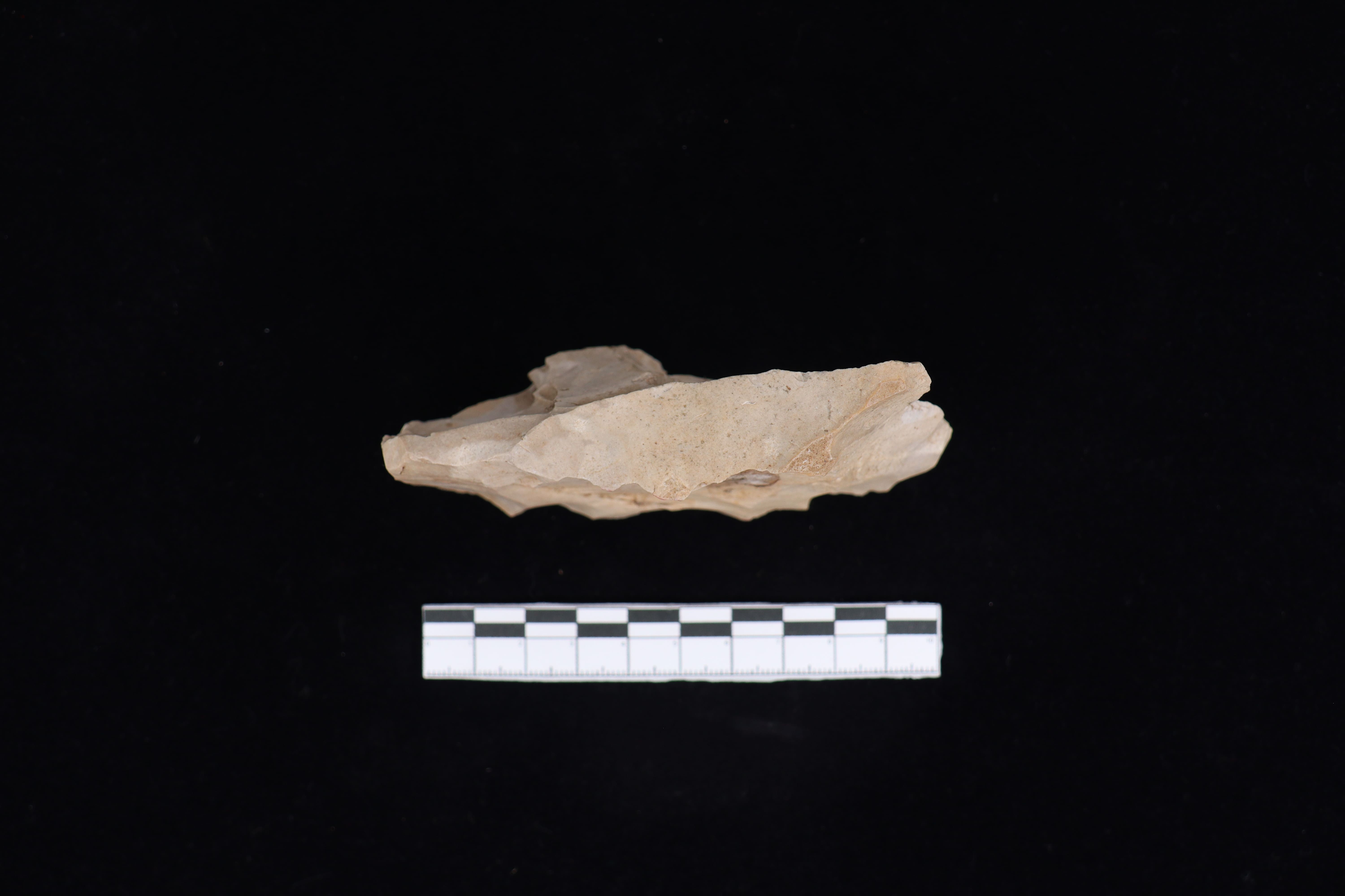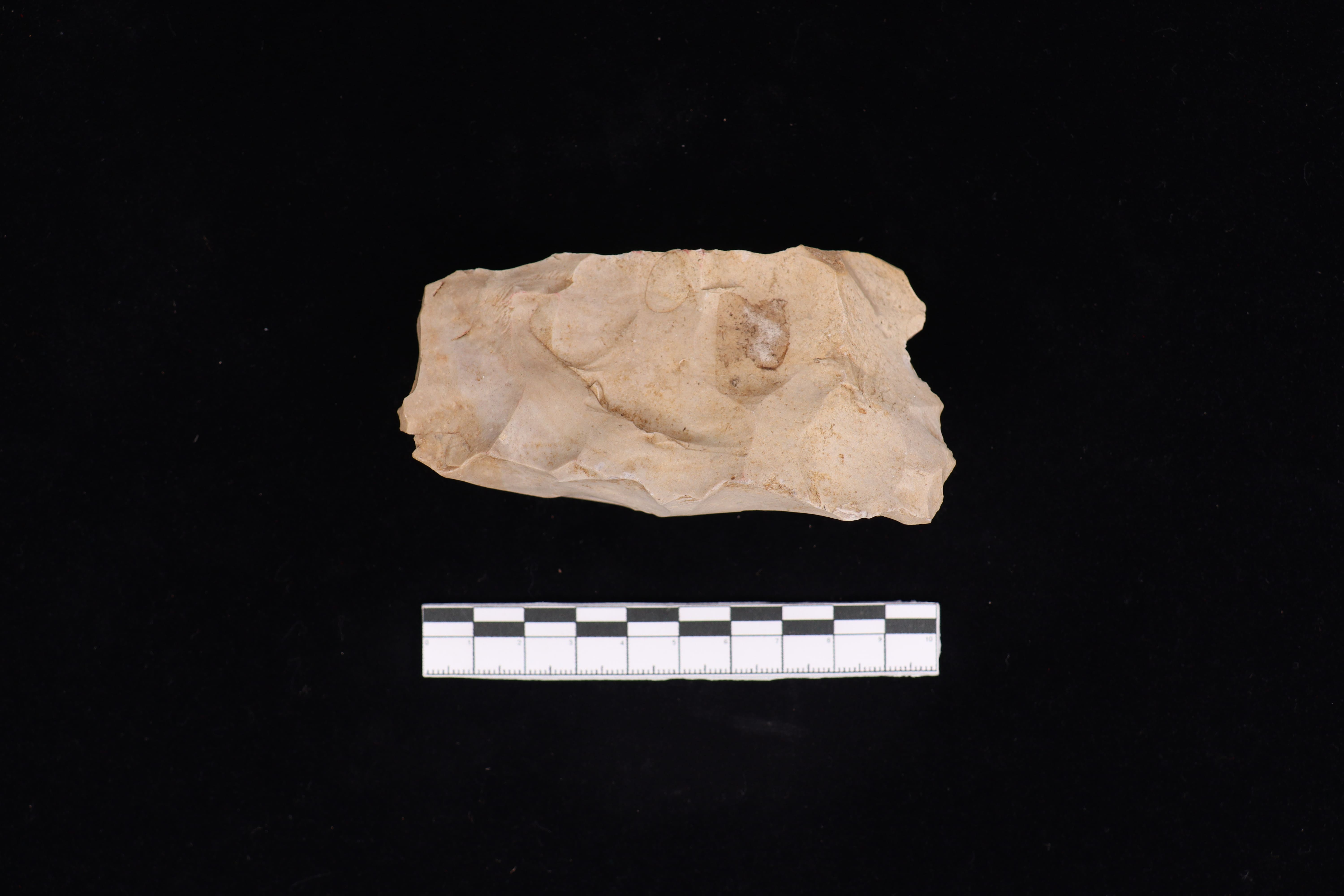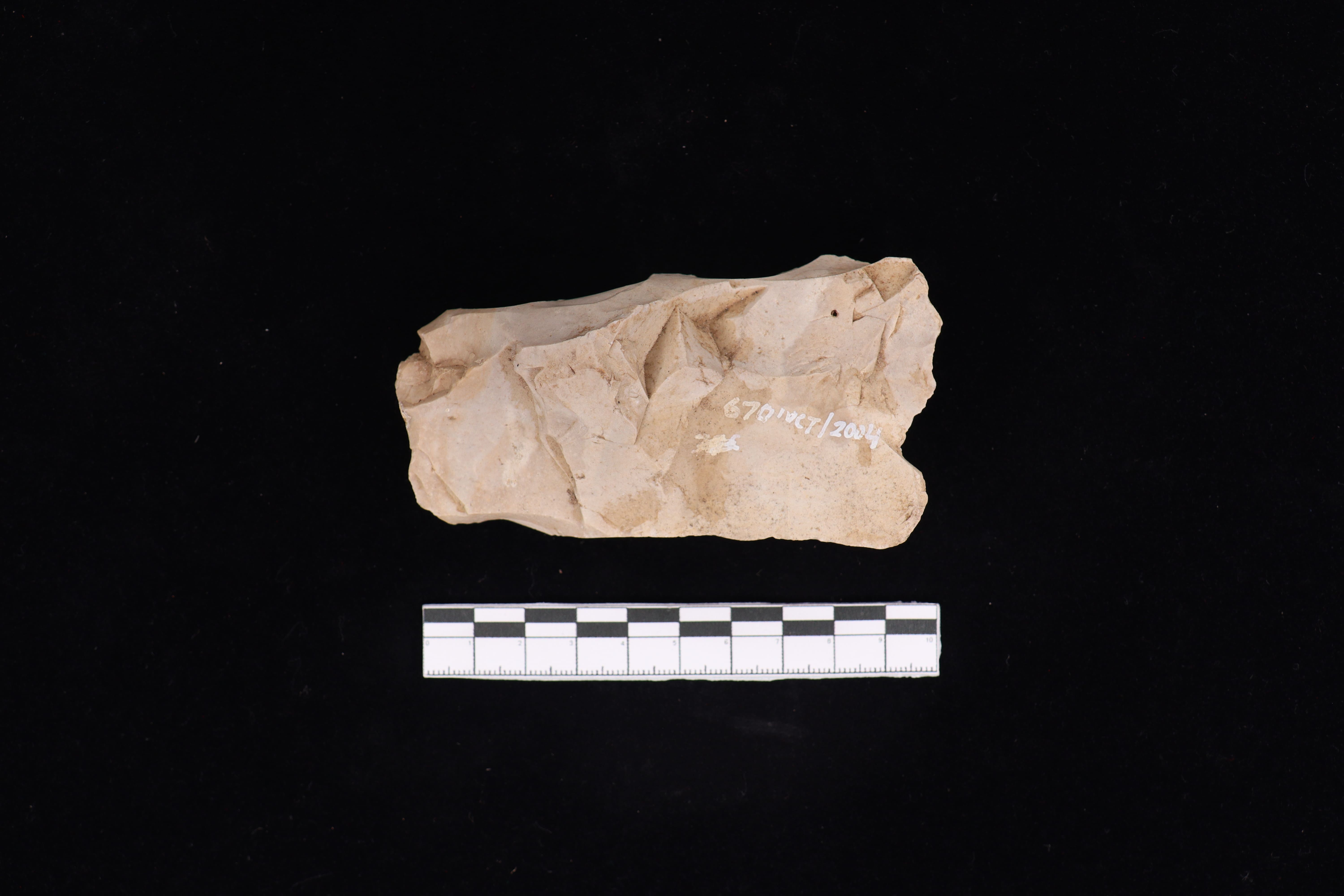 Koleksi ini merupakan Beliung Persegi dengan kondisi koleksi Bagian depan terdapat bayangan kotak bekas label kertas, Bagian Belakang terdapat nomor temuan warna putih, teknik pemangkasan koleksi ini monofasial dan dalam pengerjaannya tidak dihaluskan. Lalu Bagian Proximal/Atas cenderung rata dan Distal/Bawah terdapat retusan yang menandakan alat ini pernah dipakai serta bagian salah satu lateral cenderung rata.