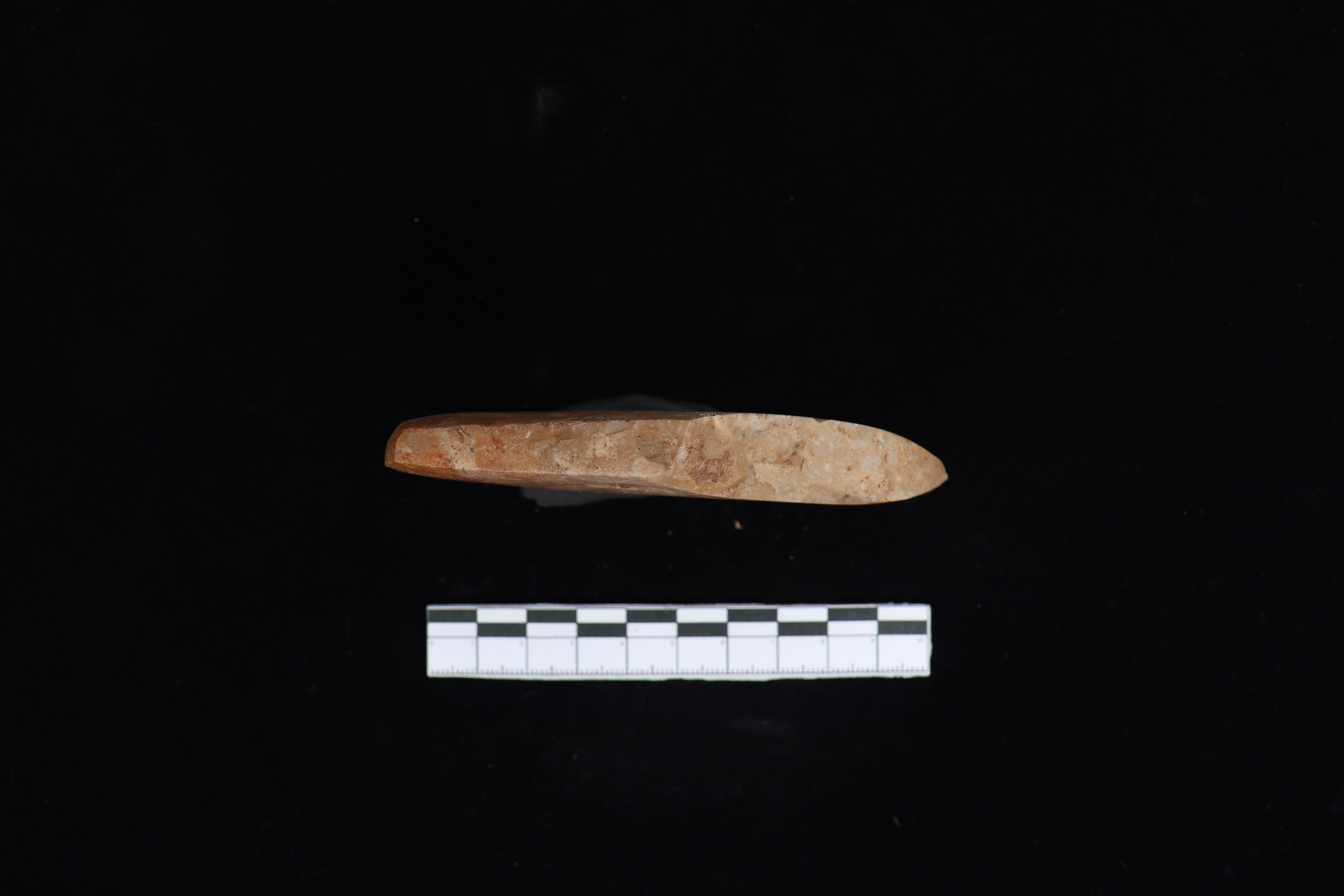 Beliung dengan kondisi fisik yang baik ini memiliki warna dominan coklat selain itu sudah mengalami proses pengupaman. Selain itu pada bagian punggung datar dan pangkal gagang datar. Pada bidang mata tajaman tidak lengkap hanya bagian kiri saja yang bisa dilihat kemungkinan patah. Terdapat jejak teknologi penajaman secara bifasial dan terdapat jejak pakai berupa gerigi gerigi pada mata tajaman.