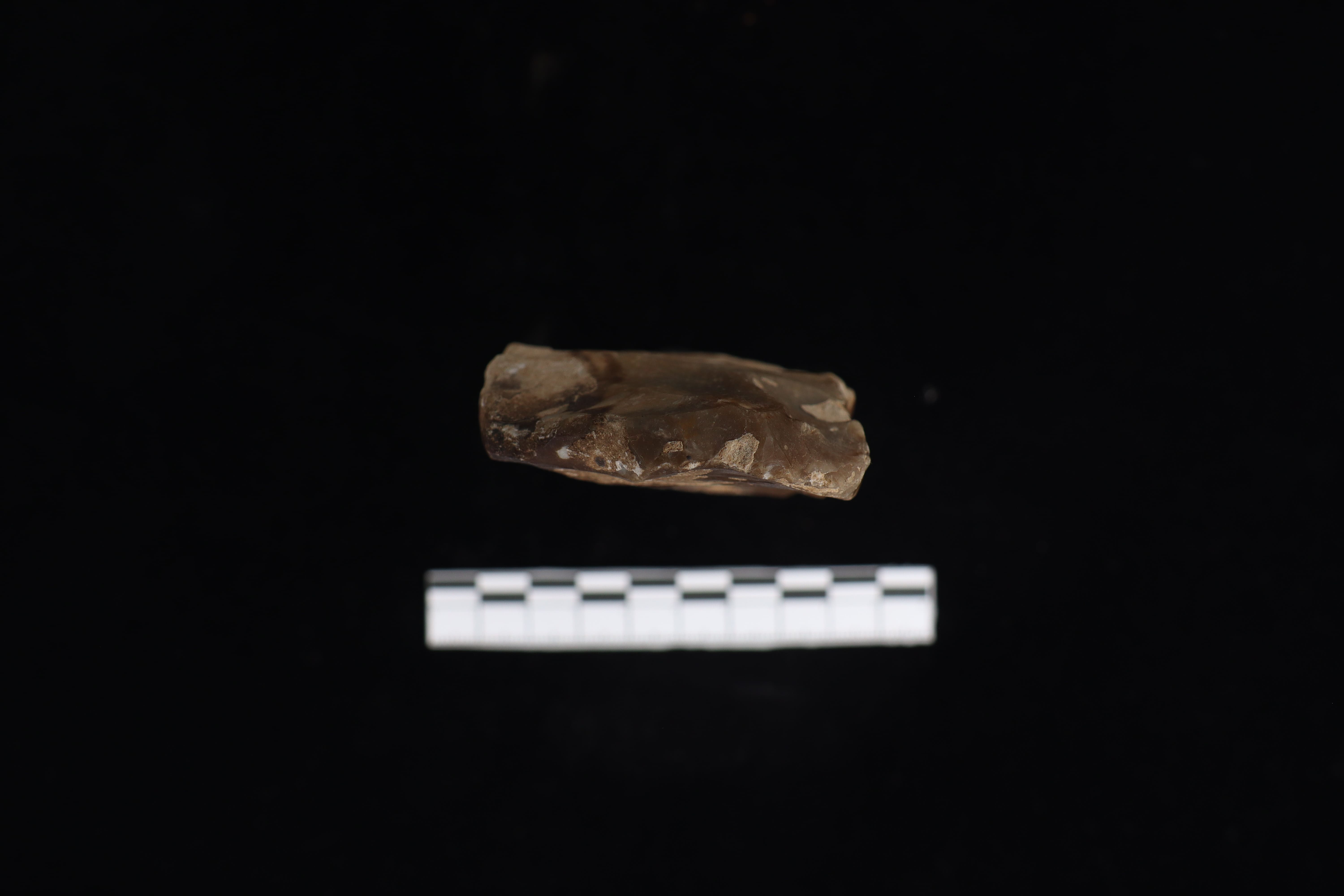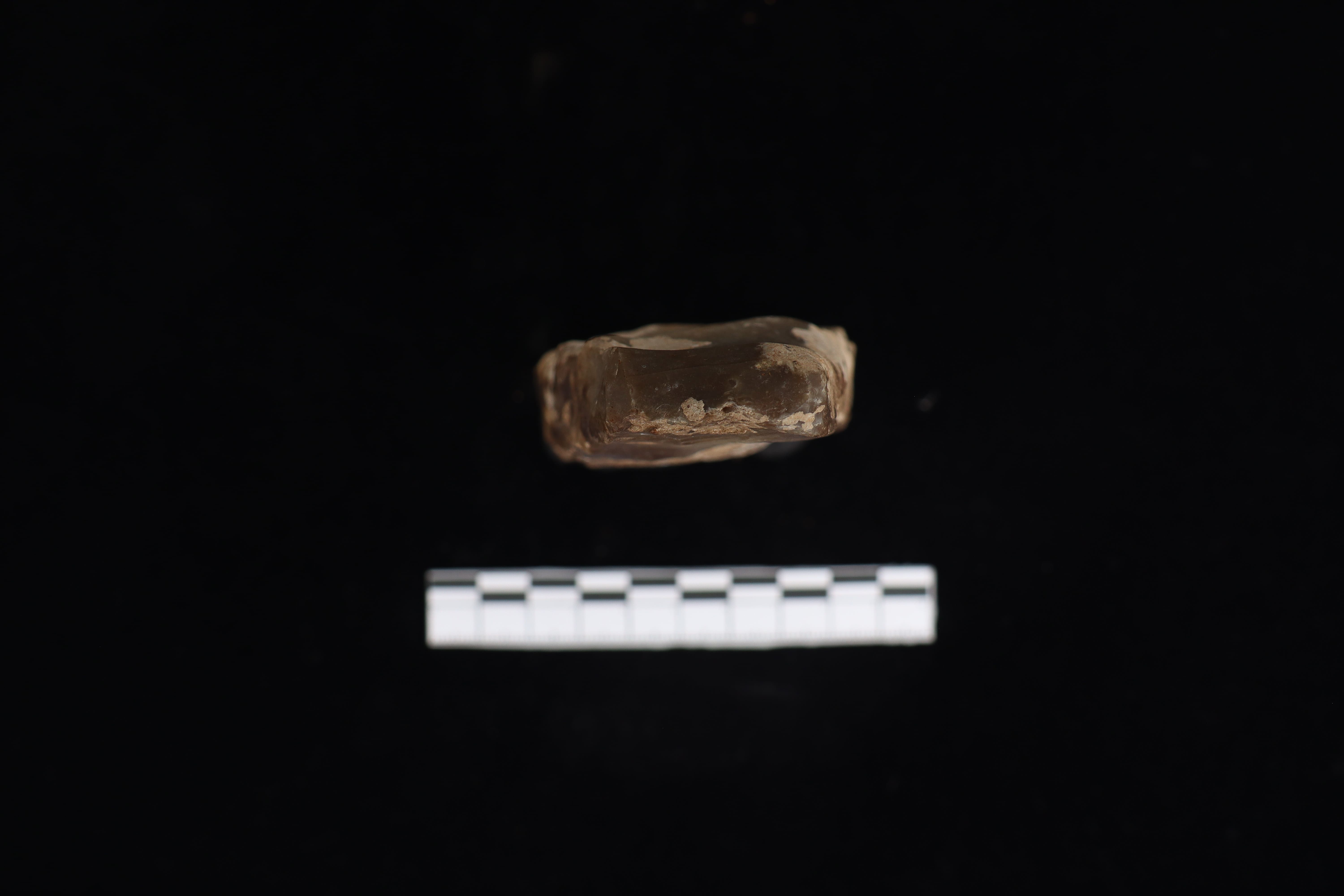 Koleksi ini merupakan Beliung Persegi tipe atap dengan kondisi koleksi Bagian depan terdapat bercak korteks abu muda, Bagian Belakang warnanya lebih gelap dan terdapat bercak korteks abu tua, teknik pemangkasan koleksi ini monofasial dan dalam pengerjaannya tidak dihaluskan. Lalu Bagian Proximal/Atas dan Distal/Bawah cenderung rata dan tidak runcing, secara keseluruhan korteks yang ada diidentifikasi sebanyak 40%.
