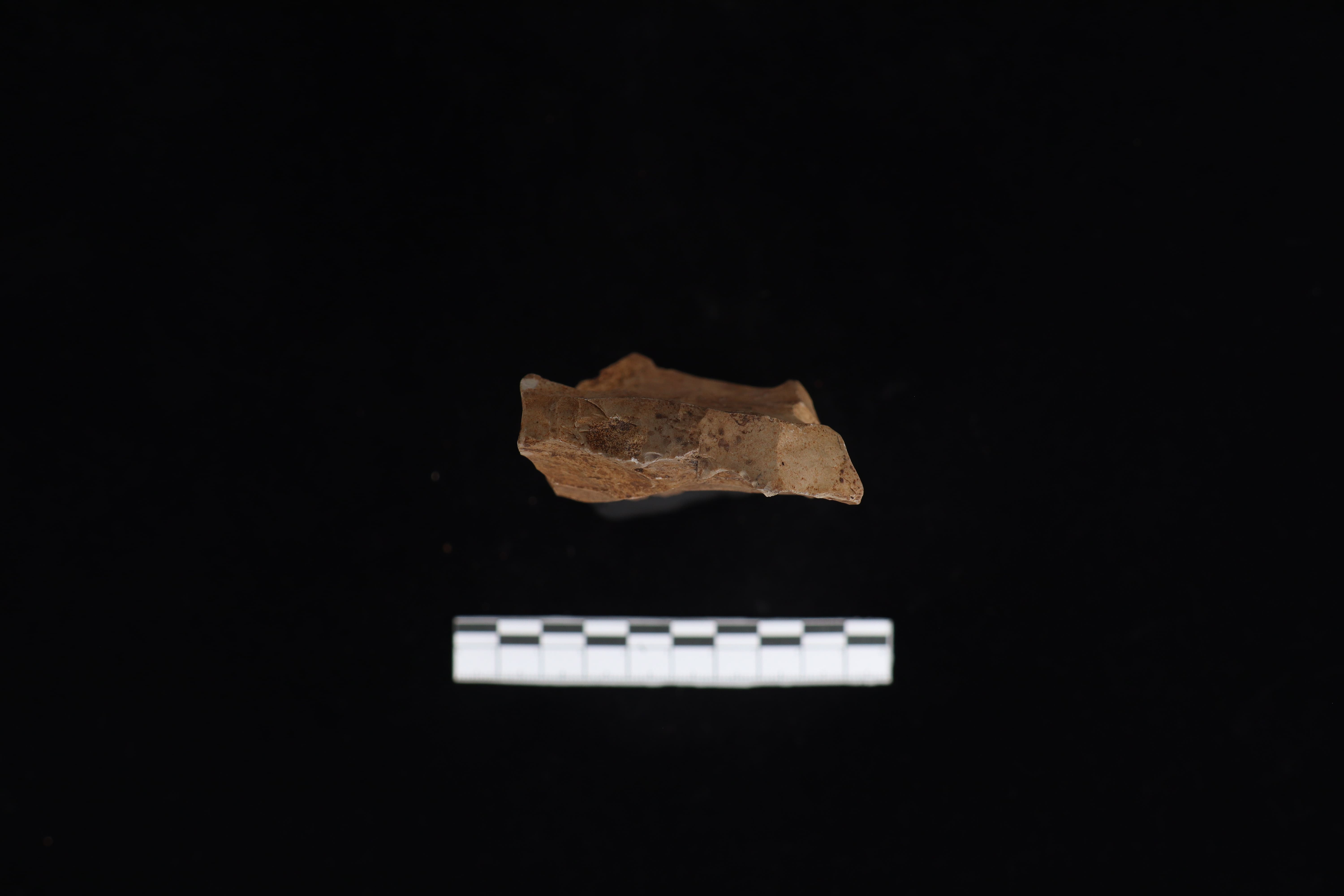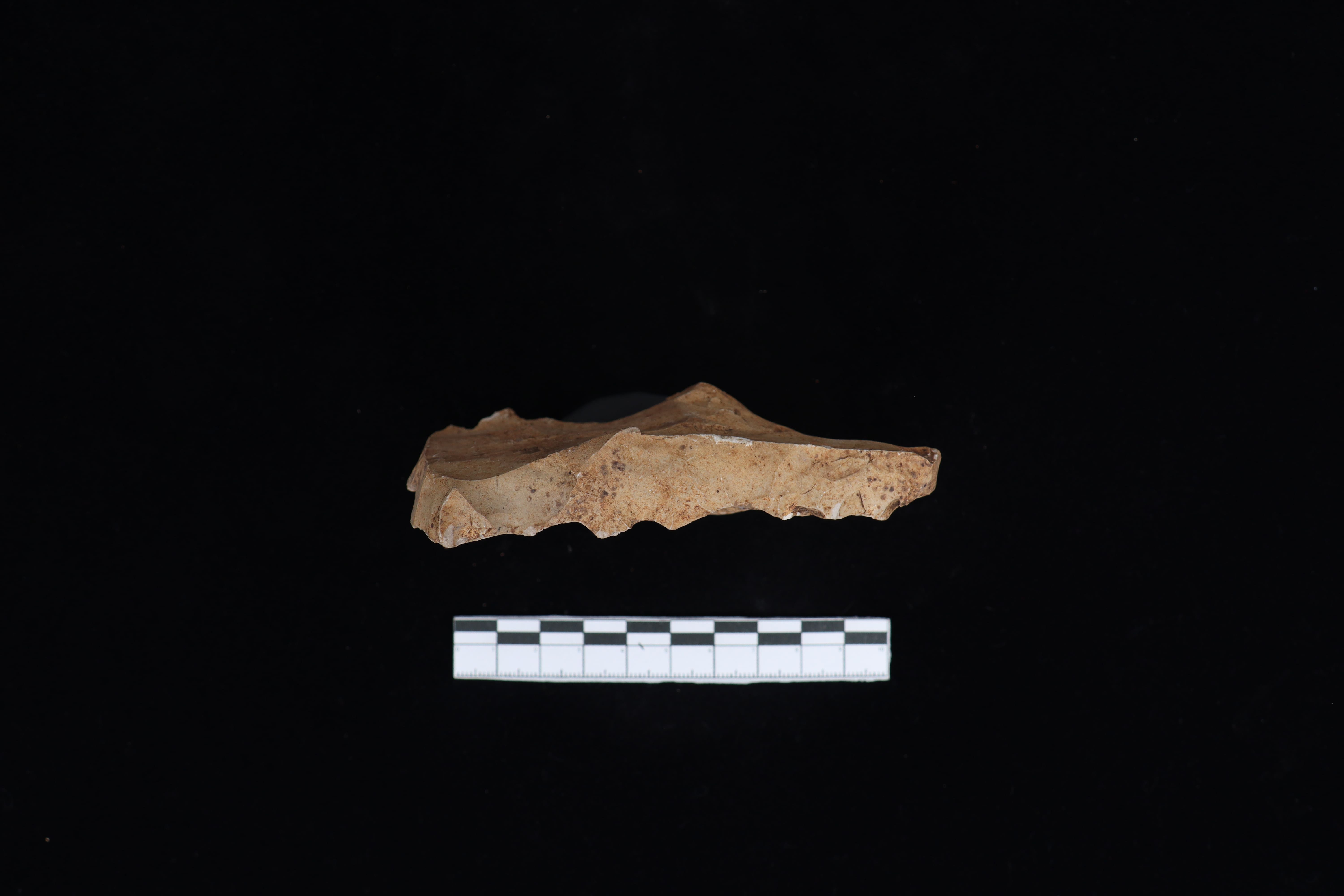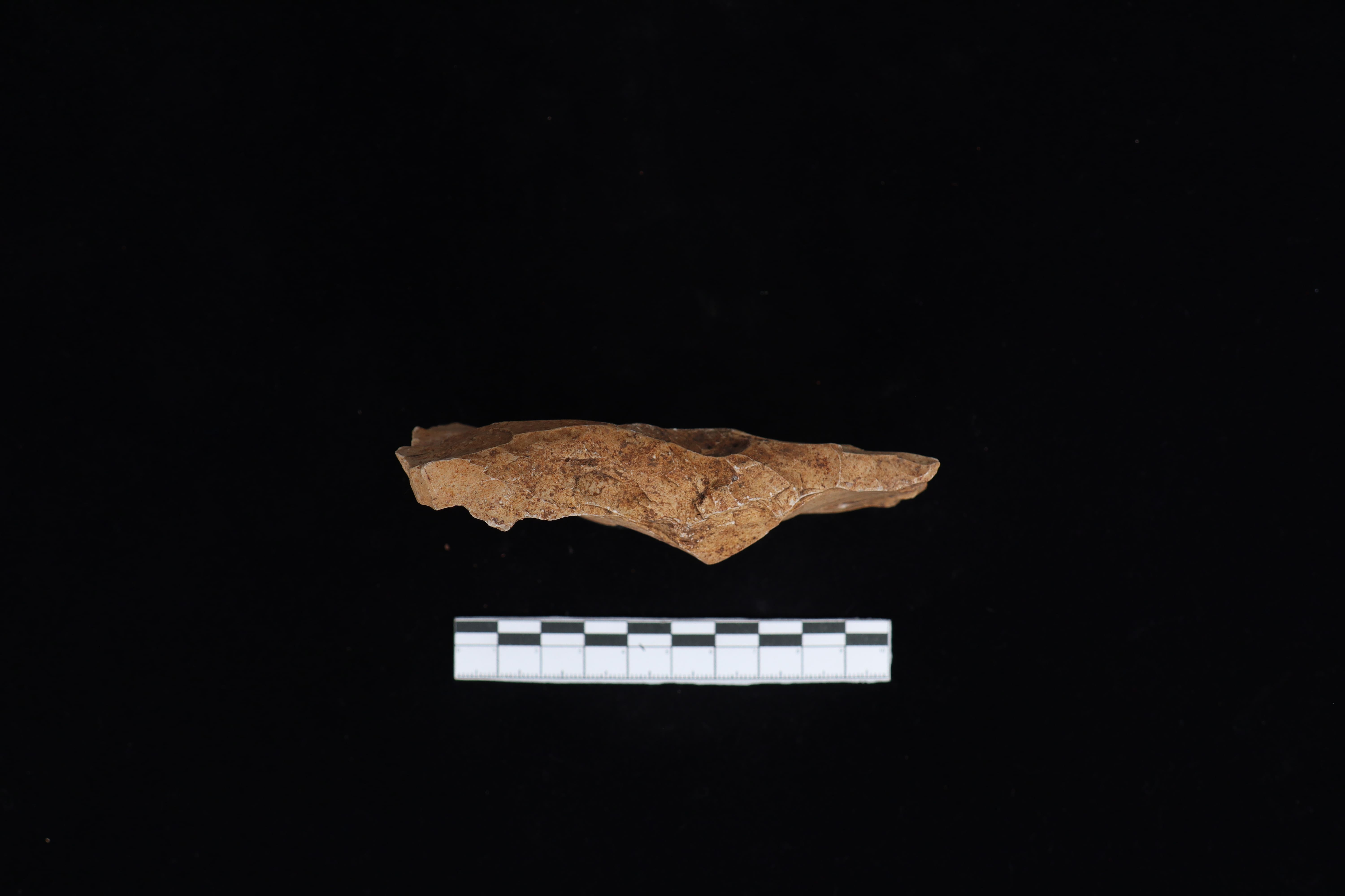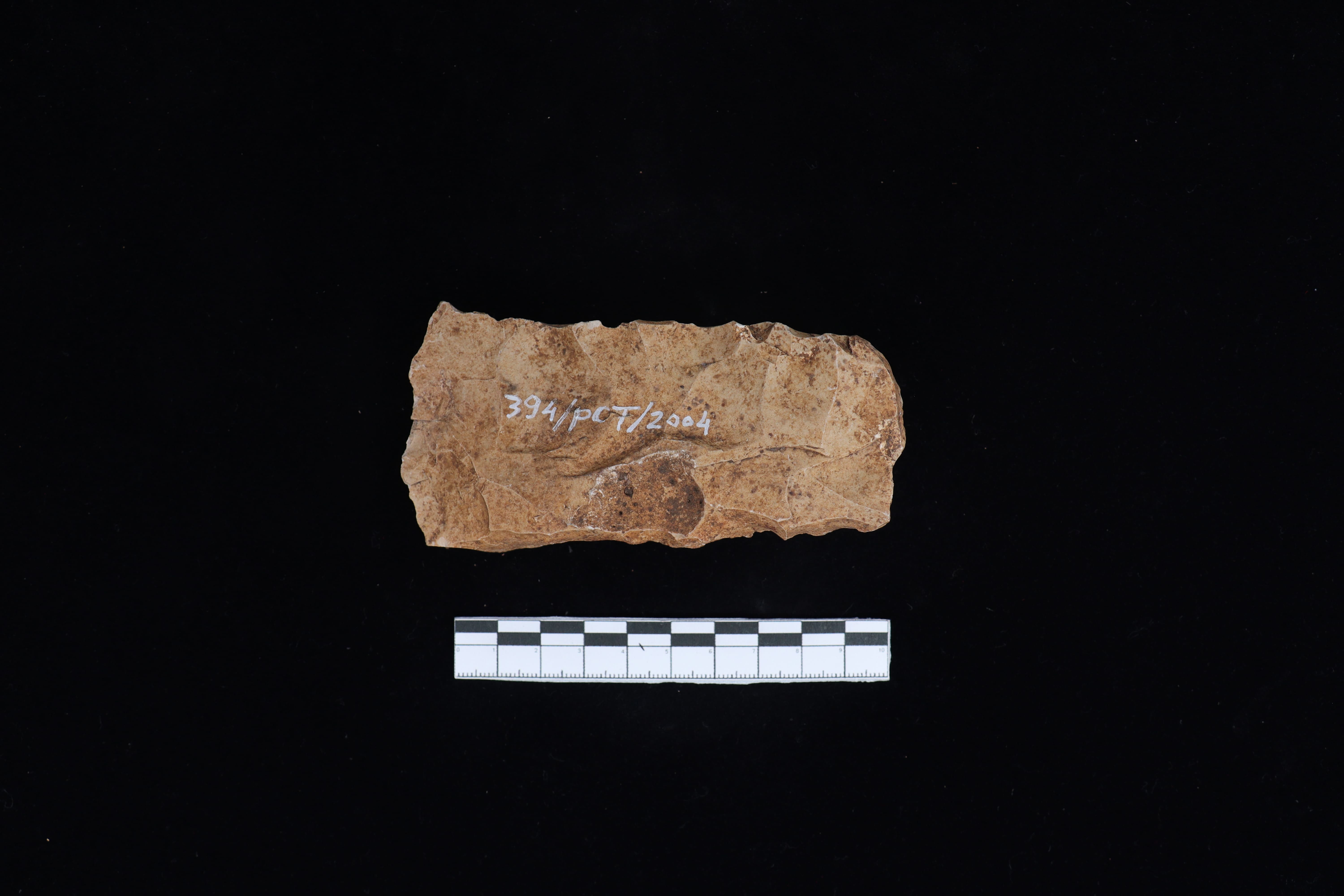 Koleksi ini merupakan Beliung Persegi dengan kondisi koleksi Bagian depan terdapat beberapa bercak warna coklat, Bagian Belakang terdapat nomor temuan warna putih serta lekukan bulat yang warnanya cederung lebih gelap, teknik pemangkasan koleksi ini monofasial dan dalam pengerjaannya tidak dihaluskan. Lalu Bagian Proximal/Atas cenderung memiliki tekstur yang rata dan Distal/Bawah tidak ditemukan retusan.