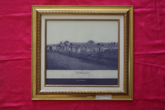Terbuat dari tanah liat, bentuk bulat dan bertutup, glasir warna biru. Pada pegangan tutup bentuk ekor naga, badan dihiasi motif dua ekoe naga horizontal mengejar bola api. Singkawang, abad 20 M.