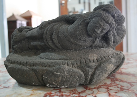 Bahan dari biji dengan pembuatan teknik alami. Bentuk bulat pipih, mendekati lonjong di bagian tengah atas, terdapat lekukan (tempat tumbuh tunas). Bagian tengah terlihat seperti serabut/serat yang bertaburan. Benda ini digunakan sebagai alat permainan rakyat tradisional. Warna cokelat tua.