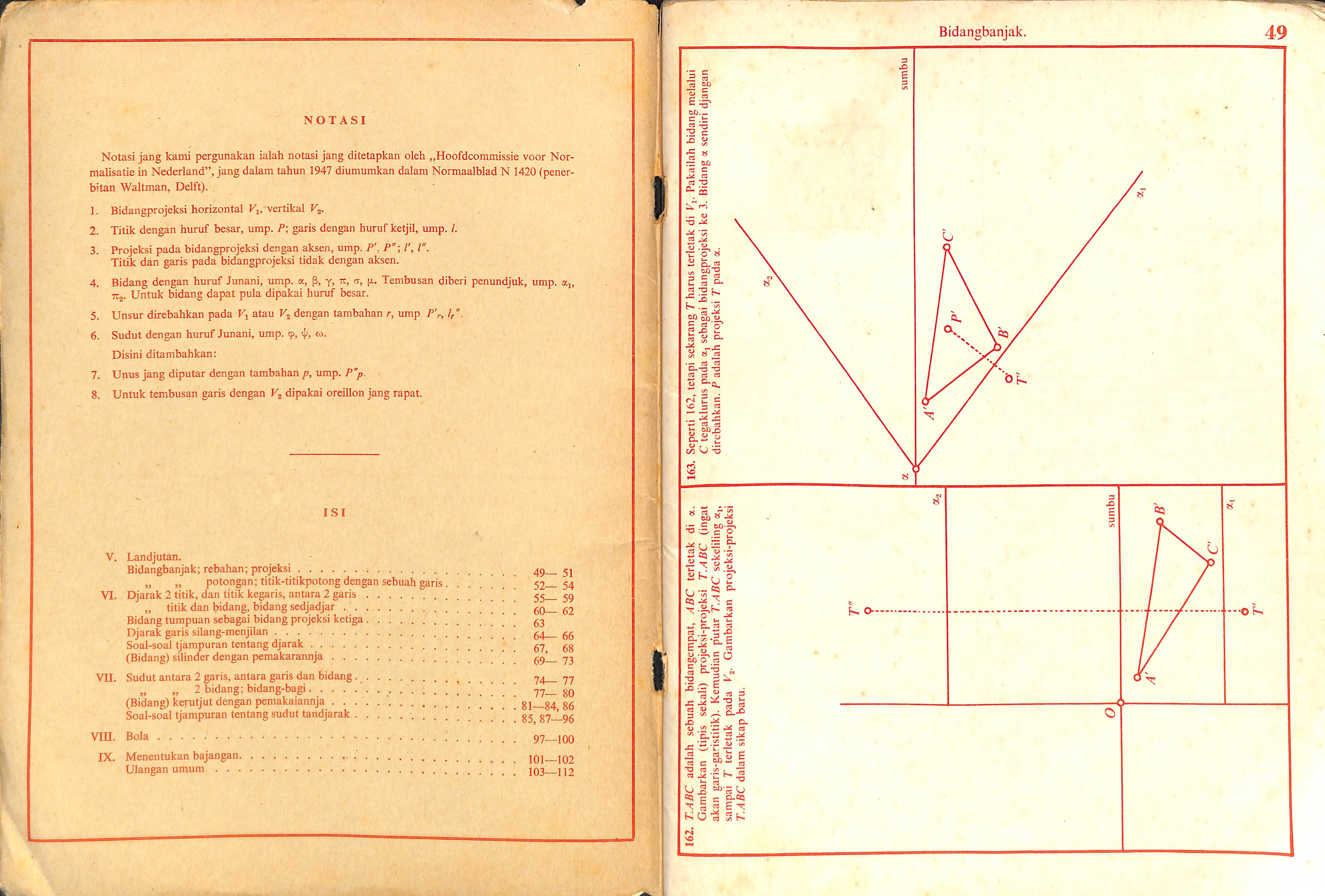 Buku Latihan Ilmu Ukur Melukis untuk S.M.A Djilid II. Penulisnya P. Wijdenes dan Dr. H. Streefkerk. Penerbit Noordhoff-Kolff N.V. - 1952 - Djakarta.