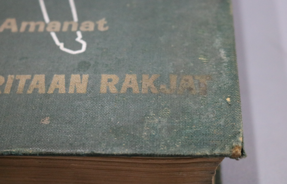 Koleksi berupa buku yang memiliki sampul berwarna Hijau botol. Pada halaman pertama terdapat tulisan “Pedoman Untuk Melaksanakan Amanat Penderita Rakyat” dan di halaman selanjutnya terdapat Judul yang Saman dan diikuti dengan stempel. Perpustakaan Sriwijaya dan terdapat tulisan Jilid 2 yang disusun "Maj.Moch.Said" sebagai kepala seleksi b.k.i. peperda/perdamilda Jawa-Timur. Penerbit yaitu Permata Surabaya. Pada Halaman selanjutnya terdapat tulisan ''Bagian Ketiga" dan dilanjutkan dengan Gambar Teks Proklamasi dan Gambar Bung Karno,dan Tulisan Proklamasi. Pada punggung buku terdapat tulisan Judul Buku, dan dibagian terdapat Anggka Romawi II, dan pada bagian bawah terdapat nama penerbit Buku. Pada sampul bagian depan terdapat judul buku dan disertai siluet sosok pria yang berpeci dengan mengangkat cangkul. Buku ini diantaranya memuat pidato-pidato termasuk presiden, berita pikiran ilmiah, dan keterangan pemerintah. Buku ini terdiri dari 2755 halaman dan buku ini diterbitkan pada tahun 1961. Dan pada beberapa lembar tertentu terdapat kertas bertuliskan "jangan dipindah". Kondisi dari buku ini baik dan utuh, terdapat beberapa kerusakan seperti warna dari sampul buku memudar dan mengelupas, terdapat juga bercak putih seperti bekas tempelan, noda hitam pada tepian kertas, dan halaman yang sobek setelah halaman 1893 dan 1894, dan terdapat juga coretan dihalaman 1466 dan 1467.