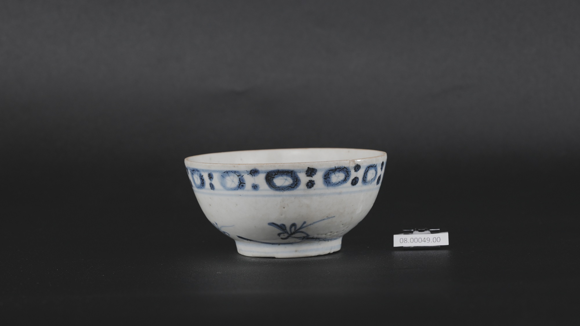 Bentuk bulat cekung. Bagian luar dan dalam sama sekali tidak terdapat hiasan/ornamen. Polos putih susu. Bagian bawah terdapat kaki untuk berdiri.
