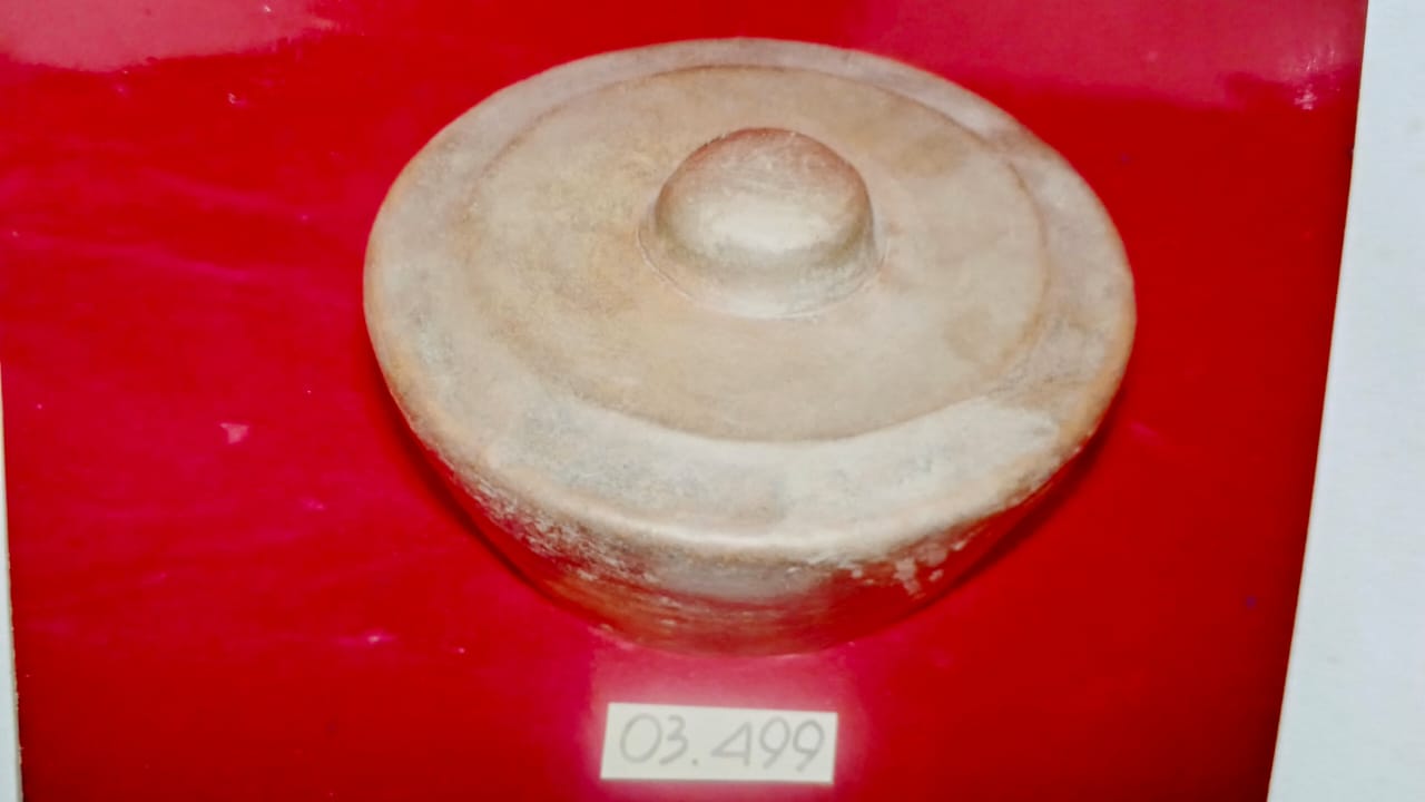 Dasar cekung, kaki rendah, badan slinder melebar keatas, bibir tipis, mulut lebar, pegangan terdapat 2 lubang.