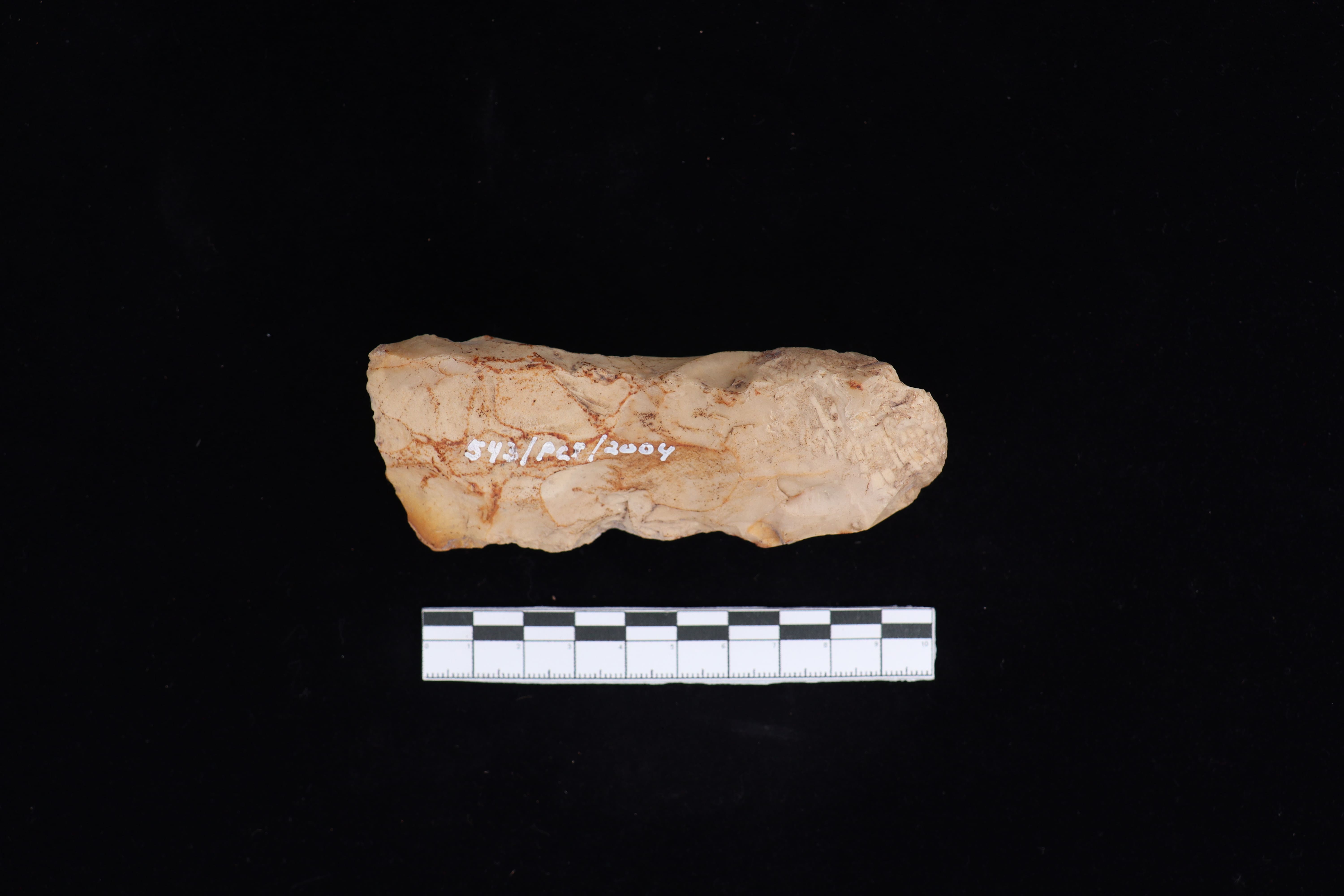 Cawan dengan bentuk bulat terbuka dan relatif datar seperti piring. Warna merah kecokelatan dan pada beberapa bagian hitam akibat pembakaran. Cawan ini mengalami keretakan. Berfungsi sebagai wadah dan bekal kubur serta berasal dari periode neolitik/perundagian