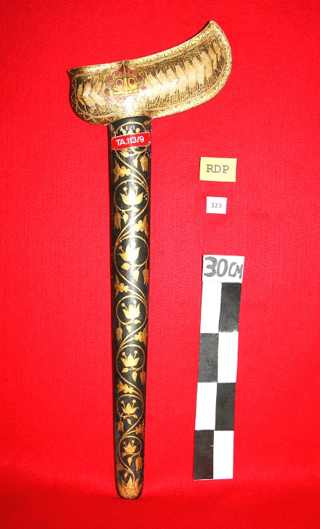 sehelai celana pria, terbuat dari katun warna hitam. model piyama, bertali pinggang. biasanya dipakai untuk sehari-hari oleh pria hulu singkil aceh selatan.