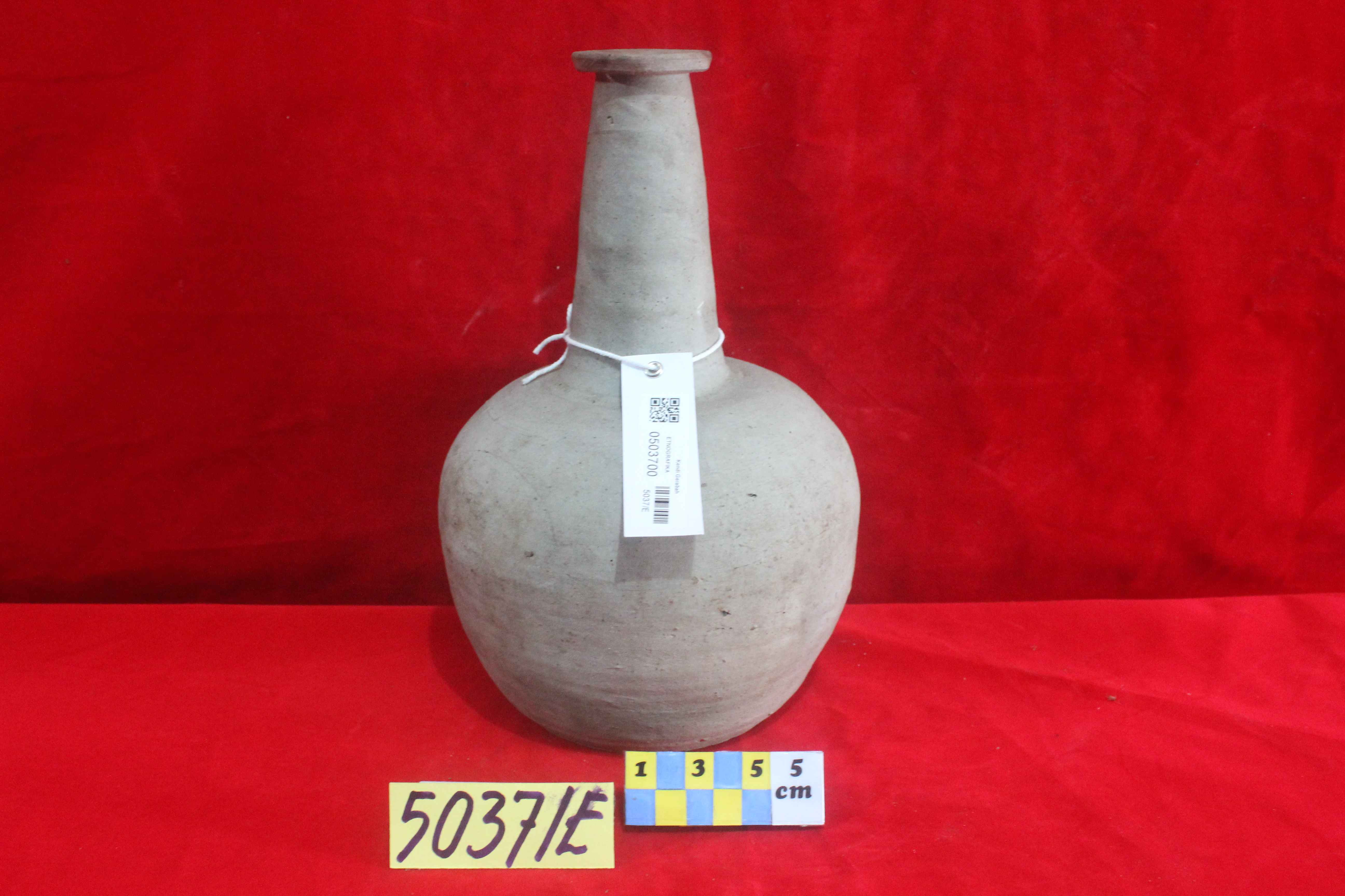 Terbuat dari bahan tanah liat berupa fragmen tembikar berbentuk bulat. Berwarna hitam dan bertekstur halus pd permukaan temuan. Berfungsi sebagai wadah. Keadaan benda tidak utuh.