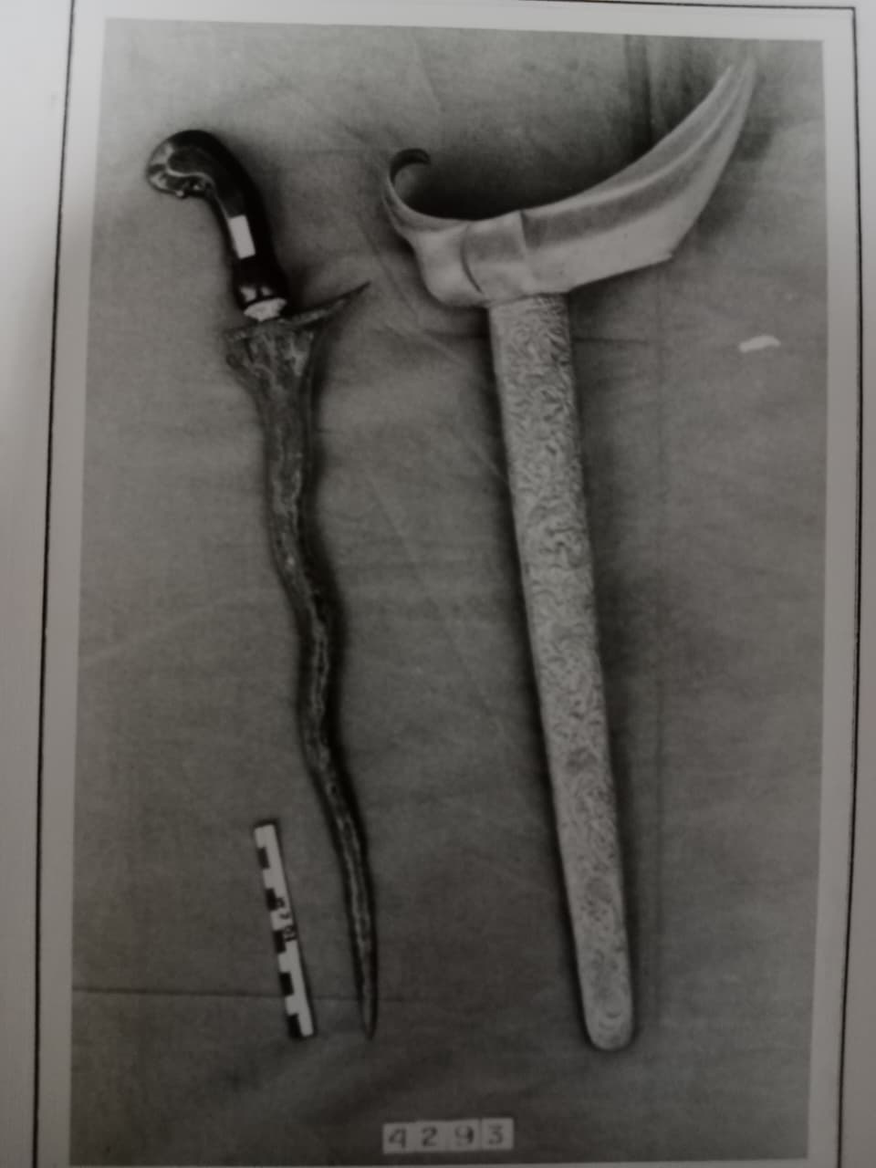 Benda ini terbuat dari bahan perunggu, berpenampang bulat. Kedua ujung lebih besar ukurannya dari pada bagian tengah, dan ujung tersebut melingkar agak ke dalam, serta merenggang. Benda ini banyak lapisan patina. Fungsi benda diperkirakan sebagai cincin, yaitu sebagai simbol status sosial maupun sebagai perlengkapan upacara (sebagai aktivitas sosial atau keagamaan).