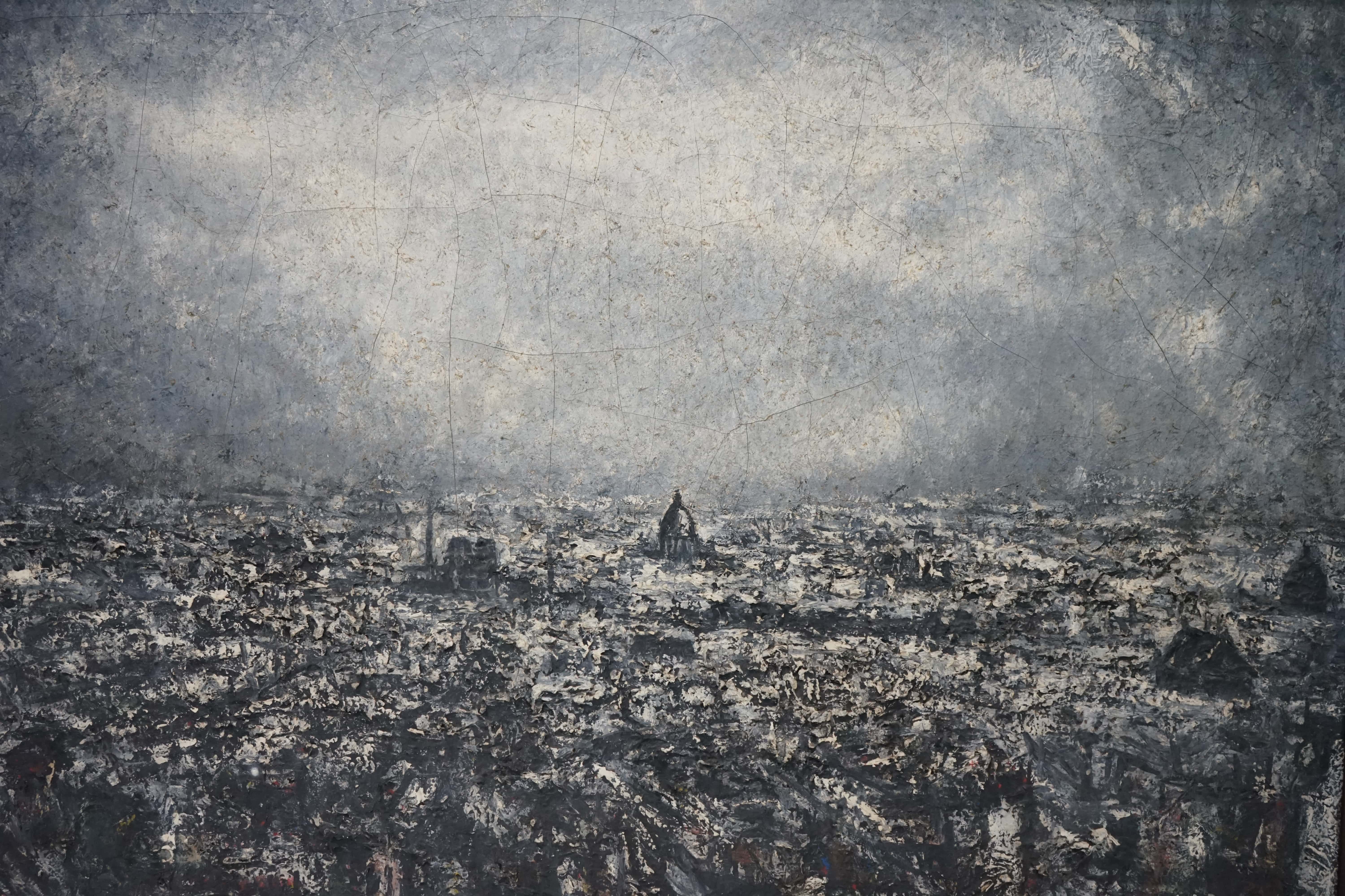 Lukisan ini menggambarkan pemandangan kota dari atas, memberikan kesan jarak yang jauh. Di tengah, terdapat dua bangunan yang lebih tinggi dibandingkan bangunan lainnya. Bagian langit dilukis luas, memenuhi setengah bagian atas kanvas. Pencahayaan pada lukisan ini difokuskan pada langit di bagian tengah, sehingga sisi-sisi samping terkesan gelap. Di bagian bawah kanan terdapat tanda seniman yang bertuliskan "Takis Coto".
